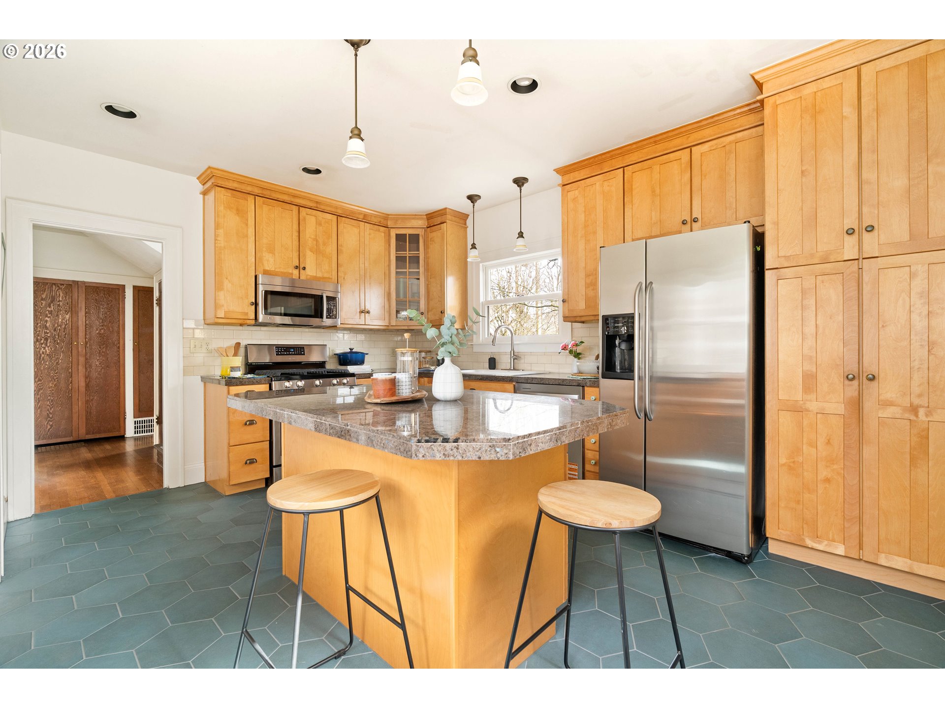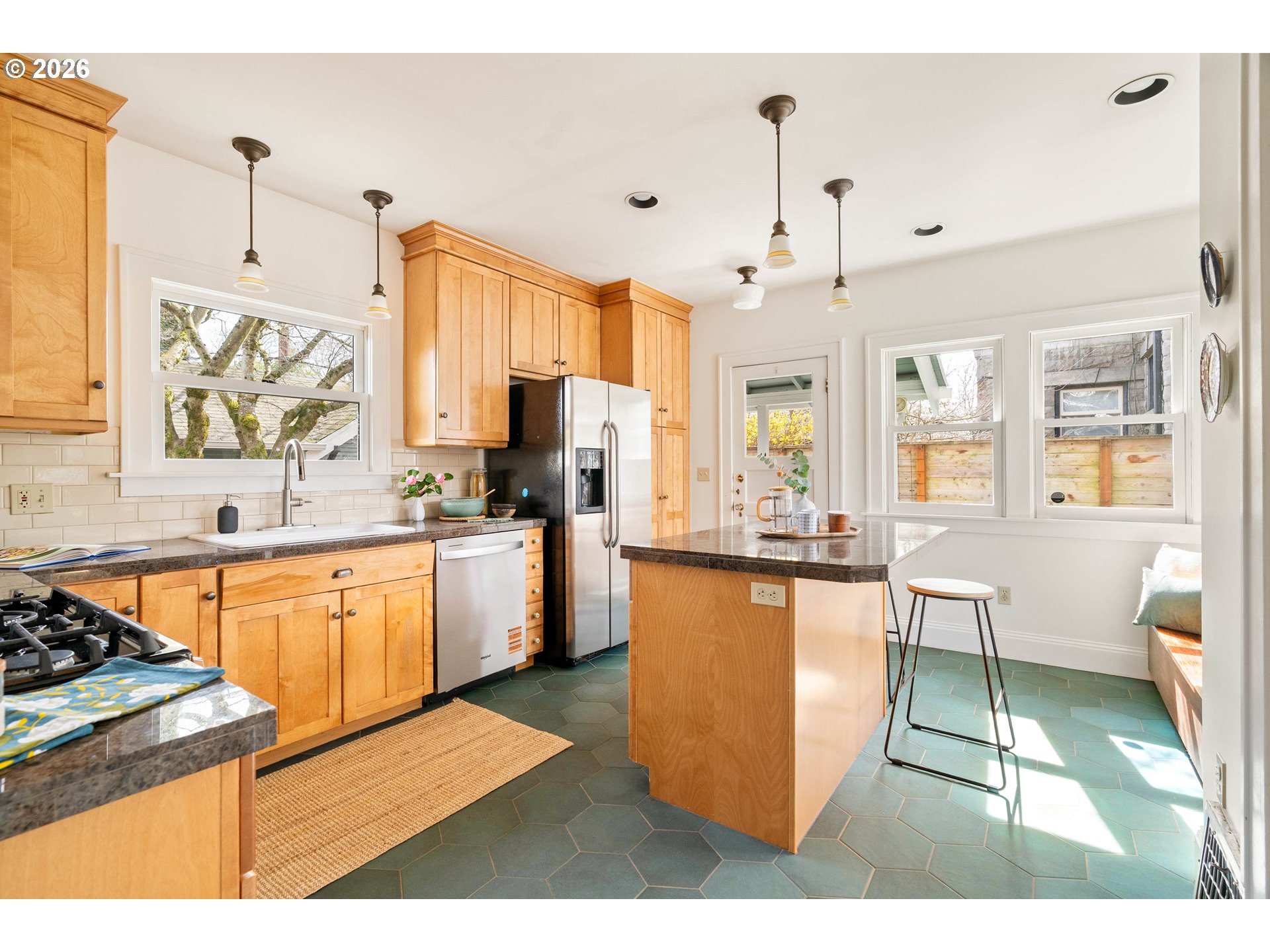 (503) 893-8874Situated around the corner from Peninsula Park and a short jaunt from the famed Alberta Arts District, this quintessential Portland bungalow exudes swoonworthy vintage character and a noteworthy list of upgrades. Highlights include a spacious kitchen, walk-in closets, updated systems, detached garage with alleyway access, and a stellar location mere blocks from restaurants, shops, and conveniences.The charm begins as you approach the covered porch along the cobblestone walkway. Leaded glass windows preserve the home’s historic character on the façade, paired with storm windows for improved efficiency, while the rest are updated throughout. High ceilings, abundant natural light, and an open living/dining area centered around a cozy gas-insert fireplace provide a welcoming first impression. A bedroom and full bath on the main level add flexibility and make this home a great candidate for aging in place. The kitchen is a chef’s dream complete with center island, pantry, and large windows looking out to a covered patio where friends and loved ones can gather. Out back, a scandinavian style wooden hot tub and professionally-designed low-maintenance landscaping make a peaceful outdoor retreat.Upstairs, the primary bedroom features an enormous walk-in closet with a custom organization system. Your storage needs are covered between the generous closets, built-ins, detached garage, and basement. The partially finished lower level offers ADU potential (buyer to do due diligence) with a separate entrance, 4th bedroom (non-conforming) and existing plumbing conveniently located above the adjacent storage—a great opportunity for a future bathroom or kitchenette. A few of many updates include a high efficiency furnace, central AC, minisplits (upper level), water heater, exterior paint, radon mitigation, and new gutters along with updated plumbing, electric, and windows. After many years of love and care, this gem of a home is dialed in and ready for its next chapter! [Home Energy Score = 5. HES Report at https://rpt.greenbuildingregistry.com/hes/OR10186619]