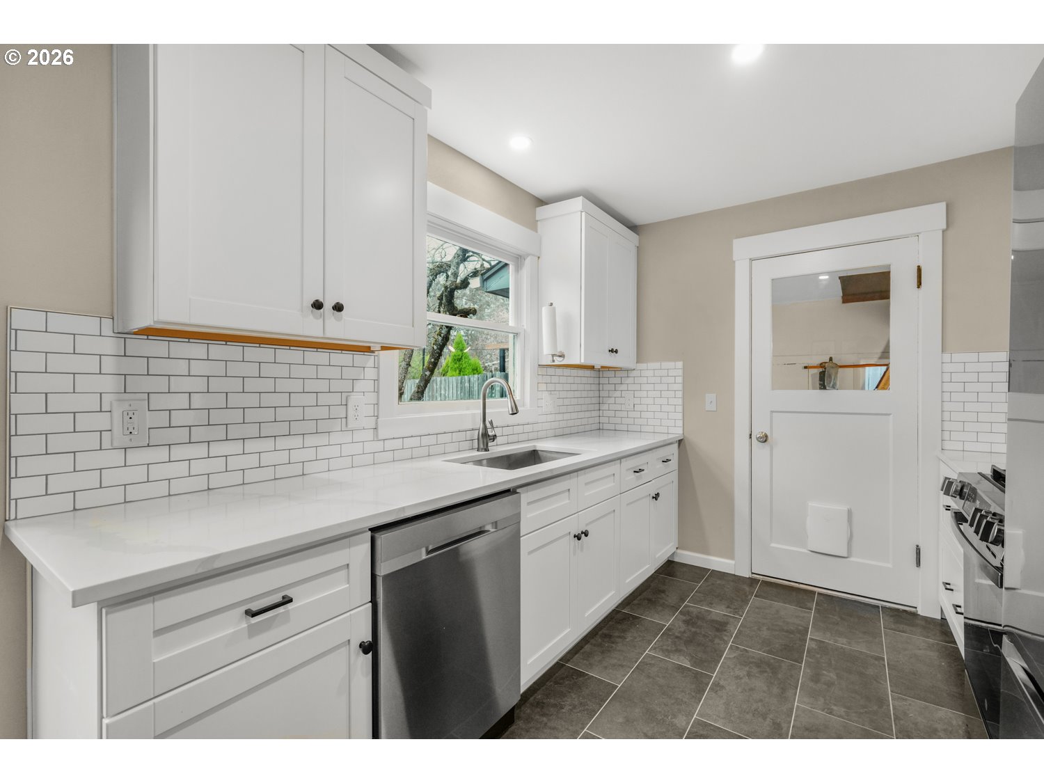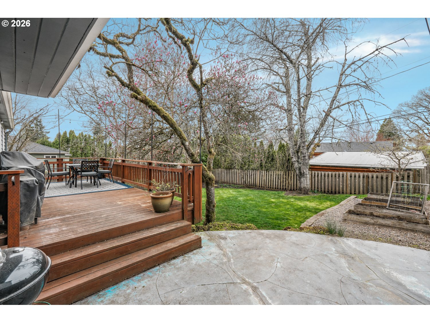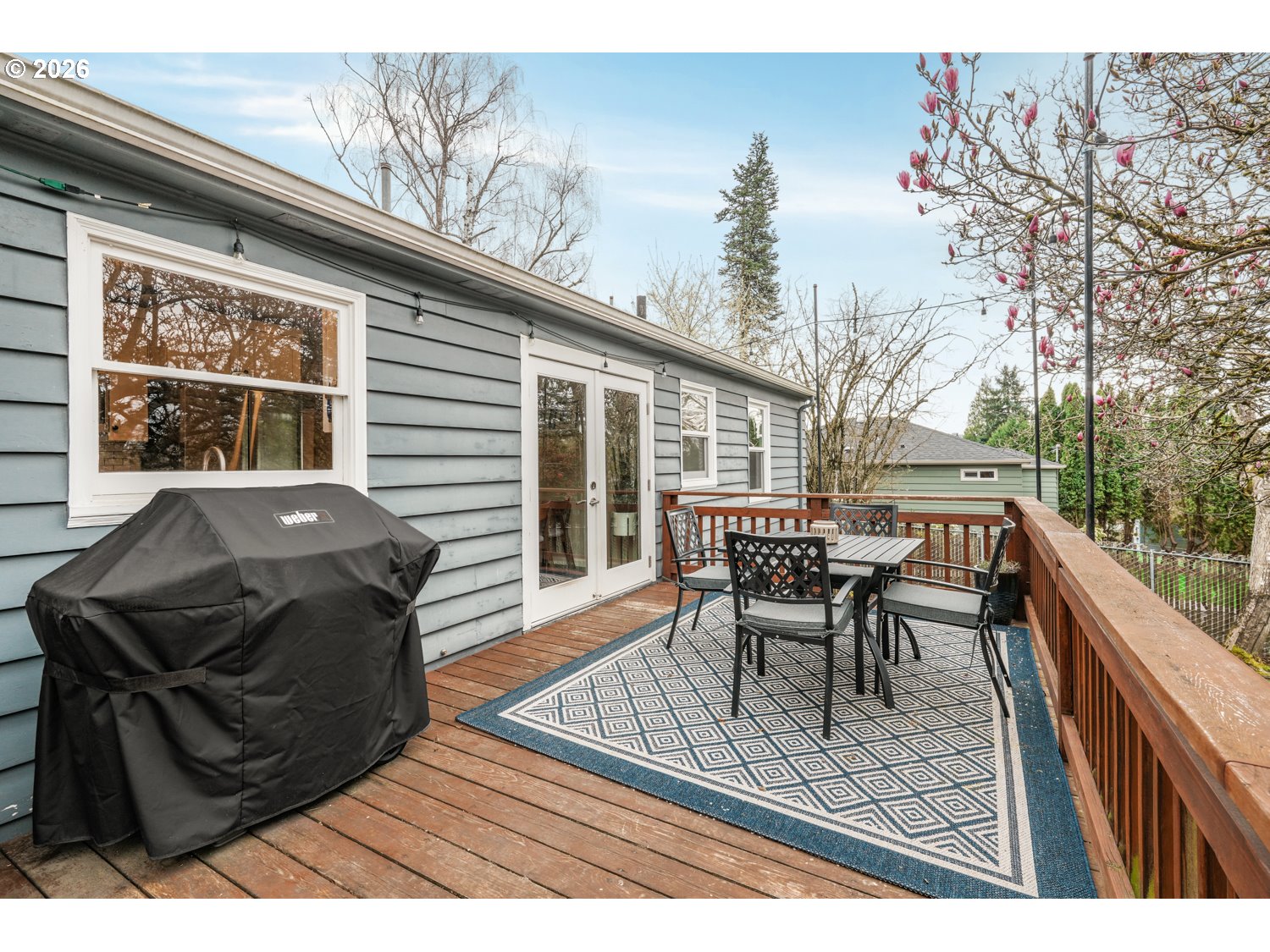 Beautifully updated daylight ranch on an oversized 0.16-acre lot in the desirable Hayhurst neighborhood. This 3-bedroom, 2-bath home welcomes you with a large, light-filled living room featuring oak hardwood floors and custom built-in shelving flanking the fireplace. The dining area opens to a deck through French doors, perfect for seamless indoor-outdoor living and entertaining. The kitchen has been completely gutted and thoughtfully remodeled by Neil Kelly, showcasing quartz countertops, stainless steel appliances, and quality craftsmanship throughout. Two generously sized bedrooms with oak hardwoods and an updated full bath complete the main level. Downstairs offers fantastic flexibility with a spacious family room, exterior entrance to the backyard patio, a third bedroom, full bath, and laundry, ideal for potential separate living quarters or guest space. New carpeting adds comfort to the lower level. Enjoy year-round outdoor living in the expansive backyard featuring two patios, a deck, garden beds, and a large grassy area. Ideally located near Gabriel Park, Multnomah Village, local shops and dining, schools, and golf courses, with a great bike score for an active lifestyle.
