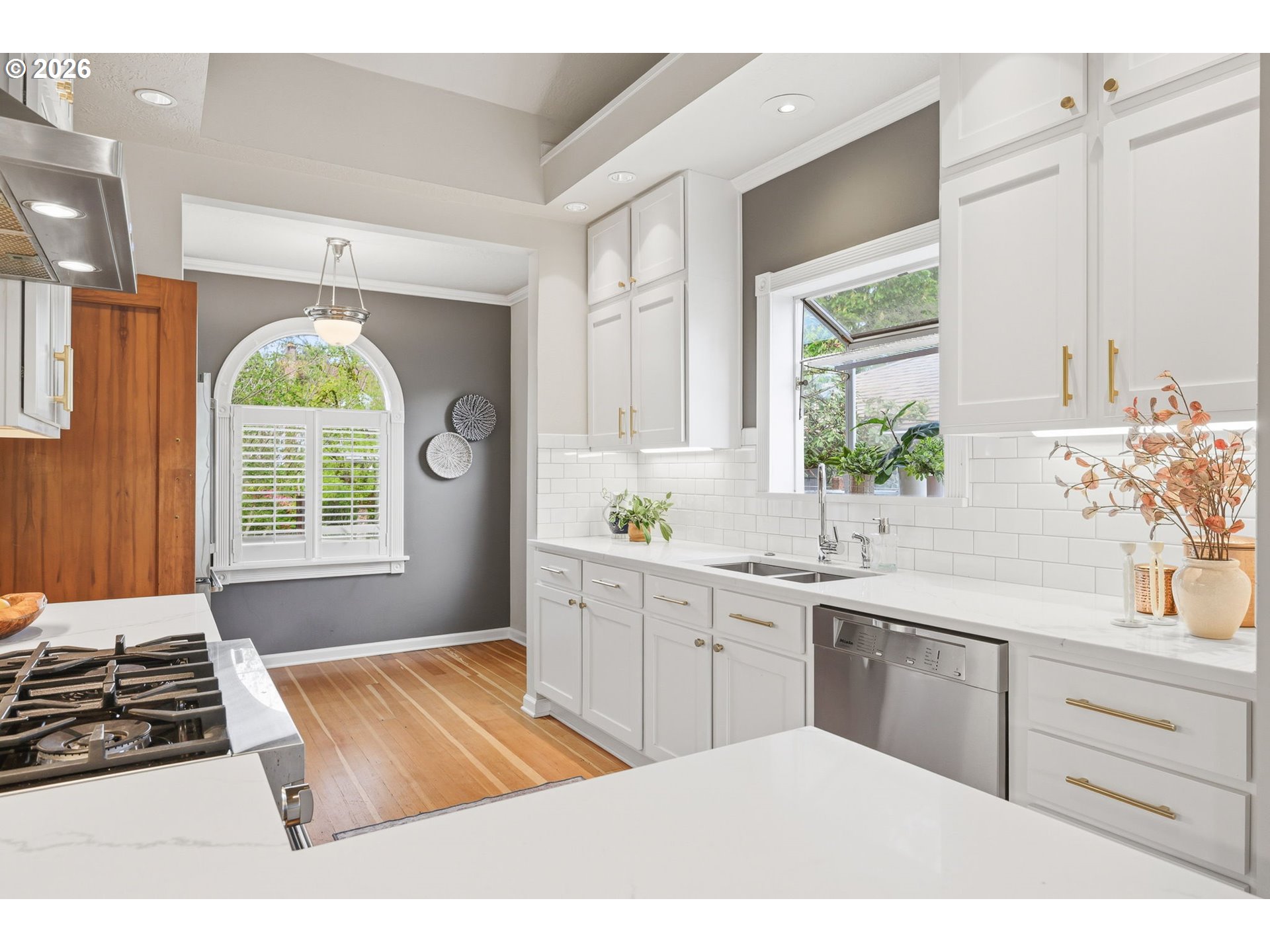 (503) 893-8874New listing in the popular Concordia neighborhood in NE Portland. A charming English style home blends updates in the right areas and leaves the best original features untouched. Curb appeal abounds with arched windows and oversized front porch. Step into the living room with hardwood floors, custom lighting, and gas fireplace makes a statement with oak & granite surround. The living room adjoins the lovely dining room with a wall of windows and beautifully placed custom lighting. Vaulted, bright, remodeled kitchen is a stand out! Opens to the great room, a welcoming open layout for relaxing at home, and time with family & friends. The light & bright updates include white cabinets, quartz counters with subway backspash, high end stainless appliances. The attached family room has open vaulted ceiling and french doors to the deck and private back yard. Completing the main floor is the primary bedroom and remodeled bath. Upstairs is perfect for office space, crafts, or fun play area. The lower level really enlarges living with a bonus room will a wall of built ins, optional spaces for 3rd bedroom or workout room. Two basement rooms are joined by Jack & Jill bath. A very flexible basement with so many ways to live in these rooms. The backyard is private, with all the spaces you need - yard, patio, play or garden area! A one car garage with alley access, too! So many upgrades and mechanical improvements. You'll love this home and incredible location. [Home Energy Score = 1. HES Report at https://rpt.greenbuildingregistry.com/hes/OR10246159]