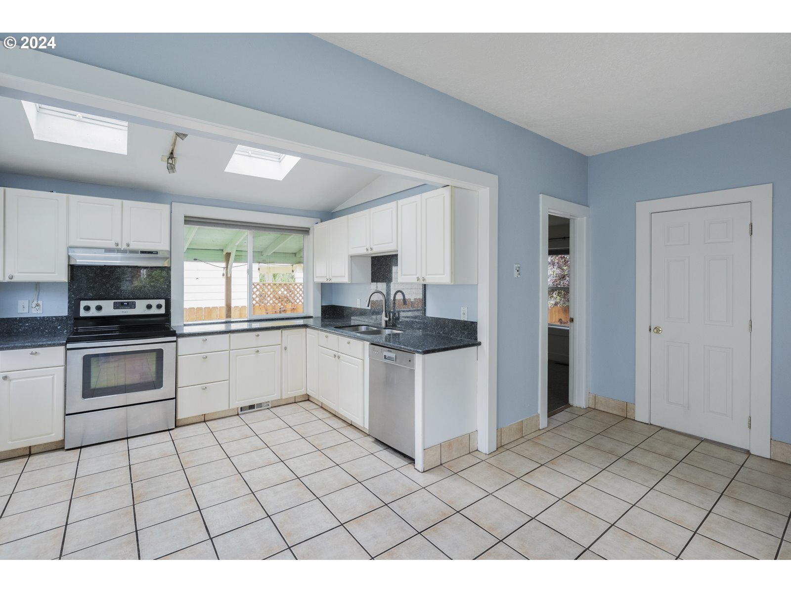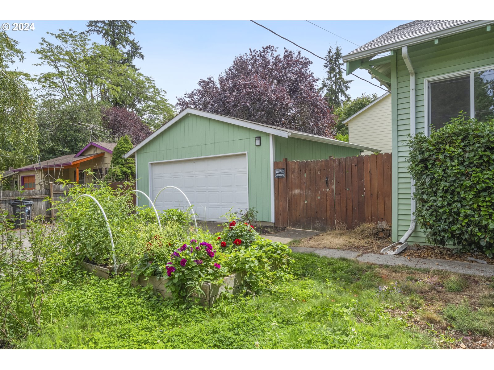 Cozy and cute on a corner lot, this 2 bed 1 bath bungalow boasts a full basement with outside egress/entry only (future ADU?) and a 25X22' oversized double garage (possibly fit 4 cars tandem? many bikes, boat?), and wide driveway. It's a toy-lover or hobbyist's dream! Updated kitchen with SS appliances, large dining nook, slab granite counter tops, sky lights, doggie door. Bathroom with OG clawfoot tub. Newly carpeted throughout. Spacious living room with big picture window and big bay window, lots of light! Low-maintenance exterior! Established landscaping with multiple garden boxes, cherry and peach trees, private back yard with patio, covered porch, jasmine shrubs. Updates: The roof is partial metal and partial composite shingles (new composite shingles installed 2023). New cedar fence (2023). Copper hot water pipes and newer water hea
