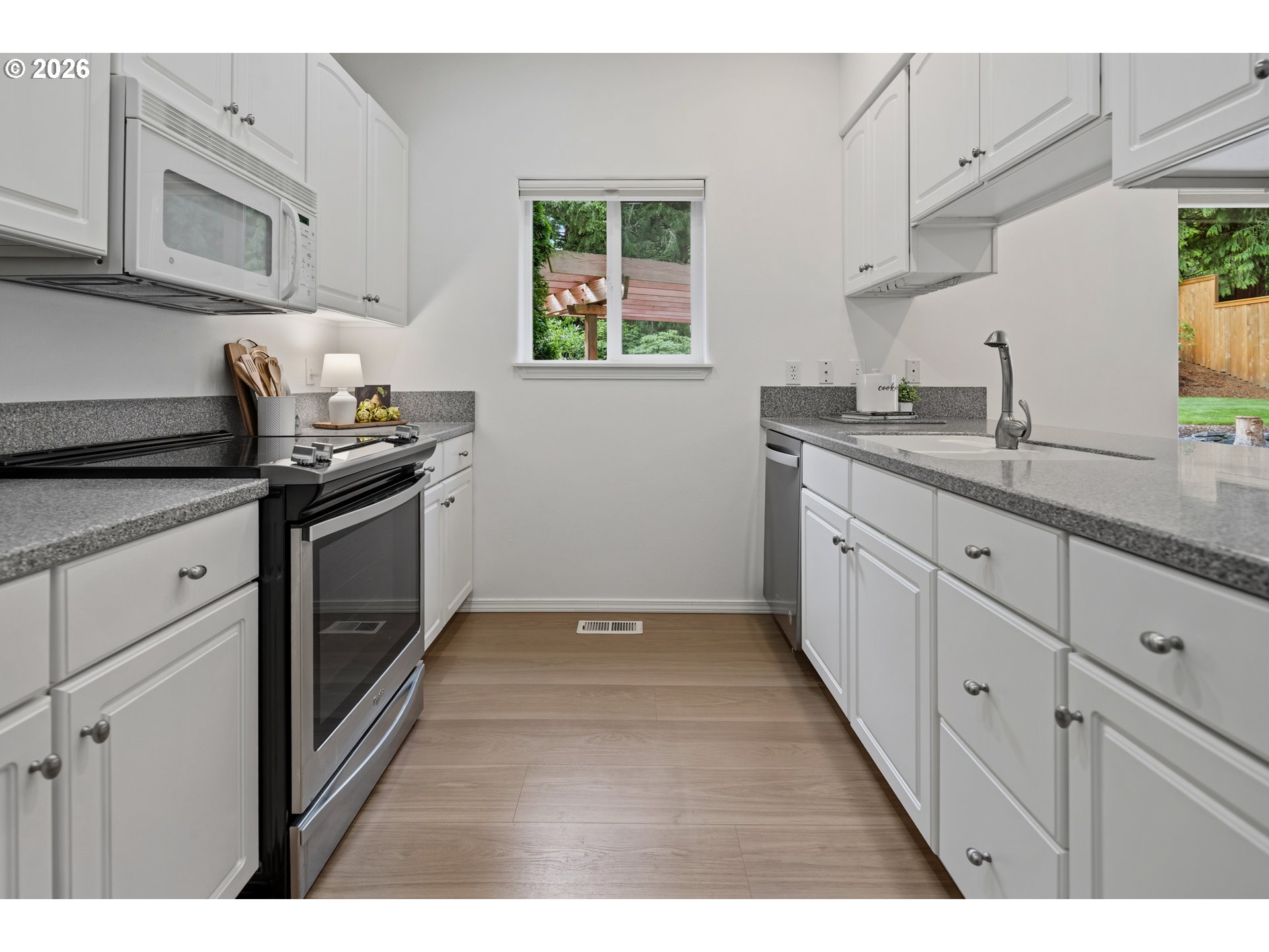Hurry to this one! Hard to find 3 car garage in Hayhurst on quarter of an acre lot. Lots of natural light along with freshly painted interior walls. Newer LVP flooring throughout main level. Good flow on the main level with two separate entertaining areas. All 4 bedrooms upstairs. Primary Suite has walk-in closet and features alcove to either lounge, workout or work. Stepping outside you get a sense that there's no one else around with mature landscaping and serene privacy perfect for entertaining and enjoying the local wildlife. Amazing, private backyard with pergola, fencing, trees and space to enjoy! Great location! Close to Gabriel Park, Multnomah Village and Hillsdale. [Home Energy Score = 5. HES Report at https://rpt.greenbuildingregistry.com/hes/OR10246684]