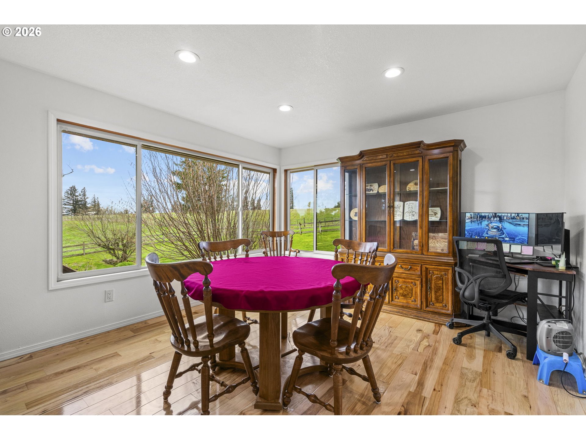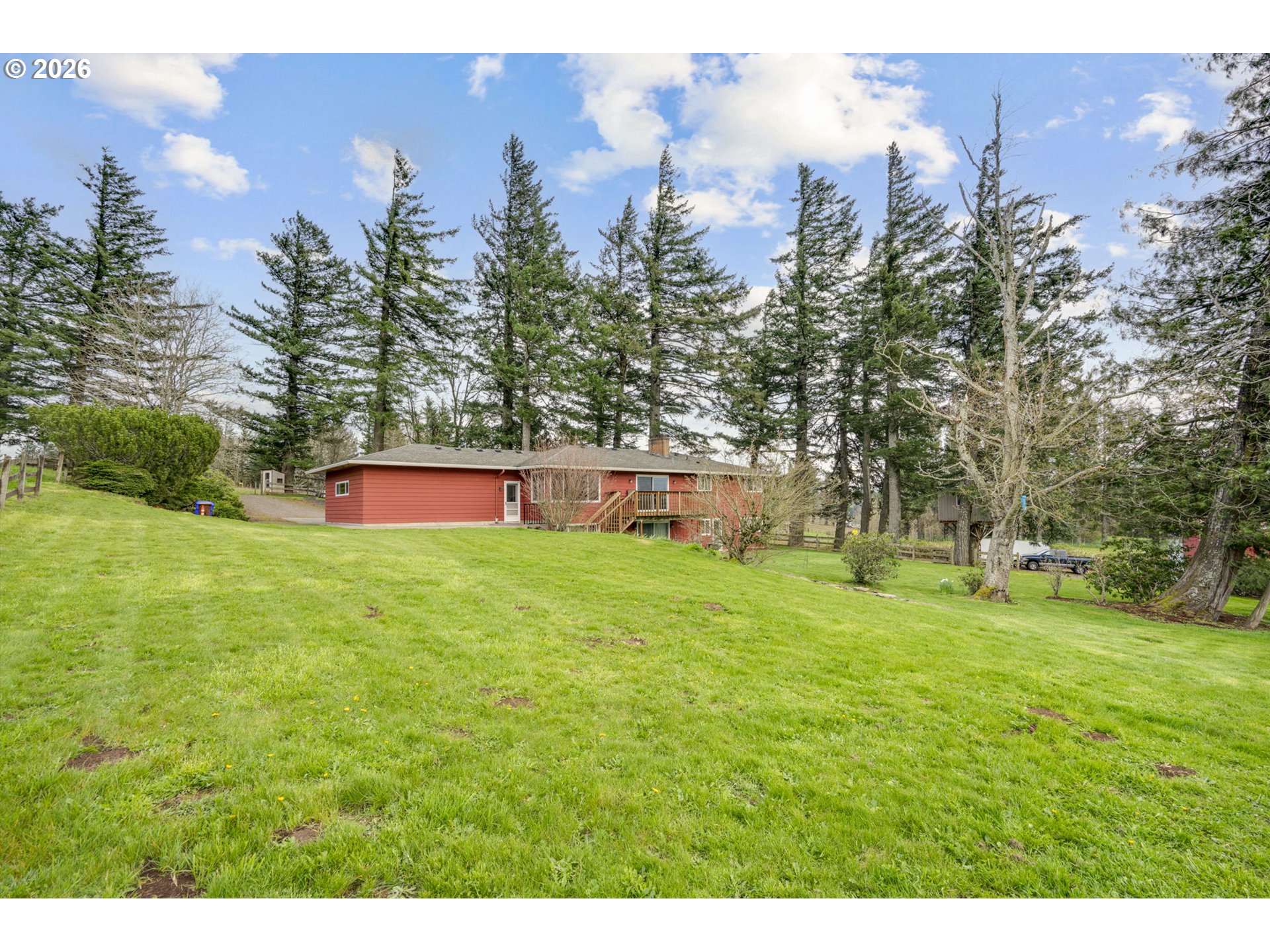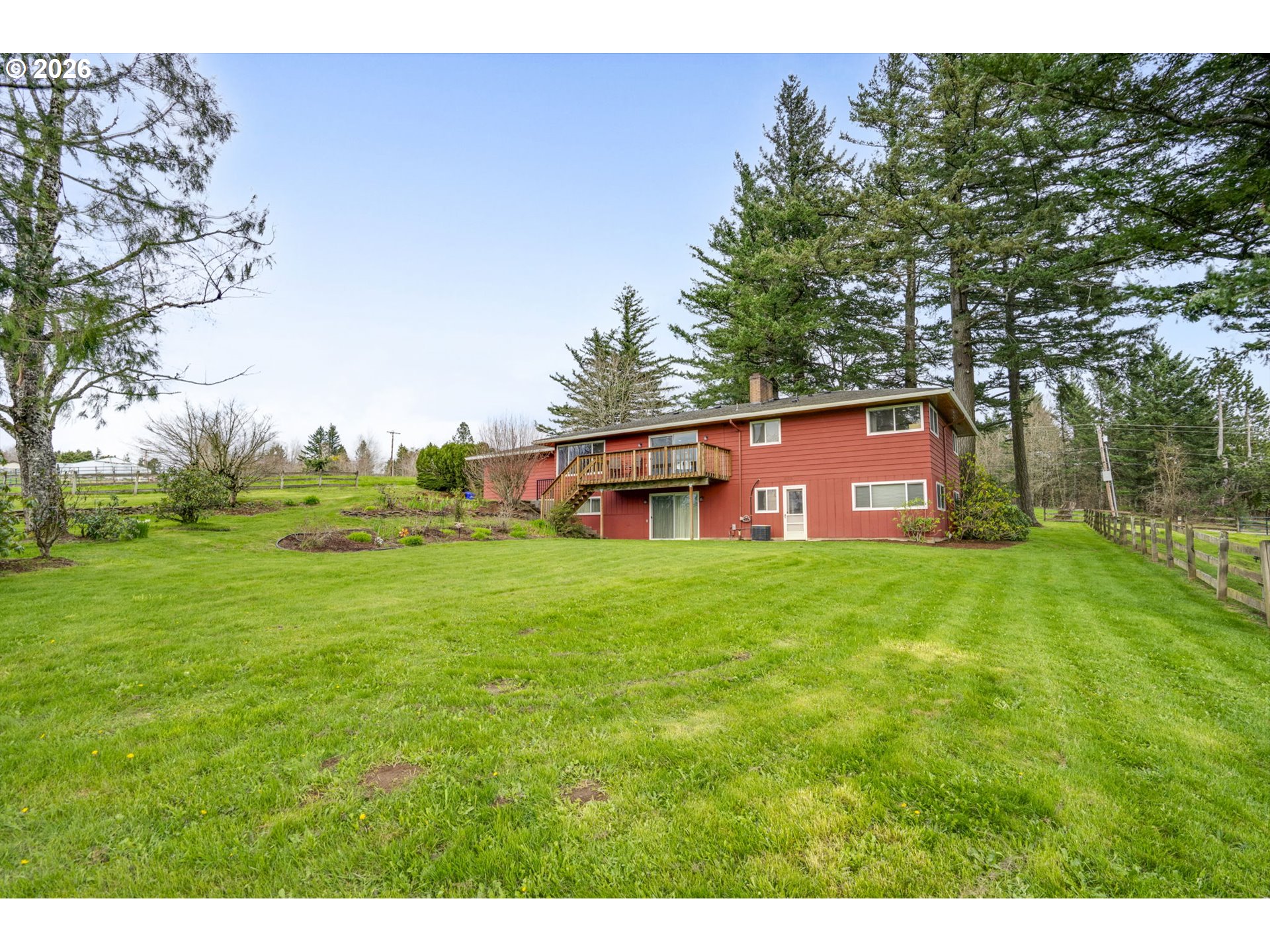 Serene 3-Acre Retreat with Territorial Views & Endless Potential!Ever dreamed of raising your family on a small farm? Well, here is your chance! Escape to the peace and quiet of Corbett in this stunning 3,392 sq. ft. updated, daylight ranch, perfectly situated on 3 usable, fenced acres. The heart of the home has been beautifully updated with brand-new custom Hickory cabinets, sleek new appliances, and gorgeous all-new Hickory hardwood floors that flow through the open, main living areas. Large windows frame peaceful territorial views, while the cozy wood burning fireplace creates the perfect anchor for family gatherings. The primary suite is on the main floor with a brand new bathroom and 2 other bedrooms and a fully updated 2nd bath! Other bonuses include a large laundry/mud room and an oversized two-car attached garage. This property is designed for flexibility and convenience:Multi-Generational Living: The finished lower level features a wet bar and a bonus kitchenette, full bath and 4th bedroom, ideal for a guest suite or separate living quarters.Turn-Key for Parents: No more morning rushes—the school bus stop is located right in front of the house and a tree house is ready to play in!Farm-Ready: The acreage is fenced for animals includes a barn/shop, a 30x30 workshop, 30x40 hay/storage area and back feeding area that is 30x10.(feeding trough is included in the sale) Ample RV/boat parking. With recent 2025 updates to electrical and plumbing for bathroom renovations already in place, the heavy lifting is done. 1.5 acres are in tax farm deferral. Bring your horses, cows or goats and your vision to this rare rural gem!