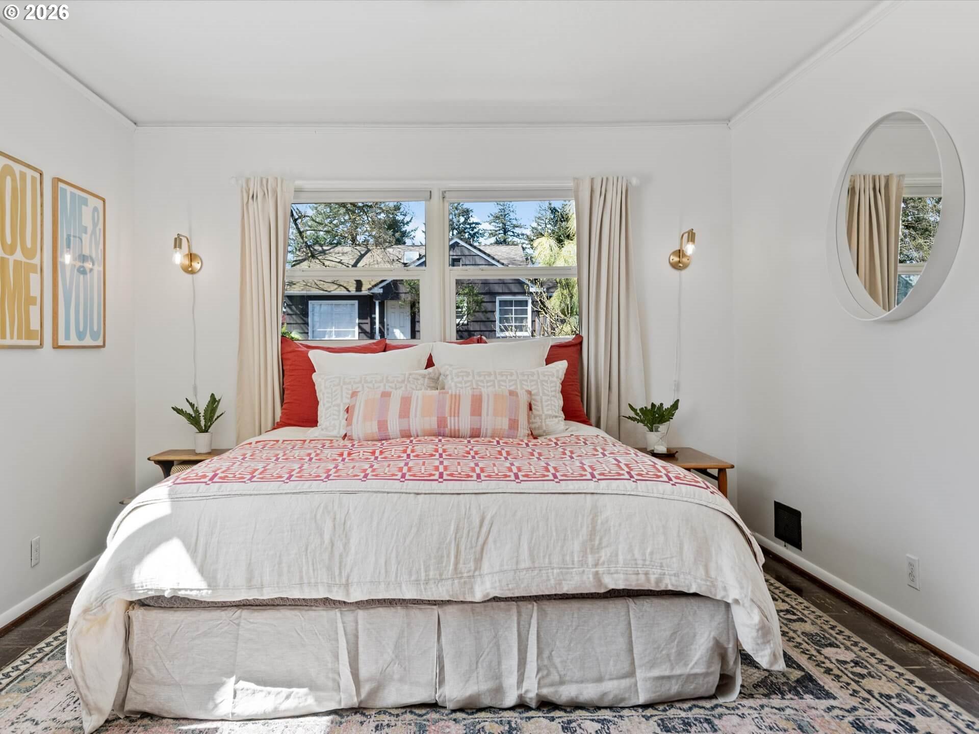 (503) 893-8874A mid-century beauty with natural light pouring in from oversized, triple paned windows throughout. The breezeway is both functional and, frankly, adorable! Wood built-ins in the bedrooms add warmth and storage. Life is easy with a private back deck just off the dining area for enjoying morning coffee or dinner outside. For peace of mind, the house has been re-plumbed throughout and the heat pump helps keep energy costs down. The fabulous xeriscape yard is brimming with mature plants and flowers that burst into color, plus a fruit-bearing apple tree. An oversized two-car garage provides excellent additional storage. Not far from Woodstock and boasting great vibes, this is one you don’t want to miss! [Home Energy Score = 8. HES Report at https://rpt.greenbuildingregistry.com/hes/OR10246498]