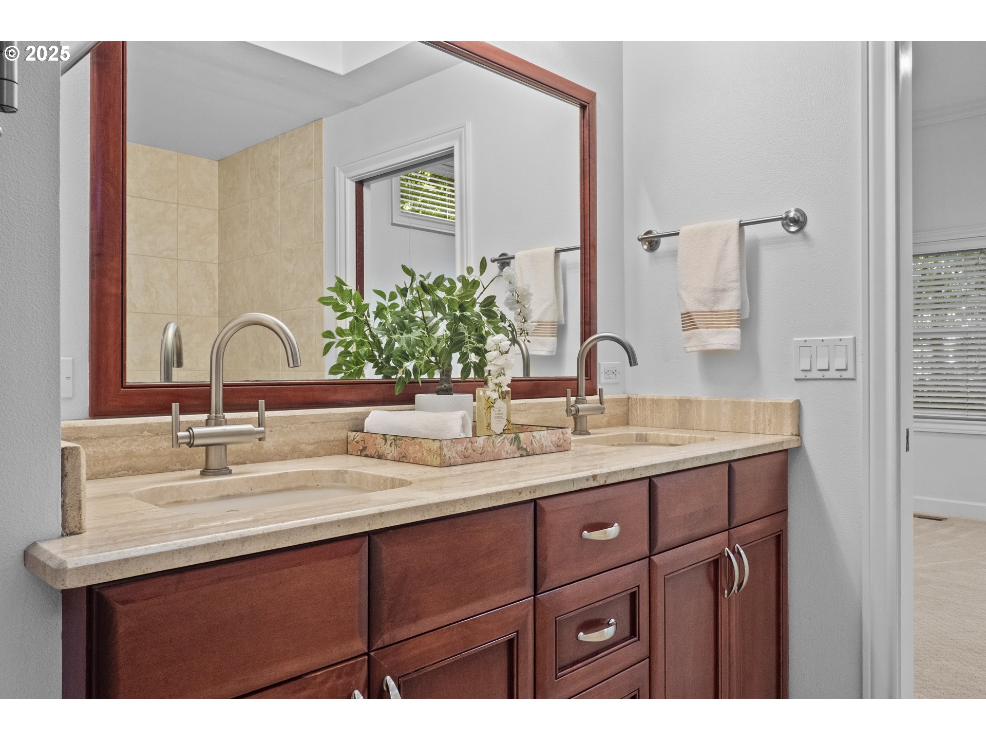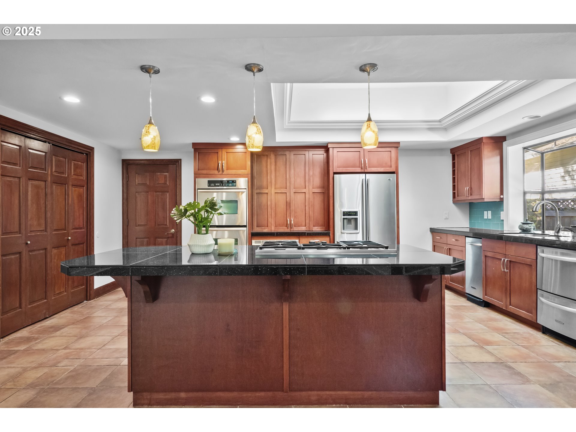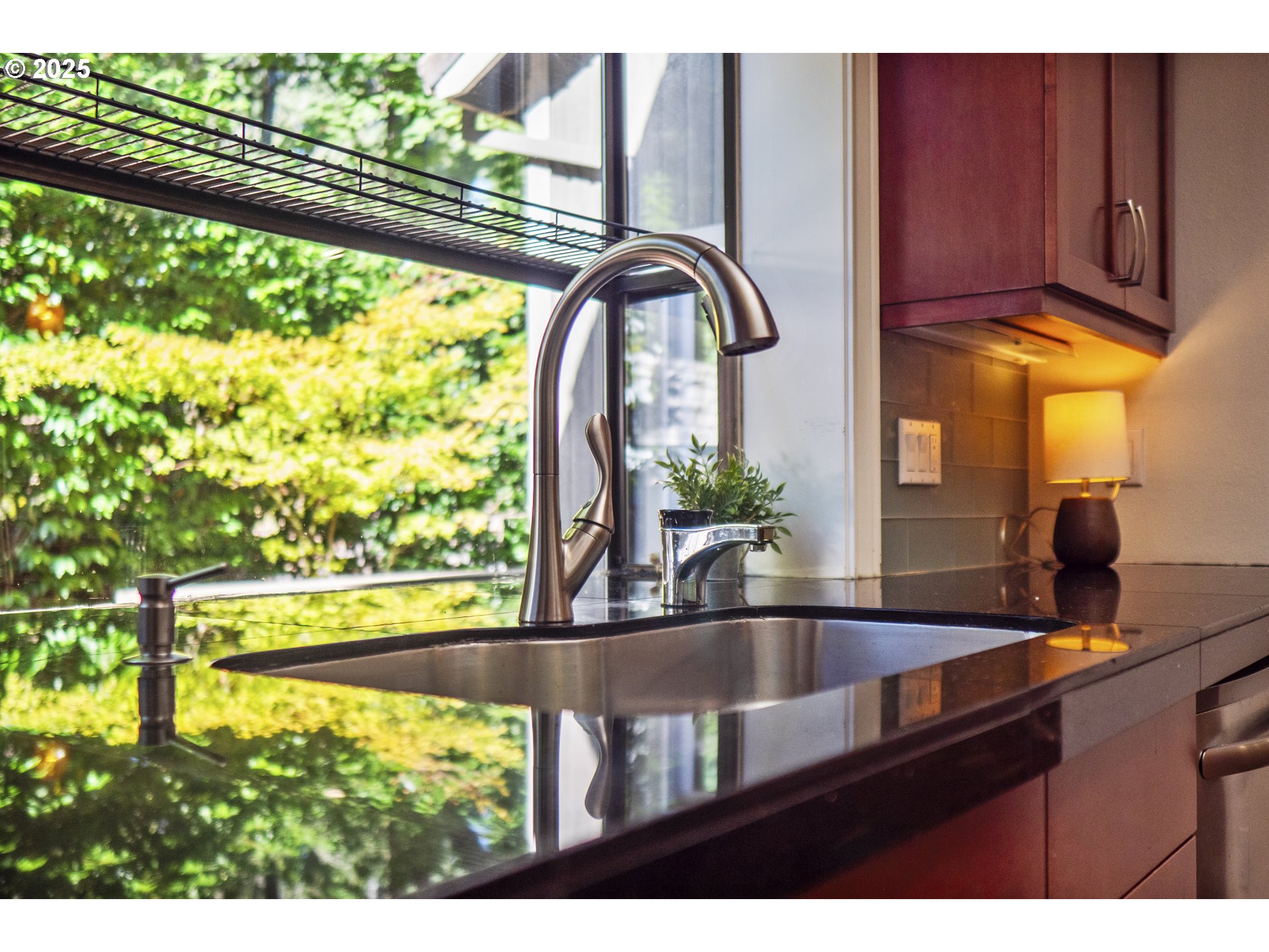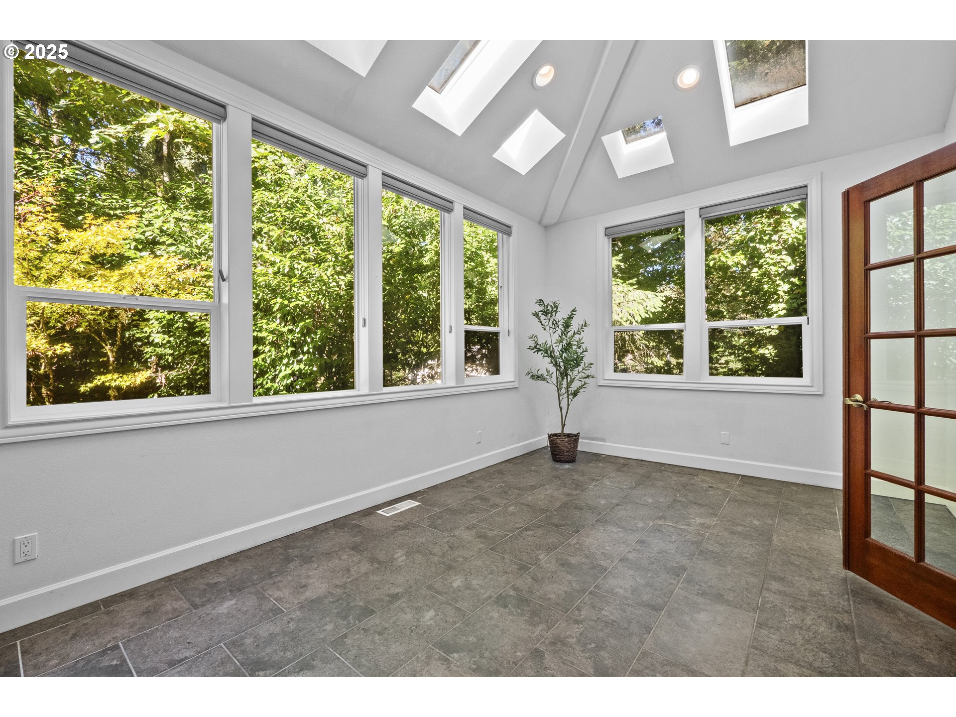 Tucked directly off Burnside, on a tree-lined setting and just a short jaunt to NW 23rd, this stunning custom one-level home offers the perfect blend of privacy, nature, and urban convenience. With neighborhood access to 200 acres of scenic trails in Hoyt Arboretum, it's a rare opportunity for those who crave natural surroundings without sacrificing location. The open great room floor plan is designed for effortless living and flow, featuring Brazilian cherry hardwood floors, a cozy fireplace, and a light-filled sunroom/artist's studio, that brings the outdoors in. The gourmet kitchen is a chef’s dream with granite countertops, gas appliances, custom cabinetry, and heated tile floors. Soaring 10-foot ceilings, skylights, a tile roof, and rich cedar siding enhance the home's charm and quality. The spacious primary suite includes a walk-in closet, double vanities, and a luxurious soaking tub. Step outside to a charming patio courtyard with water feature or unwind next to the fireplace viewing the stars through numerous skylights. With central A/C, low-maintenance landscaping, and single-level living in a sought-after neighborhood, this home is truly a rare find. Front yard yields room to create more outdoor living area similar to neighbors.