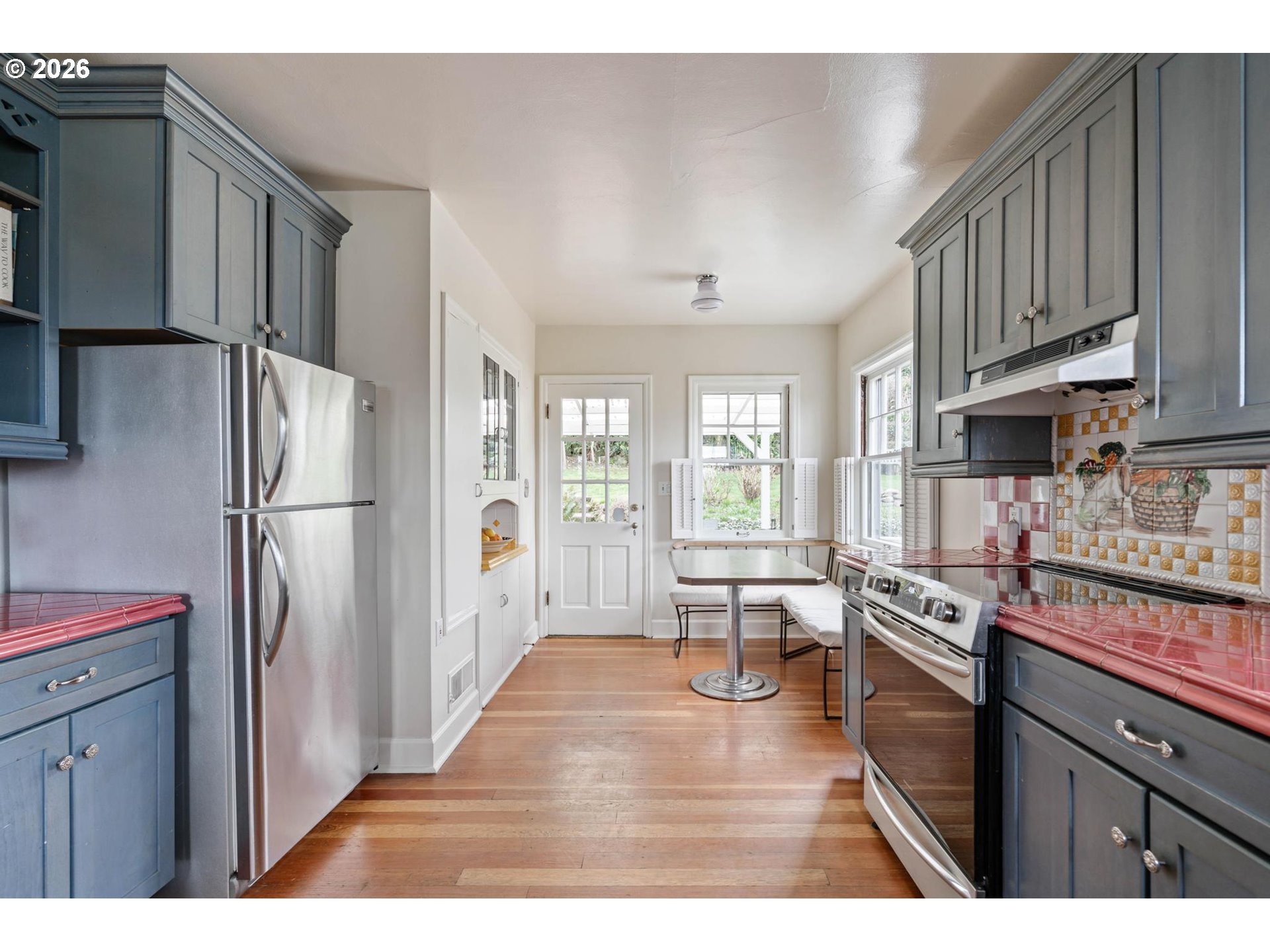 (503) 893-8874In the heart of Burlingame, this 1941 era 4-bedroom, 1.5 bath beauty has that rare mix of warmth, light, and timeless charm. Sunlight drifts through big windows, catching the glow of original hardwoods and vintage architectural details. The large living room and formal dining room accommodate space for friends and family. Flexible bonus space in the basement is currently a family room and gym. A private terraced back garden and the kitchen deck have an outstanding view of Mt. Hood. Mt St Helens is clearly visible from the dining room and fourth bedroom, constant reminders of why we love living in the PNW. This Burlingame location is .5 miles from Burlingame park, 1.2 miles from Tryon Creek State Park, minutes to Hillsdale, and downtown Portland. Come see this beautiful home that is well loved, and ready for its next chapter. [Home Energy Score = 1. HES Report at https://rpt.greenbuildingregistry.com/hes/OR10242283]