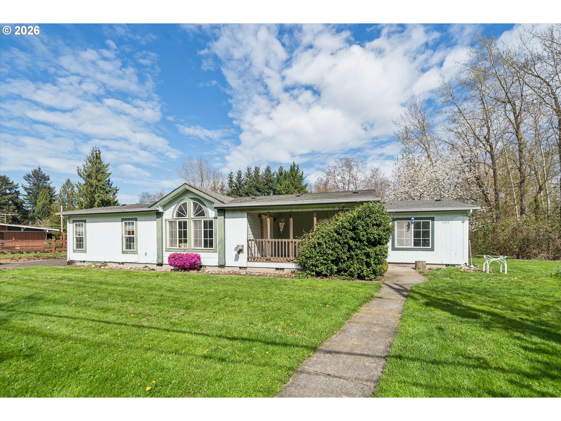 Opportunity awaits with this triple-wide manufactured home set on a generous 0.8-acre (34,848 sq ft) lot, nestled on a quiet road and surrounded by peaceful green space. Featuring 3 bedrooms and 2 bathrooms, the home offers a spacious, open layout with over 9’ ceilings, two large living areas, and abundant natural light from windows spanning the entire perimeter, plus a skylight in the primary bathroom.The open kitchen is designed for functionality and gathering, with a large central island, ample counter space, and plentiful cabinetry. The primary suite includes a 9’ x 6’ walk-in closet and a private bath with dual sinks, a soaking tub, and a separate shower. A cozy pellet stove adds warmth and charm to the living space.Outdoor features shine with a massive front and backyard, ideal for gardening, play, or simply enjoying the surrounding wildlife and private nature trail. The front porch offers a welcoming space for relaxing or entertaining. A 60’ x 20’ level concrete driveway provides abundant parking for vehicles, RV, boat, or trailer, and includes an outlet suitable for RV hookup or potential EV charging.Conveniently located with easy access to I-5 and I-205, and just a short commute to Portland Airport and Vancouver, WA. Close proximity to the Columbia River and Gleason Boat Ramp adds to the appeal for outdoor enthusiasts.Home is supported on a poured concrete foundation with earthquake straps and is ready for updates—bring your vision, tools, and creativity to restore and build equity in this serene, nature-filled setting.