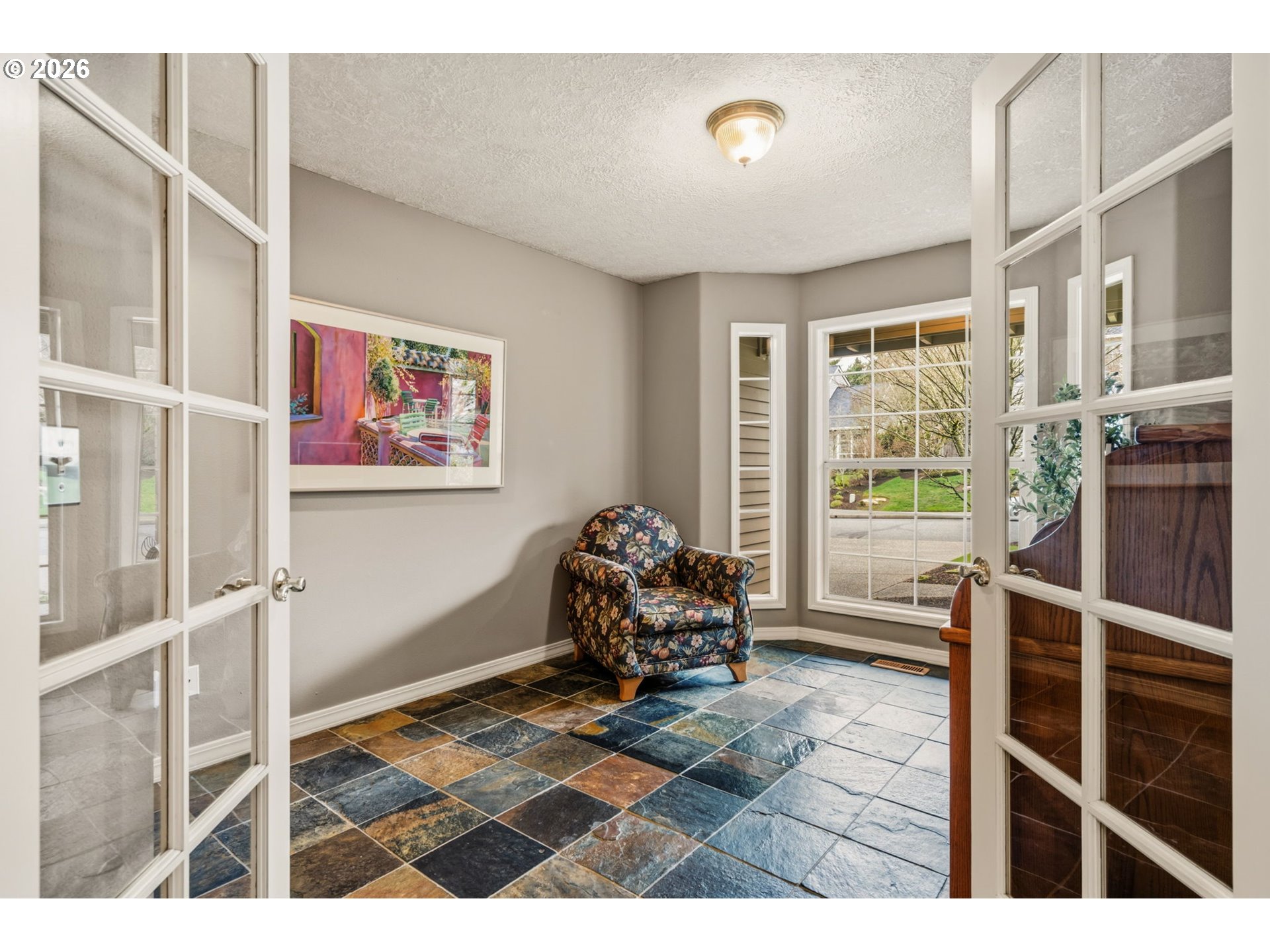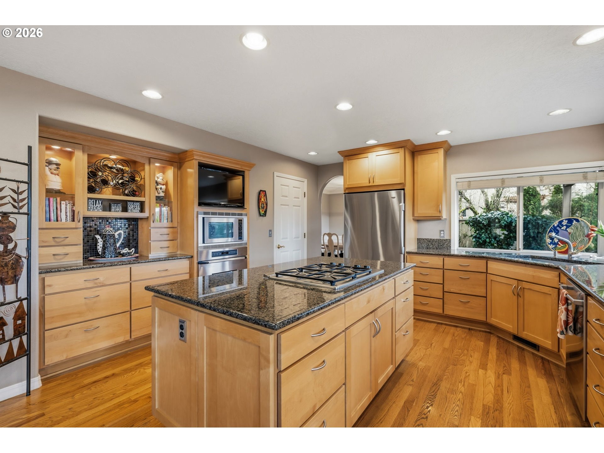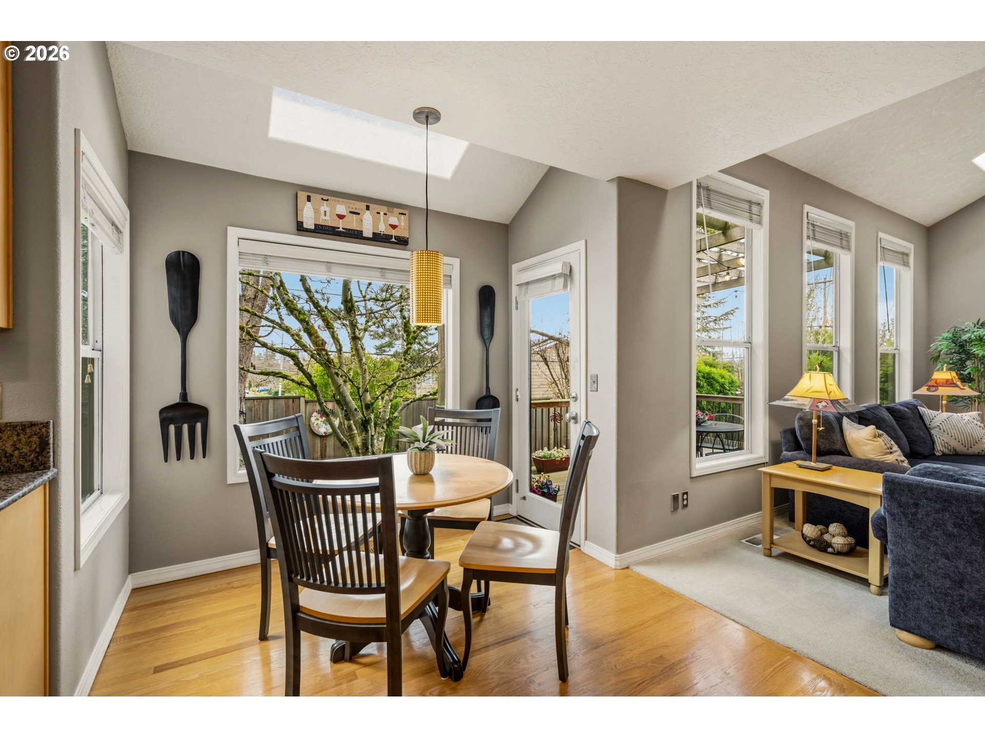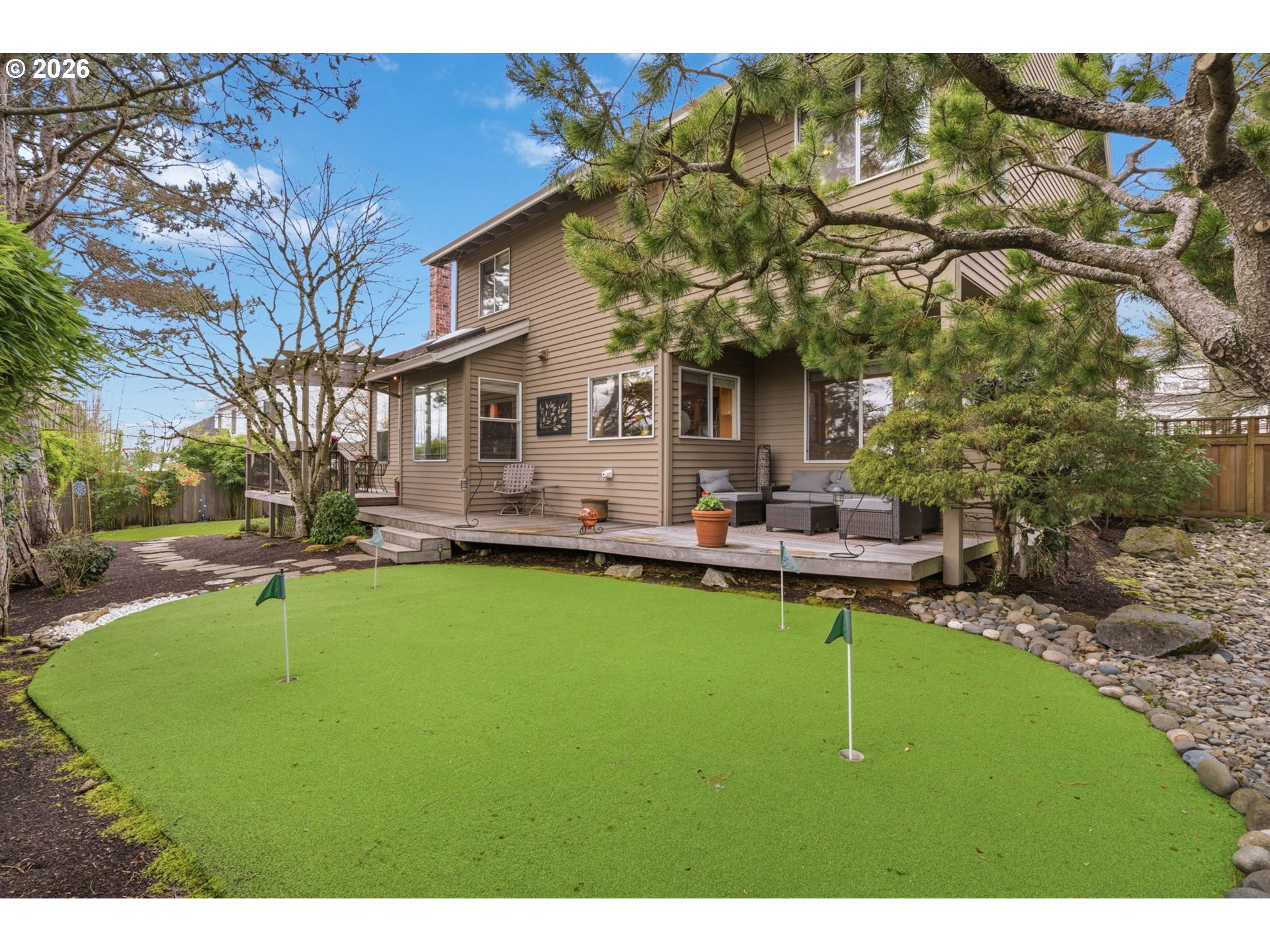 Tucked into a quiet pocket of Southwest Portland just minutes from Lake Oswego, this beautifully updated home offers the perfect balance of modern comfort and natural surroundings.Step inside to warm hardwood floors and a light-filled, open layout designed for both everyday living and effortless entertaining. A private home office or den with French doors and slate flooring provides a quiet space for work or study. The living and dining areas flow seamlessly into the remodeled kitchen, where stainless steel appliances, granite countertops, and a welcoming eating nook open directly to the family room—creating a natural gathering place for daily life and entertaining.Upstairs, the spacious primary suite offers vaulted ceilings, a bay window, and a thoughtfully remodeled ensuite bath with double sinks, a walk-in shower, and a soaking tub designed for relaxing at the end of the day. Two additional bedrooms, a full bath, and a versatile bonus or flex space provide exceptional flexibility—ideal for a media room, fitness area, guest space, or creative studio.Outdoor living is just as inviting. The backyard features low-maintenance landscaping, multiple outdoor spaces, a putting green, and both open and covered decks—perfect for relaxing or entertaining year-round.Additional highlights include a three-car garage with an electric vehicle charger and convenient access to nearby parks, shopping, dining, and major commuter routes.Ideally located between Lake Oswego and Portland, this home offers comfort, functionality, and a setting that feels peaceful while remaining close to everything. Welcome home!