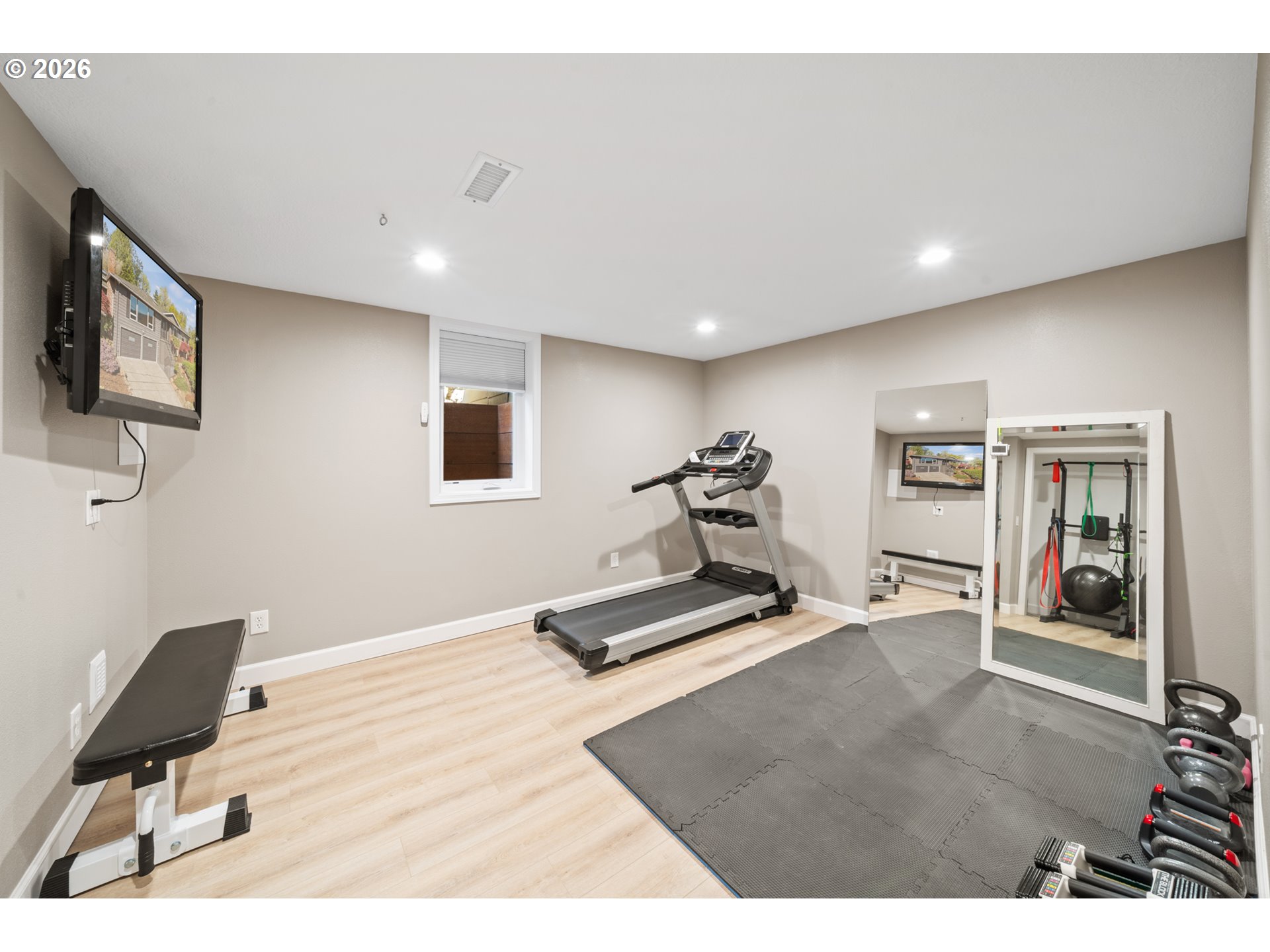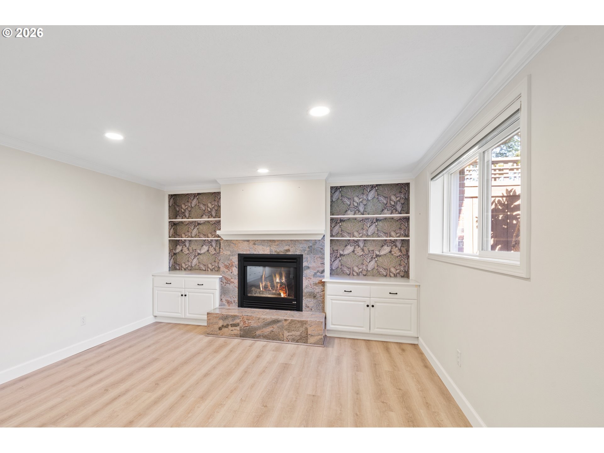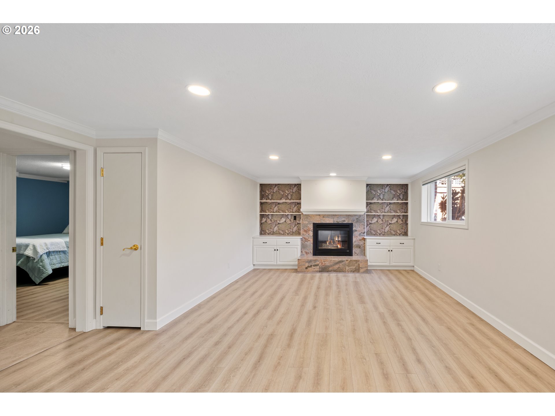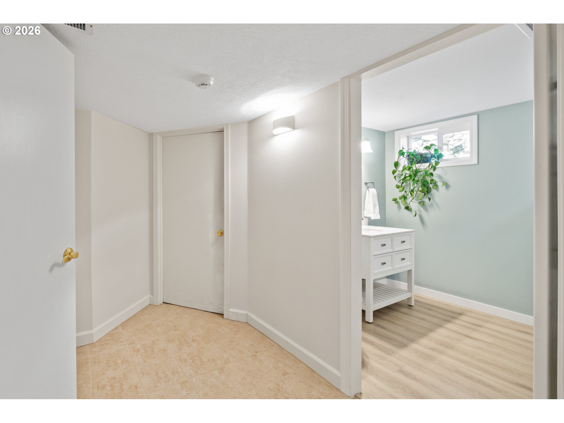 Perched on a prominent corner lot with sweeping views, this classic mid-century home is airy, inviting, and filled with natural light. The true showstopper is the fully fenced backyard, complete with a terraced pond, blueberries, strawberries, raspberries, plum trees, and ample sunny space for raised beds. Inside, the lower level provides exceptional flexibility with a full kitchen, living and dining areas, two bedrooms, a full bathroom, and a gas fireplace, perfect for guests, rental income, or multi-generational living. Upstairs the living room, anchored by a wood-burning fireplace, connects to the dining room, sunroom, kitchen, and den, creating an ideal layout for both everyday living and entertaining. The primary suite offers a peaceful retreat, complete with a gas fireplace, smart-control shades, and an updated walk-in closet. The recently renovated ensuite bathroom features new tile flooring, a large walk-in shower, and his-and-hers sinks. The sunroom opens to a wooden deck and is ideal as a den, office, or studio. Additional highlights include a large laundry room, abundant storage throughout, and a two-car garage equipped with an EV charger. Located in SW Portland’s Hayhurst neighborhood, just moments from Gabriel Park and close to popular dining and everyday conveniences, this is a home designed for comfort, flexibility, and lasting enjoyment.