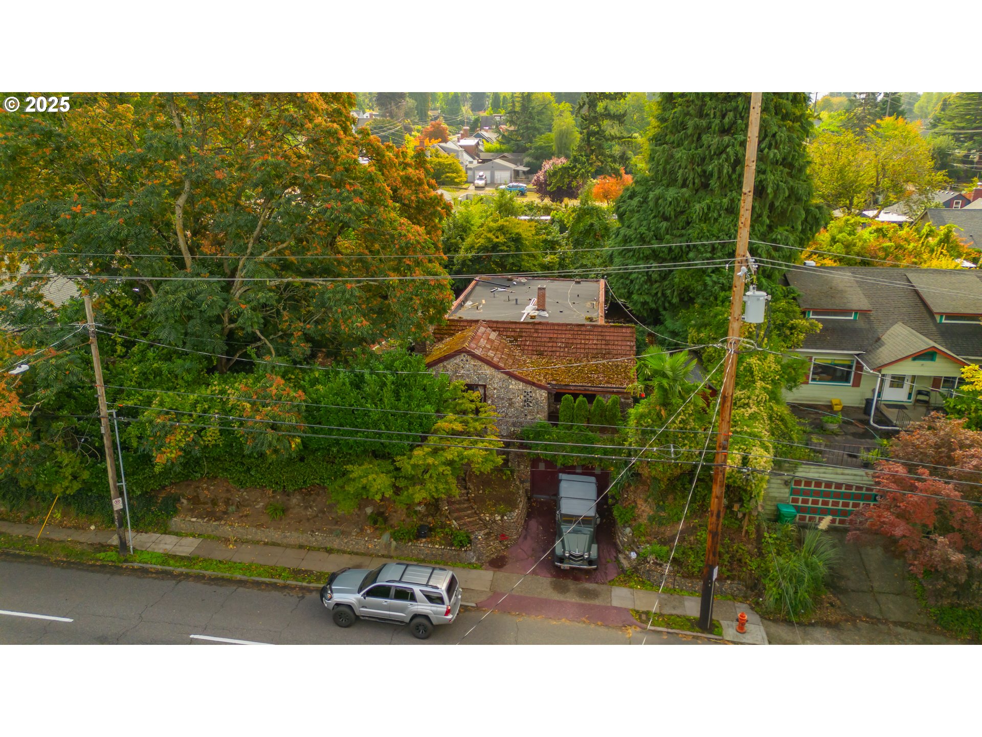 This thoughtfully updated 1934 gem blends historic character with truly one-of-a-kind details inside and out. The exterior is embedded with gem quality rocks, crystals, and petrified wood, setting the tone for a home that’s anything but ordinary. Enter through a crystal-ceiling entryway, then discover hand-hewn exposed wood beams, 2 show stopping rock-and-crystal fireplaces, 3/4 inch thick hard wood floors, a charming telephone nook with an original laundry chute, and a butler’s pantry with original built-in cabinets. With 3 spacious bedrooms, 1 full bath, and nearly 2,800 square feet of creative space, this home offers room to live, create, and entertain. Step outside to a private sanctuary featuring a tranquil scent garden, wrap-around entertainer’s porch, hot tub, wood shed, and mature landscaping with grapevines, kiwis, and more. This is not just a home—it's an experience. Own a piece of Portland’s soul. [Home Energy Score = 3. HES Report at https://rpt.greenbuildingregistry.com/hes/OR10241551]