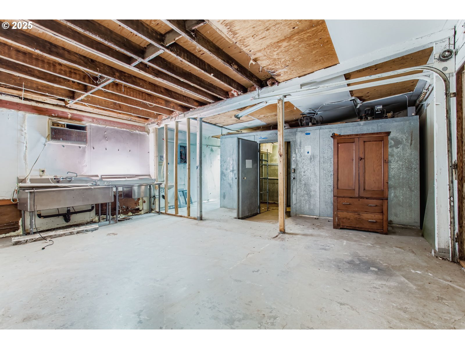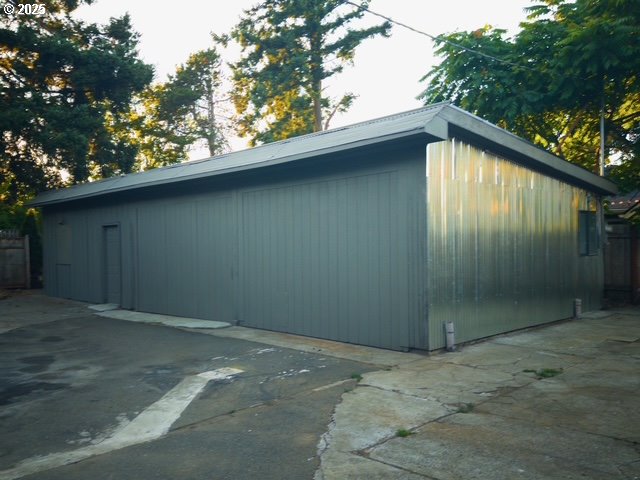 This unique 1979 split-level home, with a shop, in SE Portland offers incredible versatility and potential, located in a vibrant neighborhood near popular bars, shops, and just a short drive to Downtown. Featuring 4 bedrooms, 2 bathrooms, plus a bonus room in the partially converted garage ideal for a 5th bedroom or office, the home includes fresh interior and exterior paint, two fireplaces, wall-to-wall carpet in bedrooms, vinyl flooring in living areas, a deck for entertaining, and updated systems including A/C, heat pump, HVAC, and water heater. A standout feature is the outbuilding—formerly a commercial kitchen—equipped with plumbing, electricity, its own water heater, walk-in freezer and refrigerator, and a bathroom. While the interior needs updating, the freshly painted exterior and infrastructure offer huge potential for use as a commercial kitchen, meat storage, hobby space, or future ADU. The gated entrance offers added privacy and security, and the expansive parking area can easily accommodate multiple vehicles, an RV, or even a boat. This property offers a rare mix of residential comfort and commercial-commissary flexibility—is perfect for buyers looking to invest in a dynamic neighborhood.