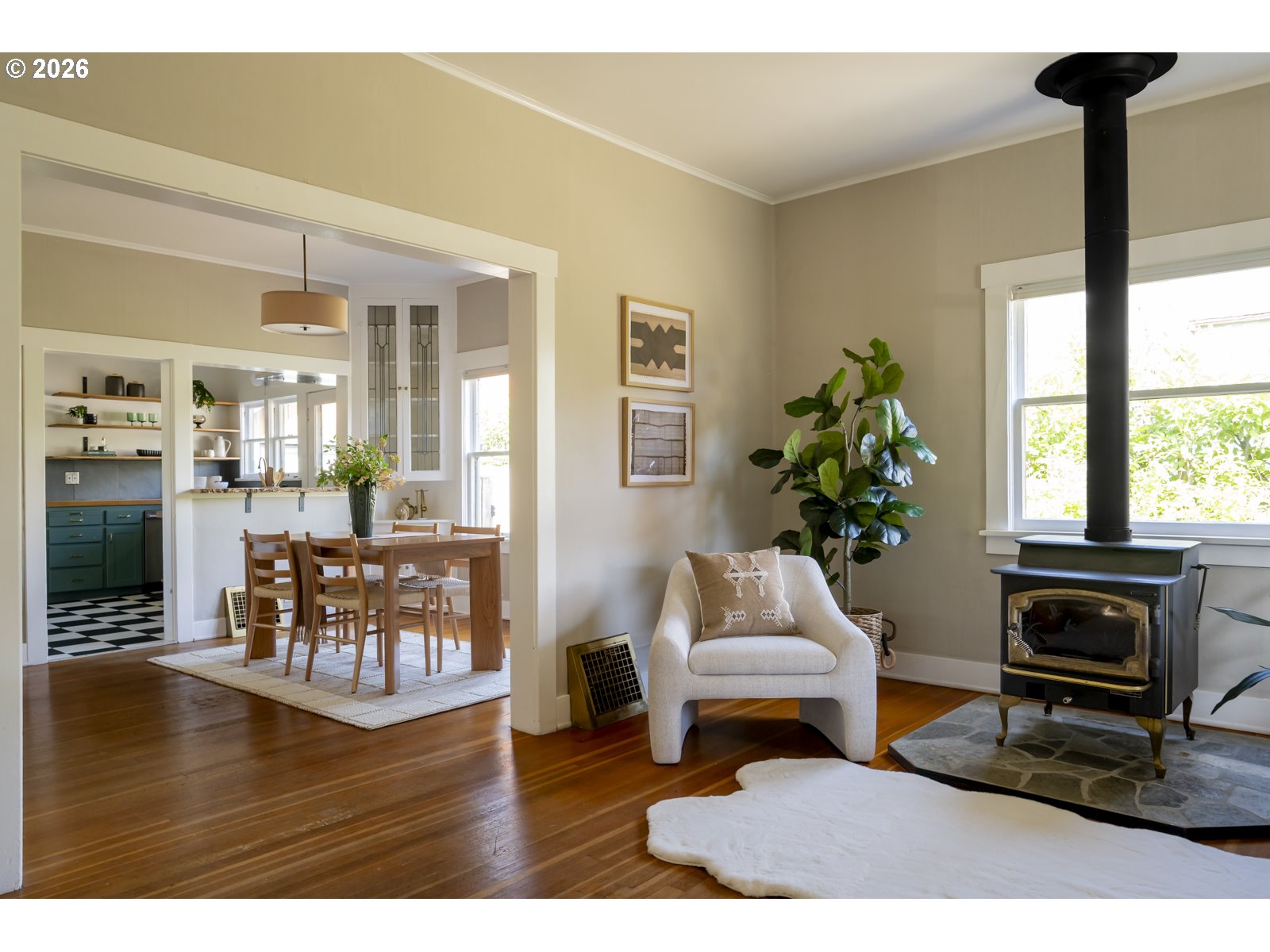 (503) 893-8874Perched above Spokane Street in the heart of Sellwood, this quintessential Sellwood bungalow nods to Portland’s earliest days. Originally built to house workers at the historic lumber mill on Spokane, its spirit has been thoughtfully carried forward by generations of stewards. Today, it strikes a rare balance, preserving original character while enhancing it with tasteful and functional updates. Original fir floors, twin leaded-glass built-ins, and a rustic woodstove ground the home in its history, while an open, efficient layout keeps spaces feeling defined yet connected. Sightlines stretch from front to back, making the space feel larger than its footprint—equally suited for cozy nights in or lively dinners with friends. The kitchen blends old and new with intention: butcher block counters, custom shelving, a vintage-inspired faucet, and stainless steel appliances, including a gas range. A side entrance offers easy flow for dining al fresco. It’s warm, functional, and quietly dialed. Three bedrooms offer flexibility, with one positioned perfectly for a home office or study, and two tucked at the back for privacy—each with generous walk-in closets. The bespoke aesthetic continues into the bathroom, featuring a custom ceramic sink from Wolf Ceramics and handcrafted wood shelving. Outside, the broad front porch invites slow mornings and evening winddowns. A detached studio, recently re-sided with old growth cedar salvaged from the coast, opens the door for creative pursuits. Edible plantings and pollinator-friendly blooms fill the yards, and the barrel tub offers a choose-your-own-adventure moment: hot soak or cold plunge. With easy access to Oaks Bottom, Sellwood & Riverfront Parks, the Springwater Trail, the Bridge and dining/shopping destinations, this location hits that sweet spot—connected, but quietly removed. New sewer in 2016. 85 walkscore, 97 bikescore. [Home Energy Score = 1. HES Report at https://rpt.greenbuildingregistry.com/hes/OR10123183]