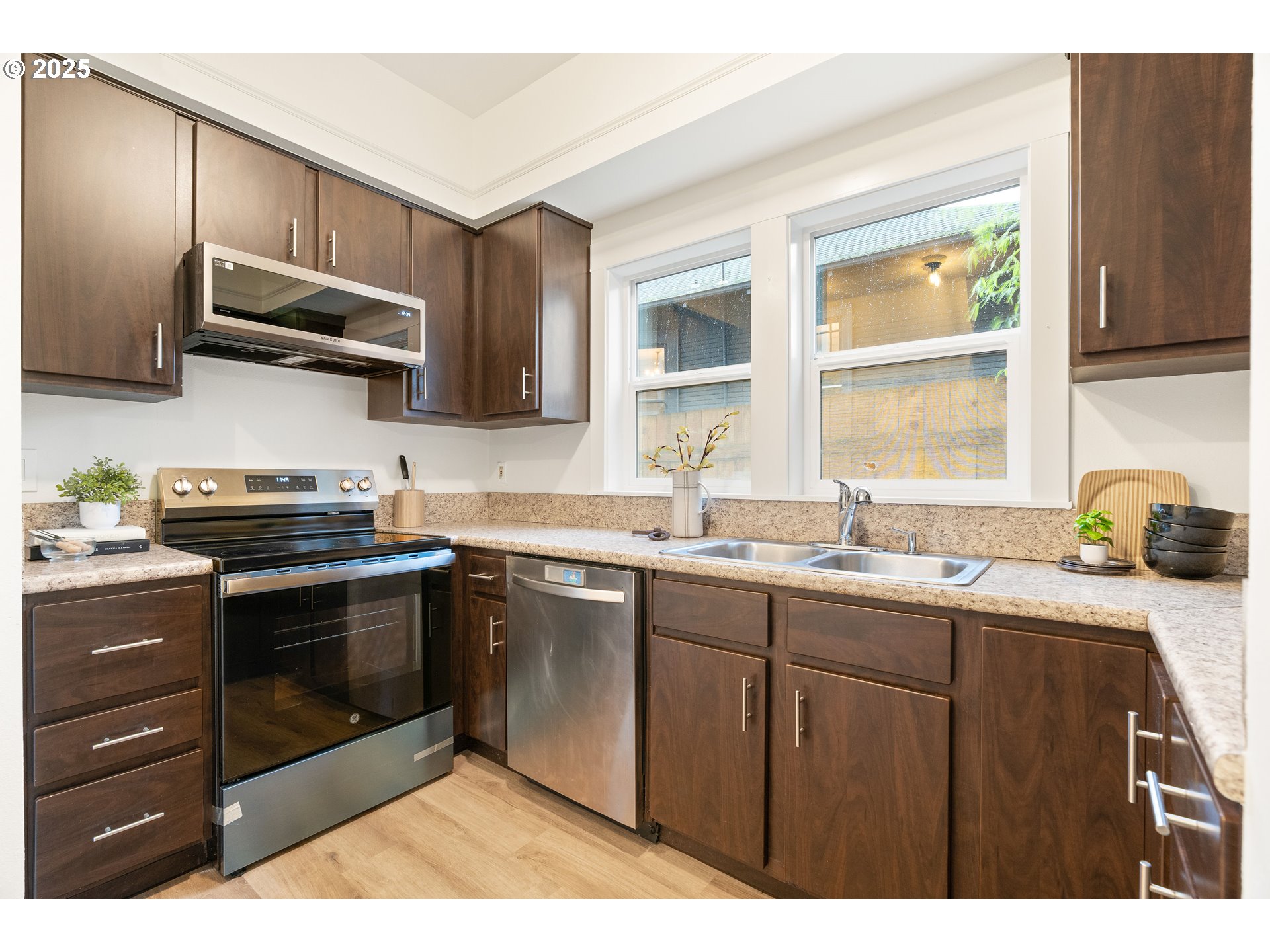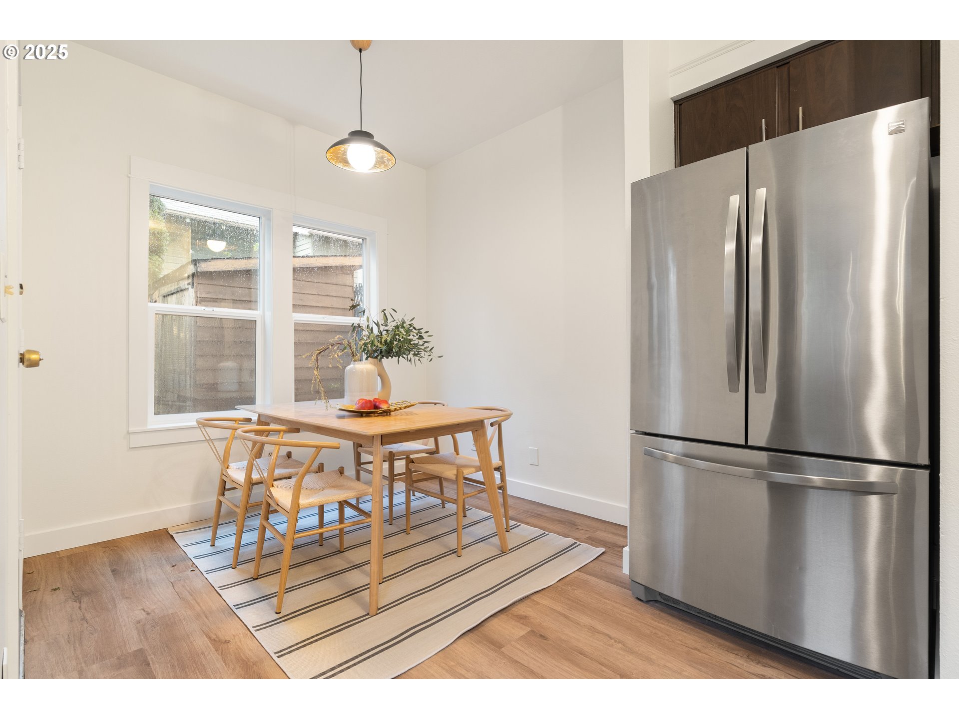 OPEN HOUSE - 12/14 Sunday 12:00 - 2:00! Affordable cutie in King! rare NO HOA and off-street/driveway parking! Come see this charming, attached home offering 3 bedrooms and 2 full bathrooms in the heart of inner NE Portland. Step inside to a spacious living room, full bathroom, laundry, kitchen, and dining area on the main level. Upstairs you’ll find three comfortable bedrooms and an updated full bath. Enjoy a manageable yard with shed, entertaining deck, and space for small garden beds. Driveway provides off street parking. Move in ready with fresh interior paint throughout and new floors on main floor. Bonus storage space in large, clean, easily accessible attic. Incredible location near PCC, U of O PDX campus, PDX airport, and quick access to I-5. Just blocks from Killingsworth and the vibrant Alberta Arts District, with dining options like Piedmont Food Cart Station, Hat Yai, Podnah’s BBQ, Orange & Blossom Patisserie, Mis Tacones, and more. With a Walk Score of 88 and Bike Score of 100, this home offers affordable and easy living in one of Portland’s most desirable neighborhoods. [Home Energy Score = 6. HES Report at https://rpt.greenbuildingregistry.com/hes/OR10243105]