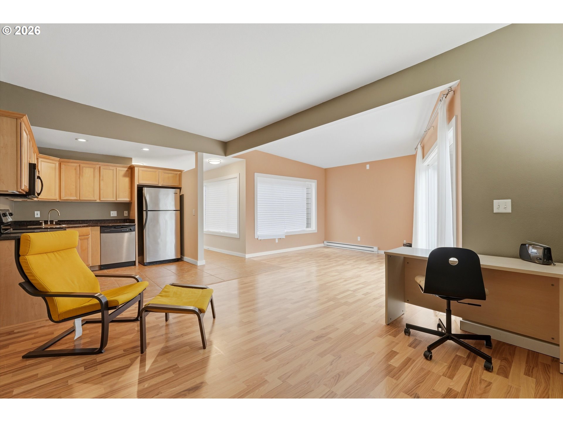 Positioned in one of Southwest Portland’s most connected corridors, this thoughtfully updated residence offers a rare balance of comfort, efficiency, and long-term value. Recent exterior upgrades—including new siding, enhanced insulation, and updated windows and sliding door—deliver both performance and peace of mind.Inside, the open-concept kitchen is finished with granite surfaces, stainless steel appliances, and durable tile flooring that extends seamlessly into both bathrooms. A dedicated in-unit laundry area with built-in storage adds everyday functionality, while the primary suite features dual closets for elevated livability.HOA covers water, sewer, garbage, and exterior maintenance for simplified ownership. Ideally located adjacent to Ida B. Wells High School and within close proximity to OHSU, this is a strategic opportunity for both primary living and investment. Moments to dining, transit, and downtown Portland.