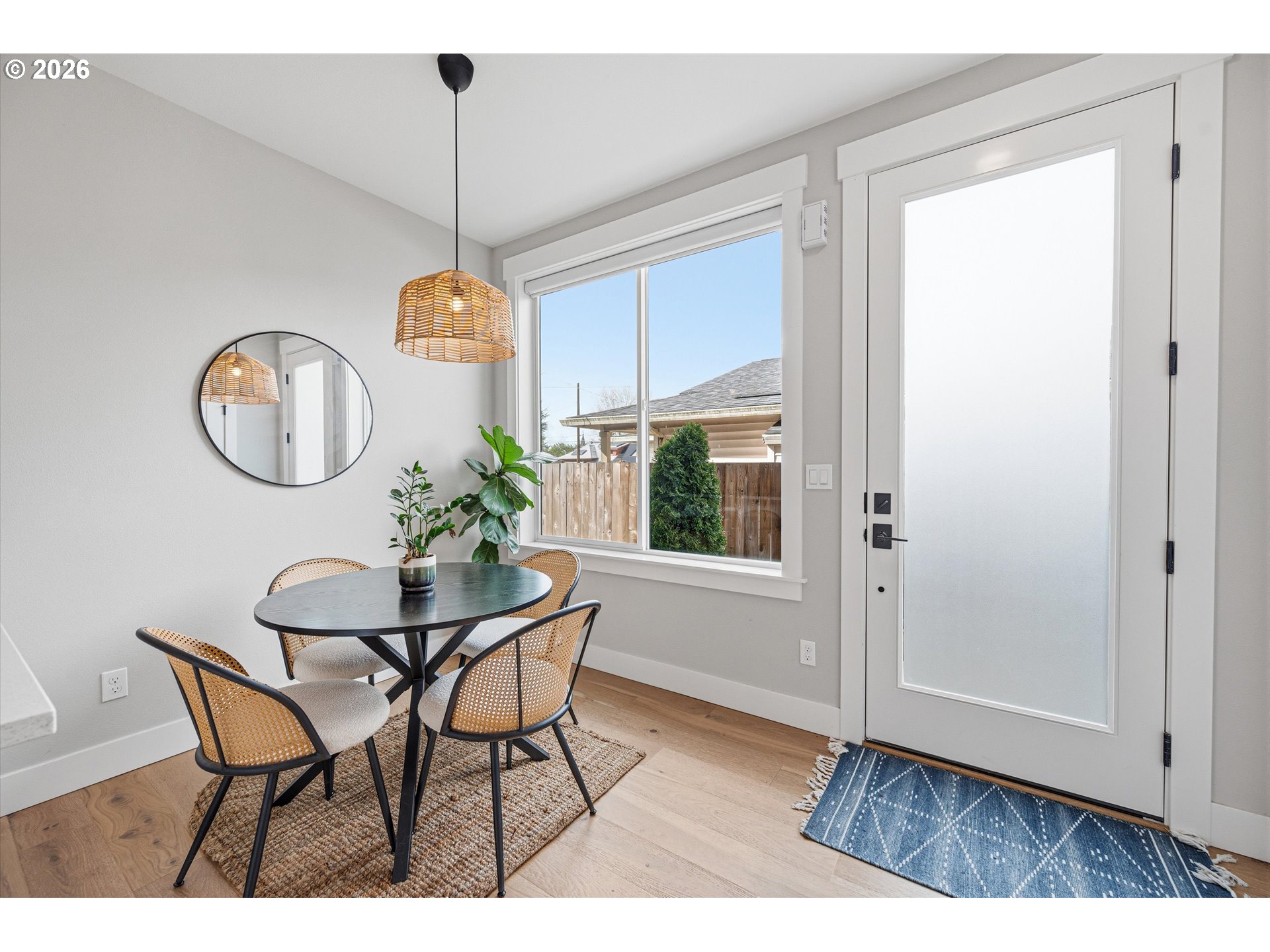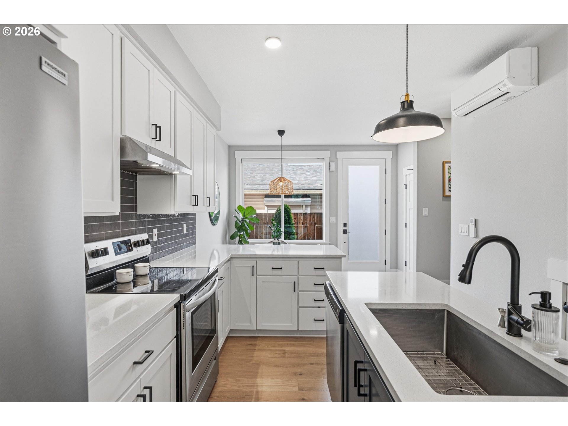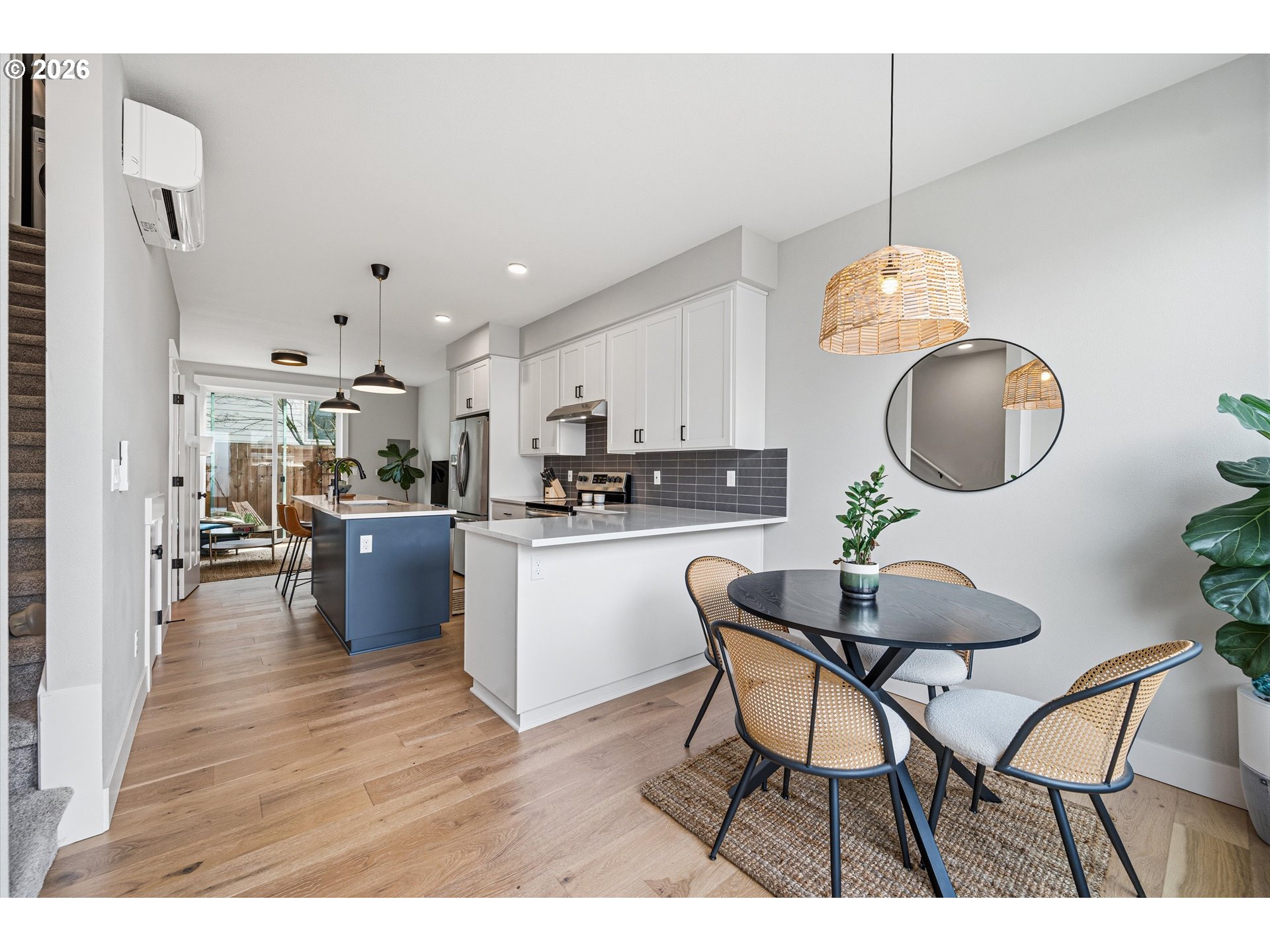 Immaculate and better than new! This stunning 2024 built townhome is in pristine condition and already has all the things you forget about when you buy a new build... You know, window coverings, all of the appliances etc. And NO HOA! Perfect main floor flow with 9' ceilings, a half bath and tons of natural light. The kitchen is sublime with a real dining area and expansive quartz countertops make for great entertaining and cooking to your hearts delight! The upstairs features two beautiful suites. One generously sized en-suite primary bedroom with a lovely walk-in shower and a guest suite/office with a tub and shower combo. The patio is just darling. The owner has made the most of the outdoor space with trellises for plantings and with the big floor to ceiling doors, you can enjoy bringing the outside in. Mini-splits for heat and A/C for the coming summer months and a full size high-end washer/dryer make this truly move in ready! All of this just blocks to the Dekum triangle, Alberta Park and all of the best of inner Northeast Portland!