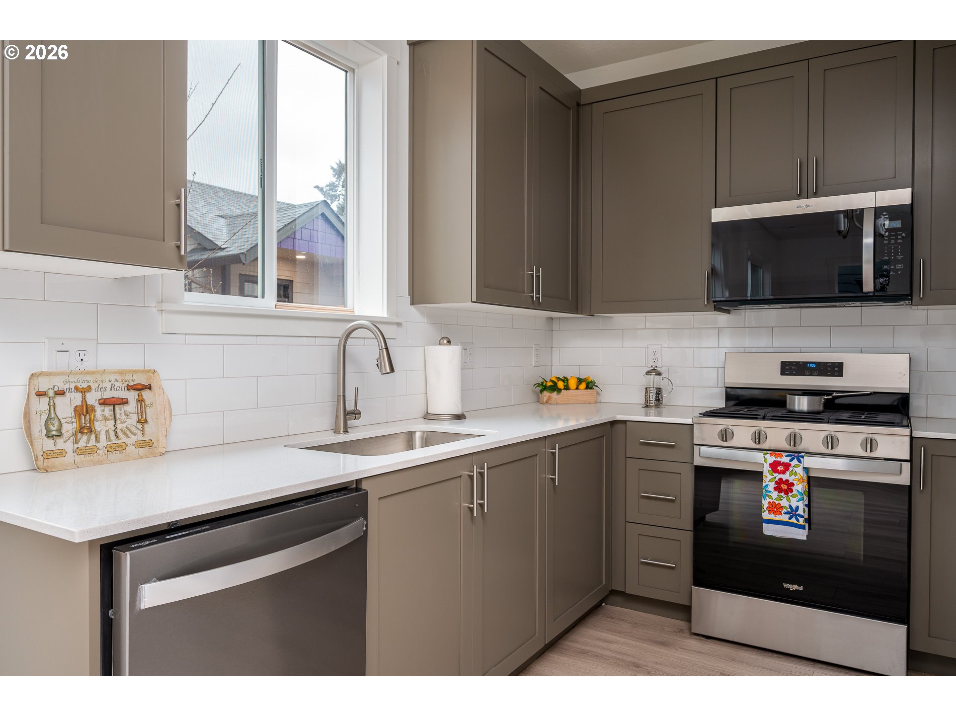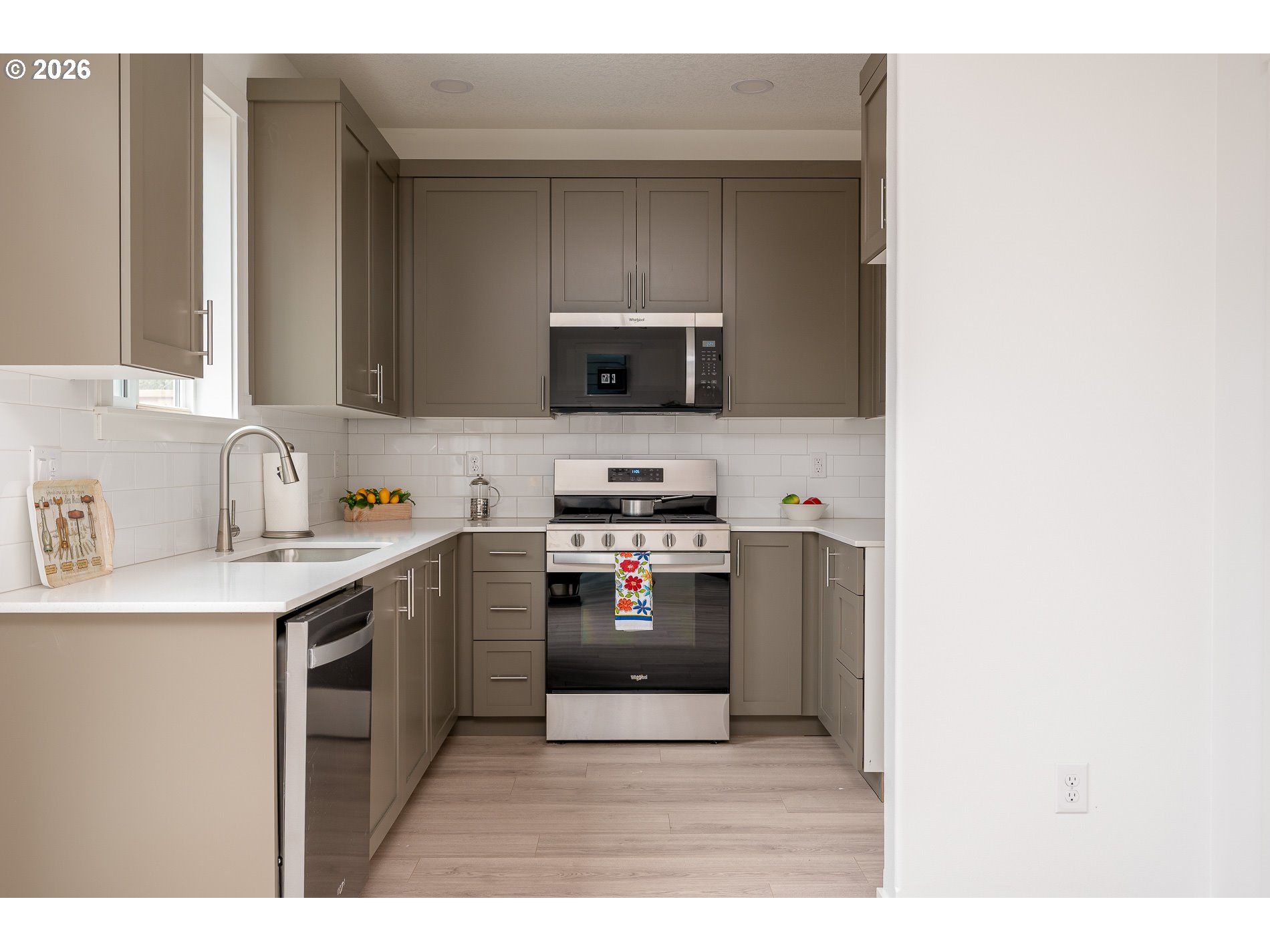 Brand-new home in convenient SE neighborhood, just one block from Brentwood City Park and minutes to Woodstock shops and dining. This thoughtful design features laminate floors throughout the main level, quartz countertops, designer cabinetry, and stainless-steel appliances including micro-hood. Craftsman millwork and a cozy gas fireplace add timeless character and warmth. Bathrooms are finished with quartz counters and tile flooring. Vaulted primary bedroom has a walk-in closet and ensuite bath with double vanity sinks. Attached garage. High-efficiency gas heat. Buyer incentives available with preferred lender program. Save hundreds of dollars monthly with HOLTE 10-year limited tax abatement. Buyer(s) to qualify for HOLTE/SDC waivers. https://bit.ly/3OQqINS
