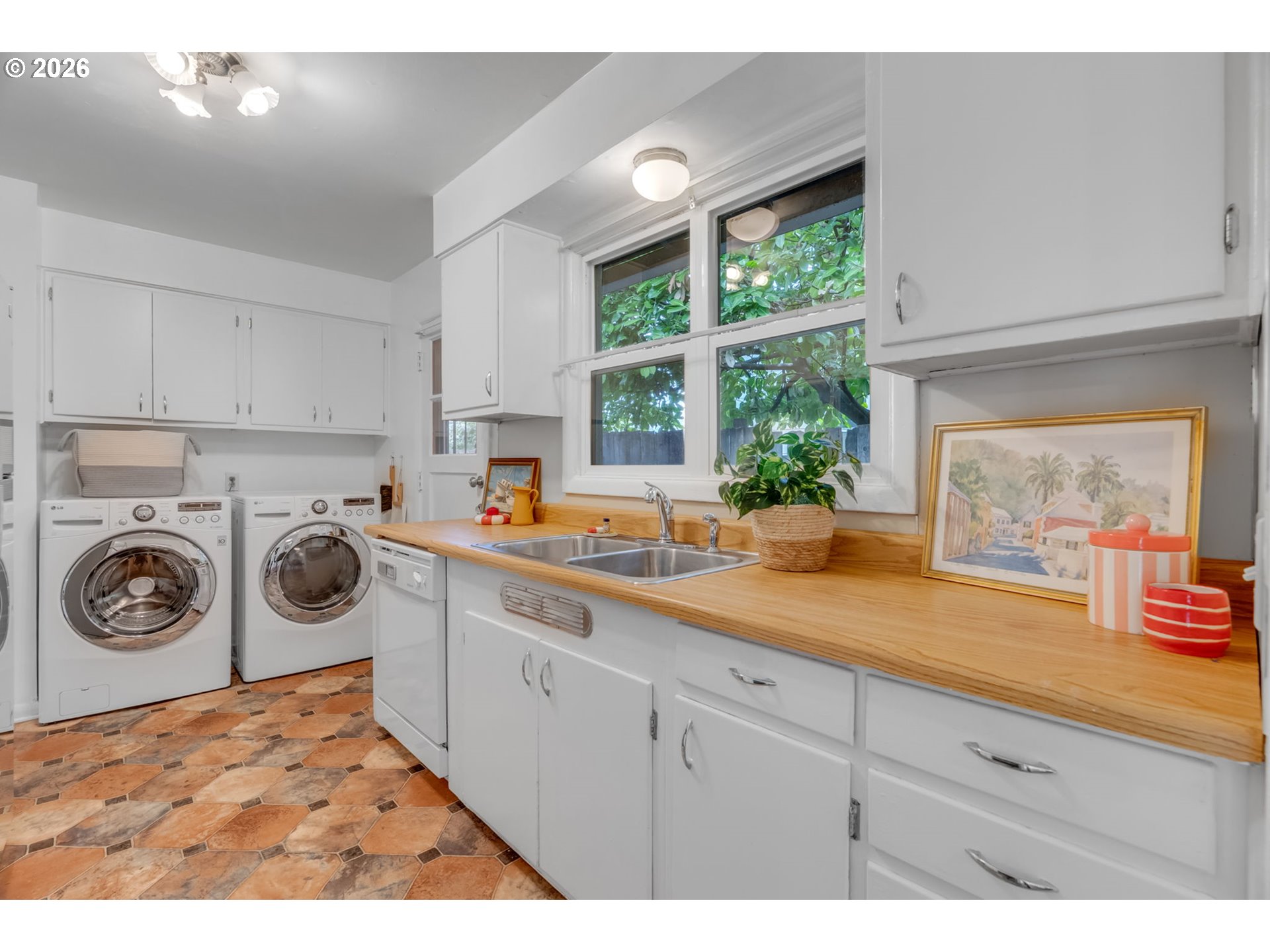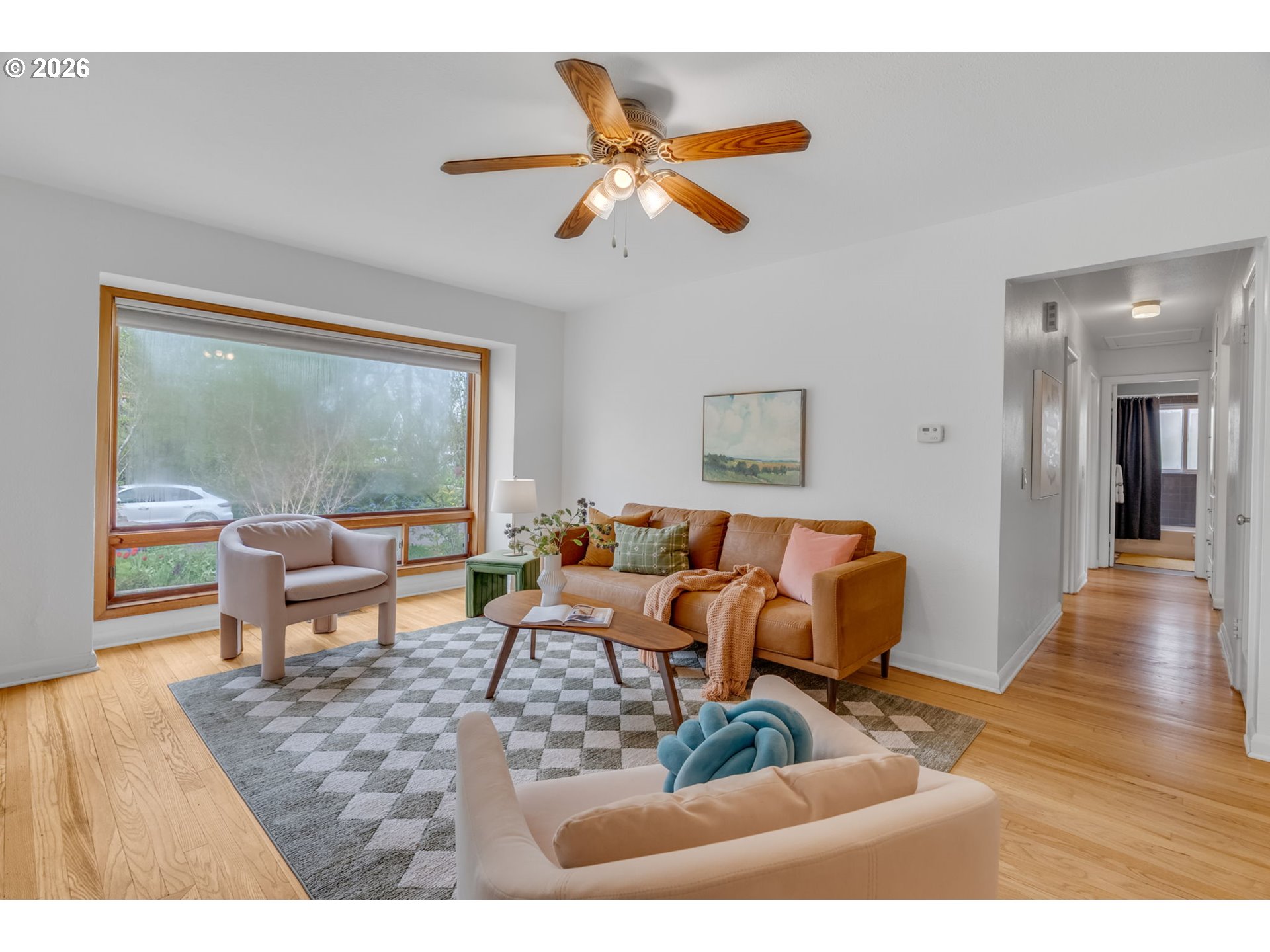 Perched on a sunny corner lot in Portland’s sought-after Woodlawn neighborhood, this thoughtfully maintained 3BR/1BA ranch is surrounded by a mature, edible landscape with established plantings and ready-to-use garden boxes—creating a private urban retreat. The fully fenced backyard invites effortless entertaining, from summer gatherings to quiet evenings under the trees. A garage and off-street parking add everyday convenience.Inside, warm hardwood floors run throughout a spacious living room anchored by a cozy wood-burning fireplace. A large picture window fills the space with natural light, creating an inviting atmosphere year-round. The adjacent dining room features a vintage 1950s light fixture and sliding doors that open directly to the backyard for seamless indoor-outdoor living.The efficient galley-style kitchen includes a washer and dryer, while the hallway leads to three bedrooms and an updated bathroom tucked at the end. Located in one of NE Portland’s most vibrant neighborhoods—just blocks to Woodlawn Coffee, Woodlawn Park, and the Alberta Arts District with its popular restaurants, cafés, galleries, and lively weekend scene. Enjoy nearby Dekum Triangle favorites, local boutiques, and year-round community events. Bike-friendly streets, multiple parks, and easy access to downtown Portland and Vancouver complete the package.