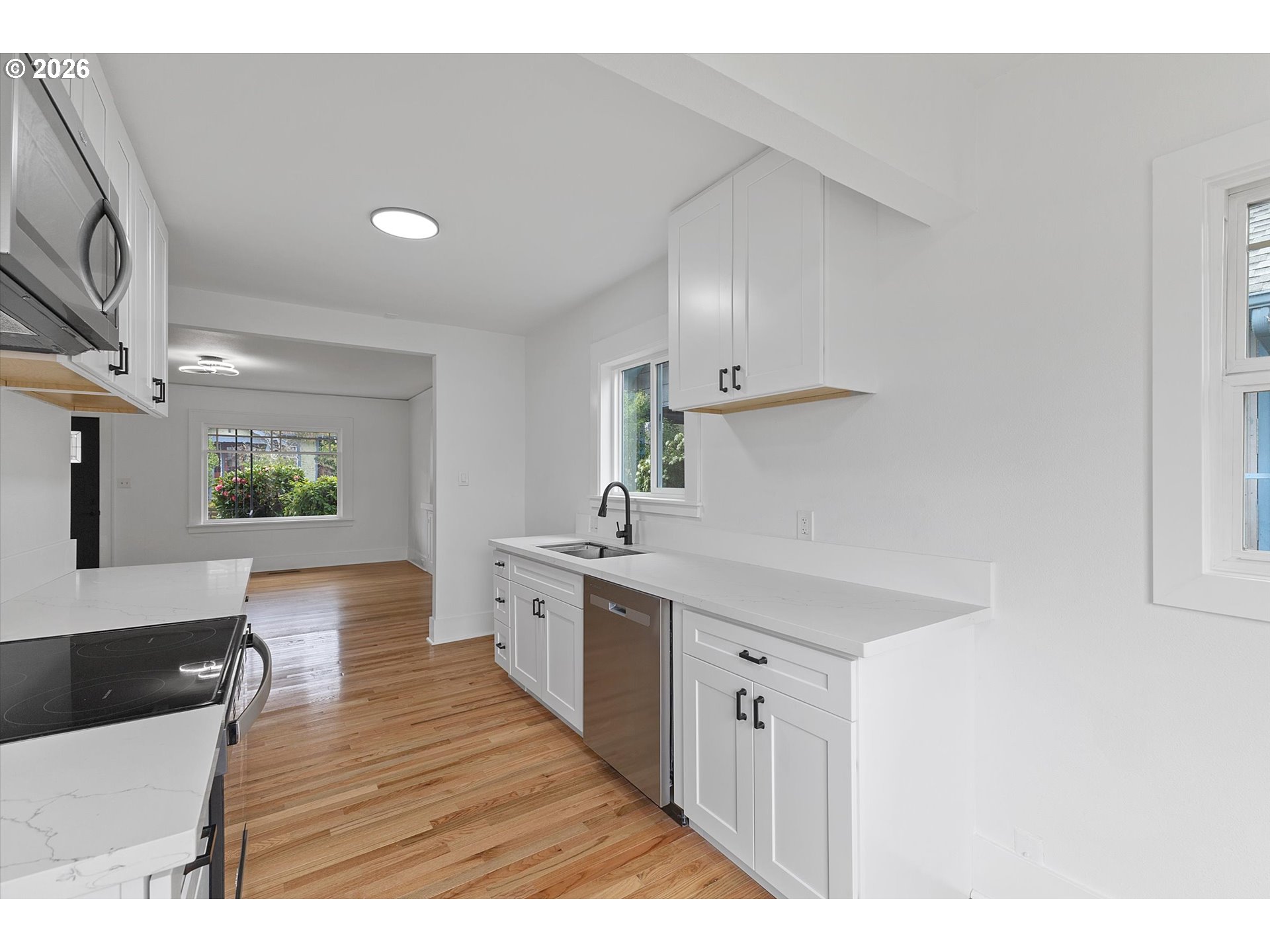 THE WAIT IS OVER. Welcome to this beautifully updated bungalow nestled in Portland’s highly desired Piedmont neighborhood. Step onto the inviting front porch and into a home that blends timeless details with thoughtful updates. Walking thru the main door, you will see the beautifully refinished hardwood floors, fresh paint, and large windows that fill the space with natural light. The kitchen has been tastefully updated with brand-new cabinets, quartz countertops, and stainless-steel appliances. The main level features a completed, updated full bathroom and two large bedrooms. Downstairs, you will find a spacious master bedroom with double closets and huge walk-in shower. Also, A cozy, dreamy family room serves as a versatile, comfortable retreat designed for both private relaxation and high-energy entertainment. Don’t miss a fully finished upper-level space ideal for additional bedroom, home office, recreational "man cave," or extra storage. Step outside to a fully fenced yard with gated entry, a covered patio, and a green backyard space waiting for your creative hands. This prime location places you just a few minutes from coffee shops, dining, parks, and groceries, making it a walker’s paradise.