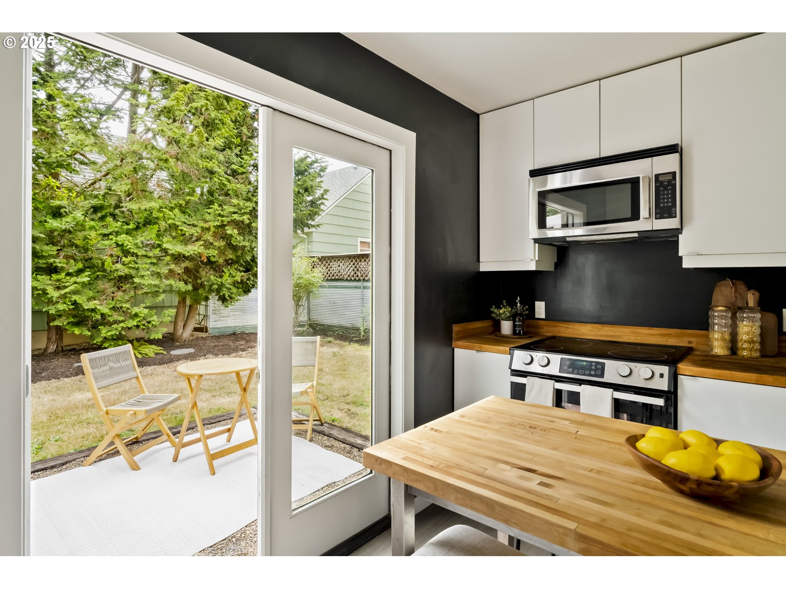 This home has been my happy place — and it might just be yours too. From the moment you walk through the sunny yellow door, you’ll feel the warmth and style this space offers. Inside, the living room is bright and cozy with large picture windows, a painted brick fireplace, and plenty of room to gather. The flow opens seamlessly into the kitchen, where sleek white cabinetry, butcher block counters, and a bold accent wall create a striking modern design. French doors invite in natural light and open to the backyard, making indoor-outdoor living effortless. One of my favorite features is the original built-in storage in the hallway. Thoughtfully designed and full of character, it not only nods to the home’s mid-century roots but also adds practical convenience for today’s living. These timeless details make the home feel both unique and functional. The bedroom windows frame greenery outside, making each room feel private and connected to nature. Out back, you’ll find a large private yard with room to garden, play, or simply relax under the sun. The updated design, thoughtful details, and easy flow make every part of this home a joy to live in. Whether you’re starting fresh, downsizing, or simply looking for a place that feels special, this mid-century gem is ready to welcome you home.