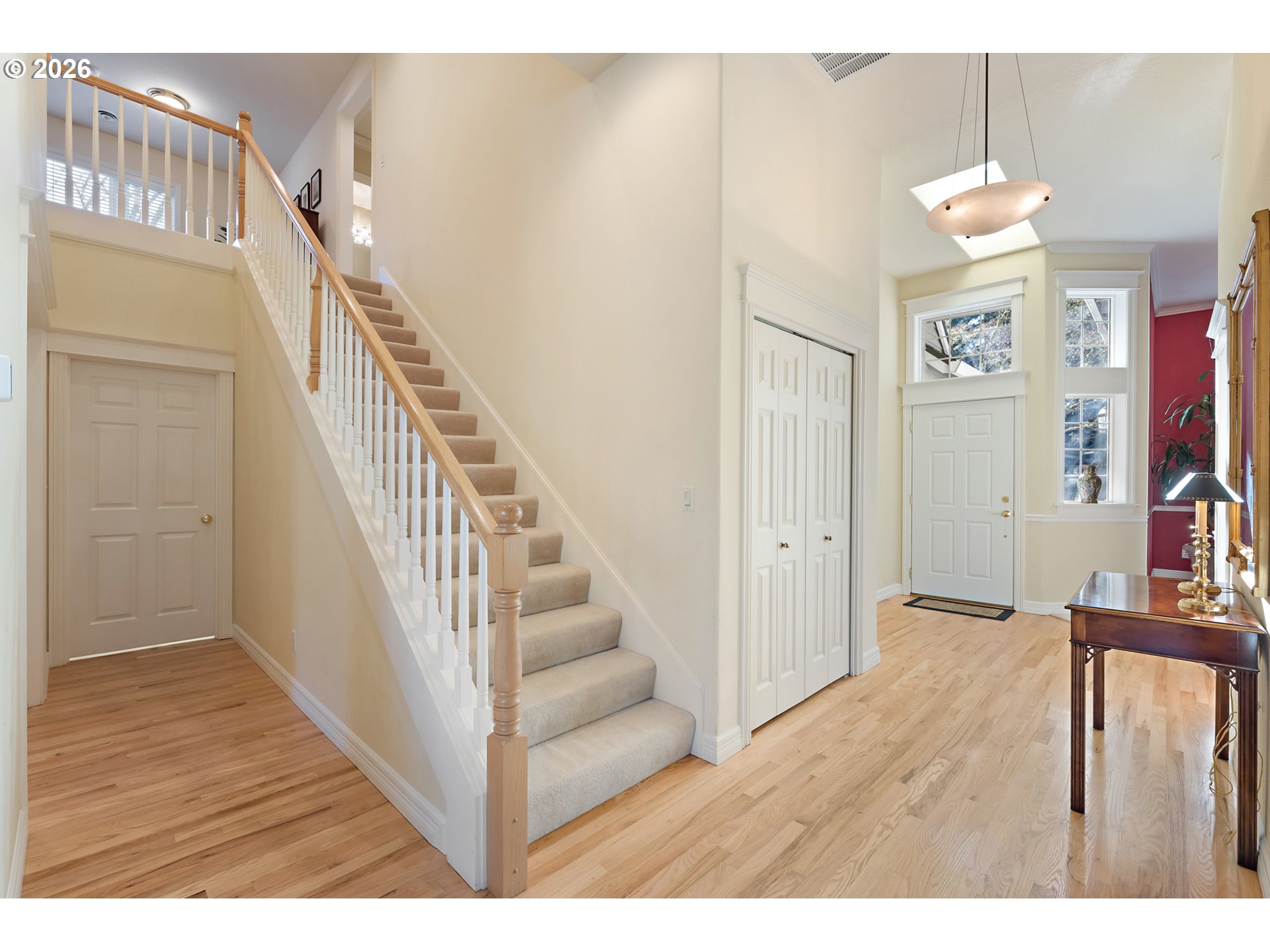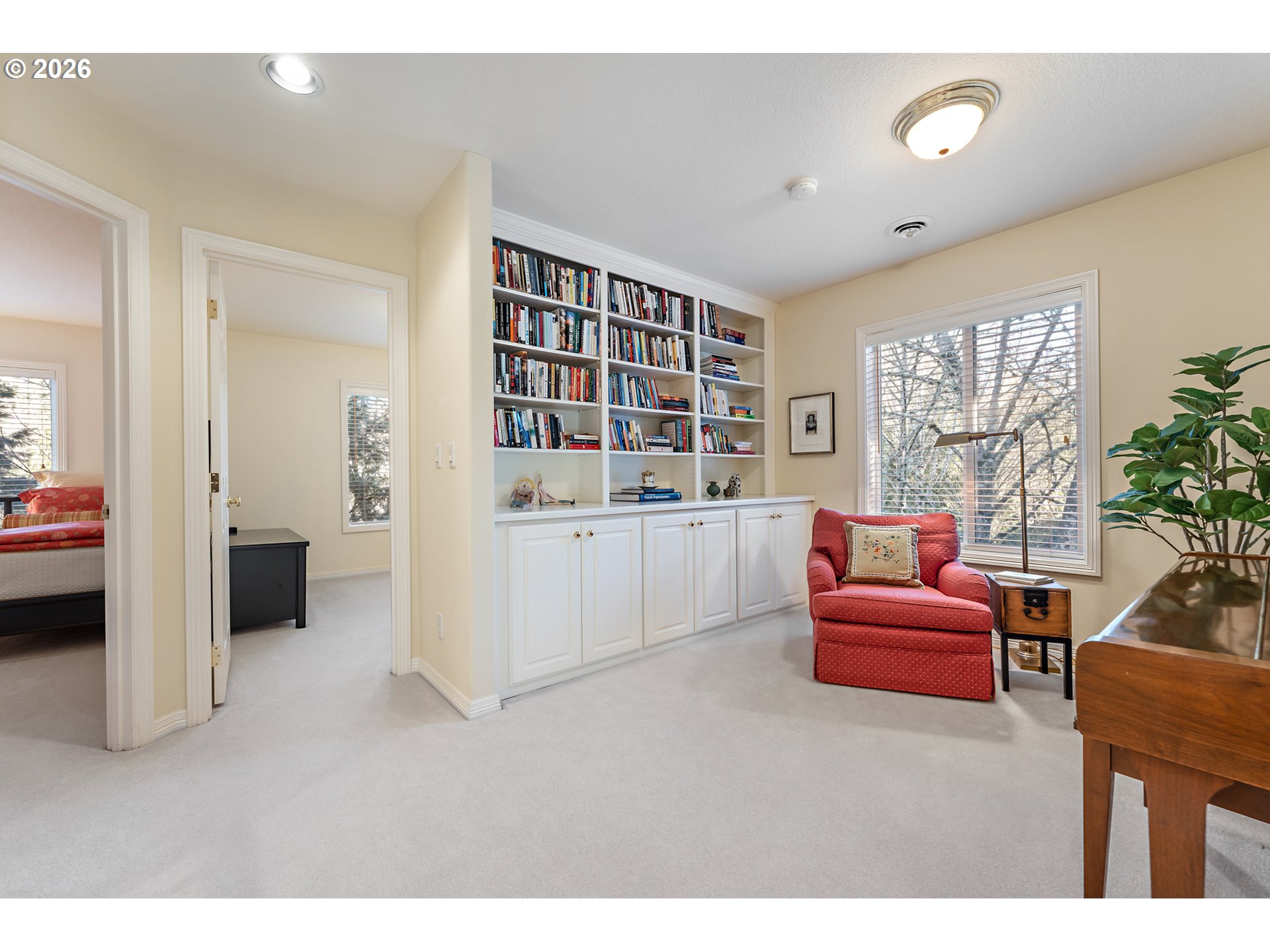 If you’re seeking privacy and convenience, look no further than this perfectly located Maplewood/Garden Home retreat. From the moment you step inside, you’ll feel a sense of peace and serenity as lush natural views greet you from every corner. Loved & meticulously maintained by the original owner, with elegant finishes & timeless features like soaring ceilings, refinished hardwood floors, and a flowing, circular layout that makes both everyday living and entertaining a breeze. Coveted main-level living includes a spectacular living room with a breathtaking wall of windows, an open chef’s kitchen, multiple dining areas, and a tranquil primary suite tucked away from the common spaces. A flexible upper level includes two large bedrooms, home office (or possible 4th bedroom), and an inspiring loft area, perfect for curling up with your favorite book. Dine, unwind, or entertain on the spacious wraparound deck while leaving yard work behind. A peaceful natural greenspace replaces the traditional backyard, and front yard maintenance is covered by a small, well-managed HOA. Newer roof & skylights, water heater, and refinished hardwoods. Sought-after SW PDX neighborhood, just moments to Multnomah Village restaurants and boutiques, Washington Square, schools, parks, and commuter routes. [Home Energy Score = 4. HES Report at https://rpt.greenbuildingregistry.com/hes/OR10243306]