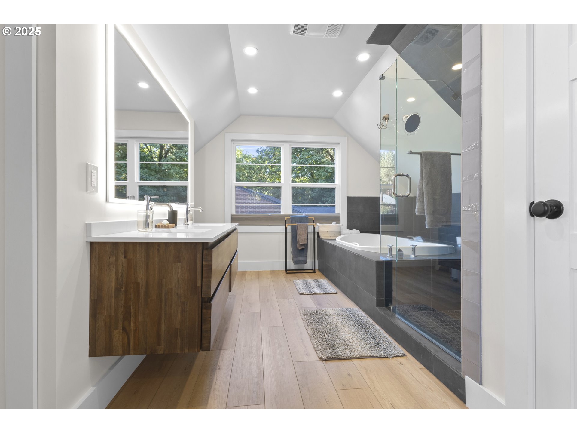Come see this incredible opportunity in the desirable Mt. Tabor neighborhood! This charming home features a fully remodeled upstairs ensuite, brand new quartz countertops and flooring in the kitchen and main bathroom, refinished hardwood floors that add warmth and character throughout. Enjoy comfort year-round with a newer HVAC system and AC (approx. 2 years old), along with energy-efficient vinyl windows. Oil tank decommissioned 2019. Fresh interior and exterior paint (2019) gives the home a crisp, modern feel. Newer full size freezer in basement is included in the sale.The basement includes an additional toilet and a separate exterior entrance—perfect for potential ADU conversion (buyer to do due diligence). Roof approx 12 years old. A new 200-amp electrical panel was installed in 2019, offering peace of mind and future expansion options. Located in one of Portland’s most sought-after neighborhoods, this home blends timeless charm with thoughtful updates. Don’t miss out on this turn-key Mt. Tabor gem! [Home Energy Score = 4. HES Report at https://rpt.greenbuildingregistry.com/hes/OR10108237]