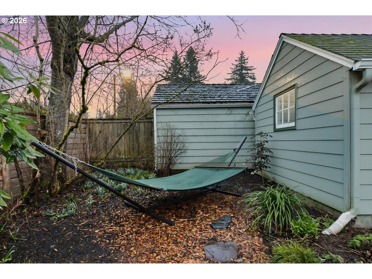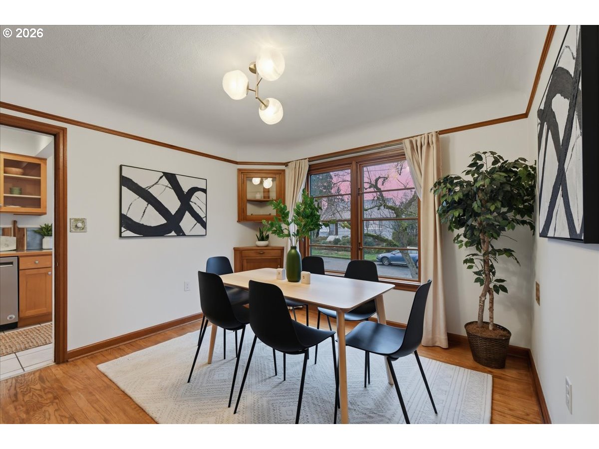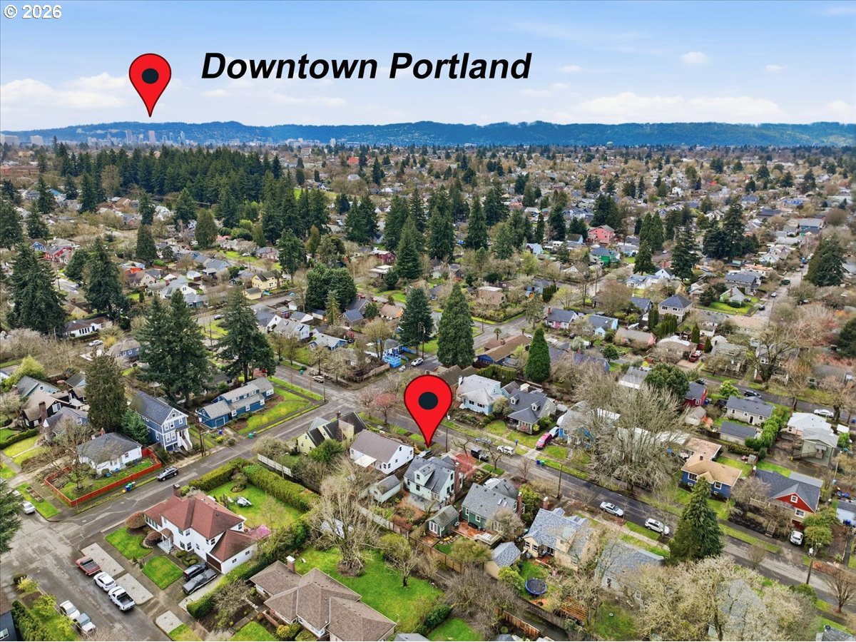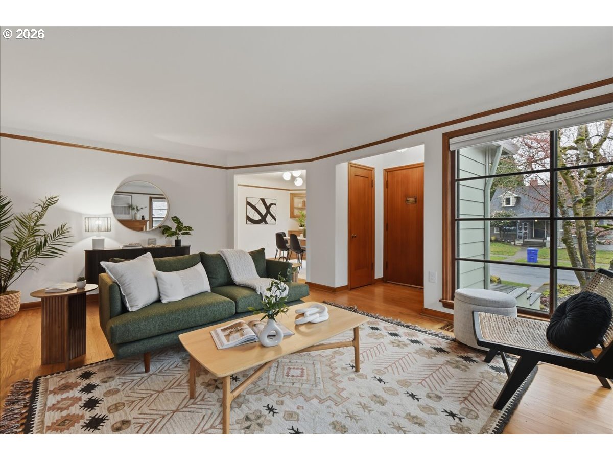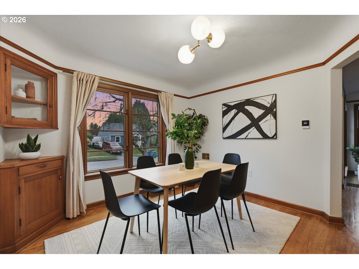 On a quiet, tree-lined street where neighbors gather for summer block parties and evening dog walks, this darling bungalow feels like something out of a storybook. Garden paths guide you to a covered porch and a cheerful purple front door—an invitation into a home filled with warmth, light, and timeless charm. Inside, sunlight pours through lovingly restored windows, dancing across original hardwood floors. The living room fireplace anchors cozy evenings, while crown and picture molding whisper of the home’s history. The dining room built-ins are ready for dinner parties and holiday traditions beneath softly glowing designer lighting.The kitchen is bright and welcoming, with stainless appliances and a sweet eating nook made for morning coffee rituals. Two bedrooms on the main offer flexibility and comfort—one opening directly to the backyard deck for easy indoor-outdoor living. Upstairs, the private primary suite is a peaceful retreat with a walk-in closet and heated bathroom floors that make chilly Portland mornings feel luxurious. The backyard is beautifully landscaped and designed for connection—weekend barbecues, garden afternoons, or unwinding under the stars. A detached garage and long driveway provide easy parking. Thoughtful updates (newer AC/electrical panel/decks/exterior paint & gutters/appliances) throughout ensure comfort and peace of mind. Just blocks from Alberta’s cafés and galleries, Fernhill and Alberta Park’s open green space, and the beloved eateries of the Dekum Triangle and Killingsworth, this home offers not just a place to live — but a lifestyle to savor. [Home Energy Score = 3. HES Report at https://rpt.greenbuildingregistry.com/hes/OR10245135]