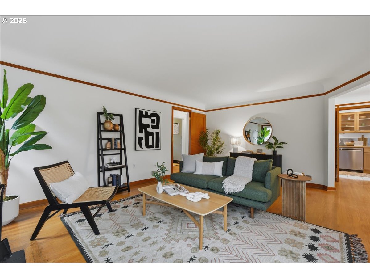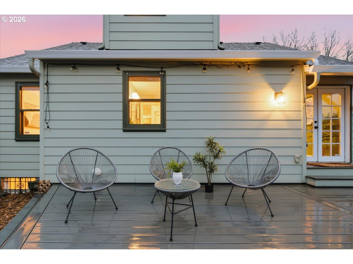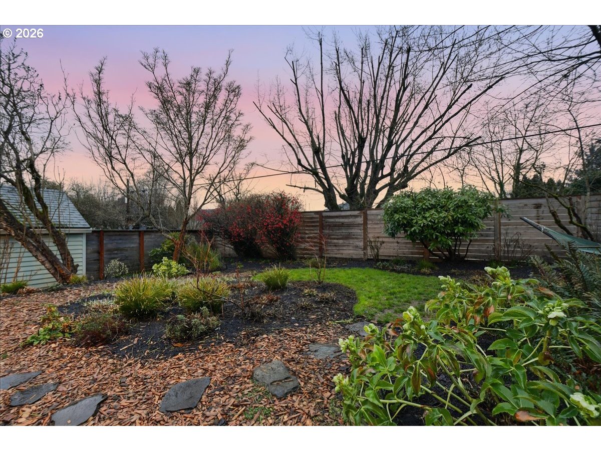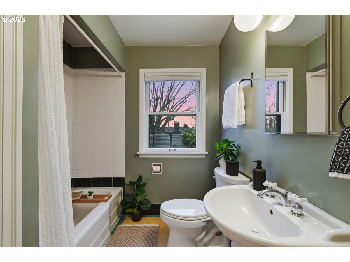 On a quiet, tree-lined street where neighbors gather for summer block parties and evening dog walks, this darling bungalow feels like something out of a storybook. Garden paths guide you to a covered porch and a cheerful purple front door—an invitation into a home filled with warmth, light, and timeless charm. Inside, sunlight pours through lovingly restored windows, dancing across original hardwood floors. The living room fireplace anchors cozy evenings, while crown and picture molding whisper of the home’s history. The dining room built-ins are ready for dinner parties and holiday traditions beneath softly glowing designer lighting.The kitchen is bright and welcoming, with stainless appliances and a sweet eating nook made for morning coffee rituals. Two bedrooms on the main offer flexibility and comfort—one opening directly to the backyard deck for easy indoor-outdoor living. Upstairs, the private primary suite is a peaceful retreat with a walk-in closet and heated bathroom floors that make chilly Portland mornings feel luxurious. The backyard is beautifully landscaped and designed for connection—weekend barbecues, garden afternoons, or unwinding under the stars. A detached garage and long driveway provide easy parking. Thoughtful updates (newer AC/electrical panel/decks/exterior paint & gutters/appliances) throughout ensure comfort and peace of mind. Just blocks from Alberta’s cafés and galleries, Fernhill and Alberta Park’s open green space, and the beloved eateries of the Dekum Triangle and Killingsworth, this home offers not just a place to live — but a lifestyle to savor. [Home Energy Score = 3. HES Report at https://rpt.greenbuildingregistry.com/hes/OR10245135]