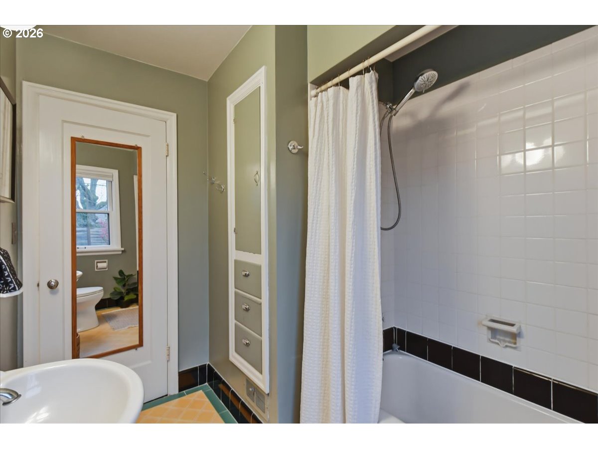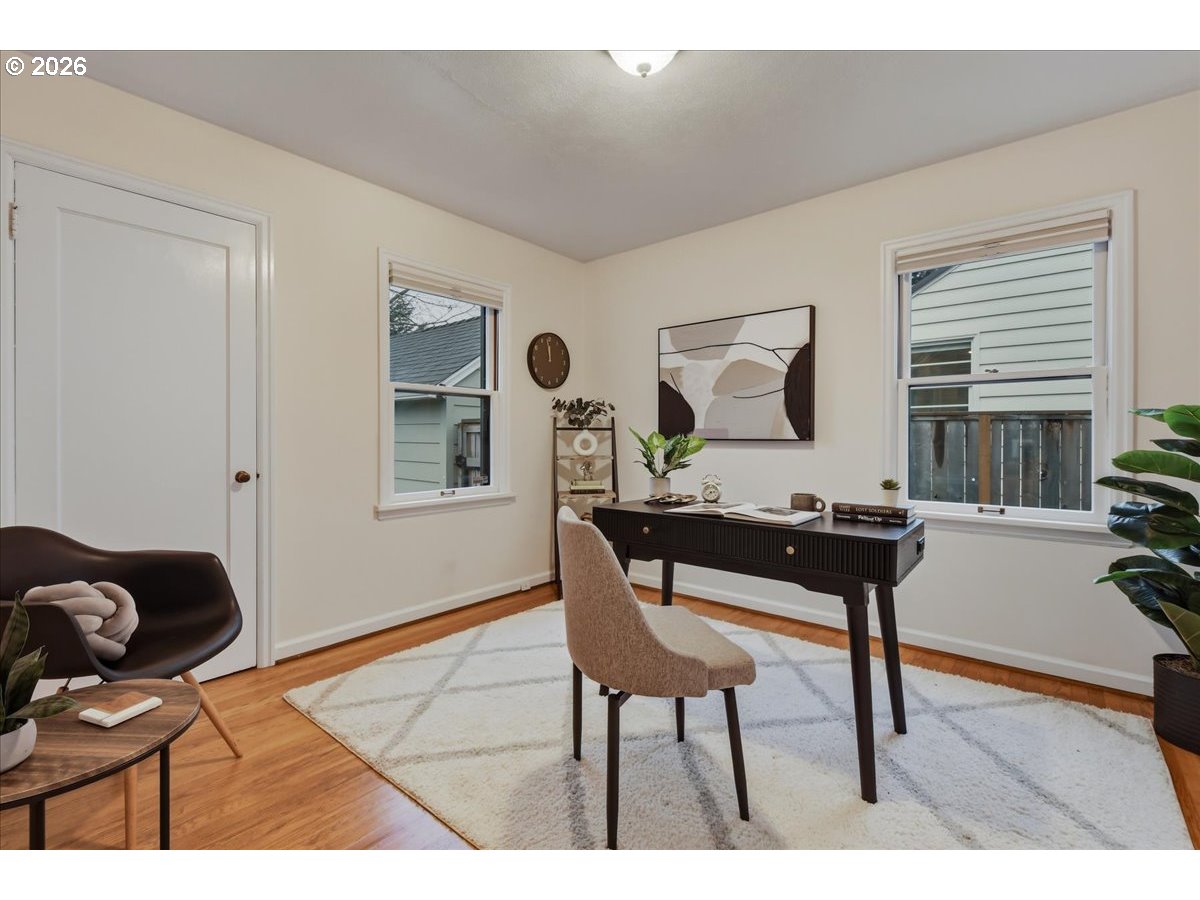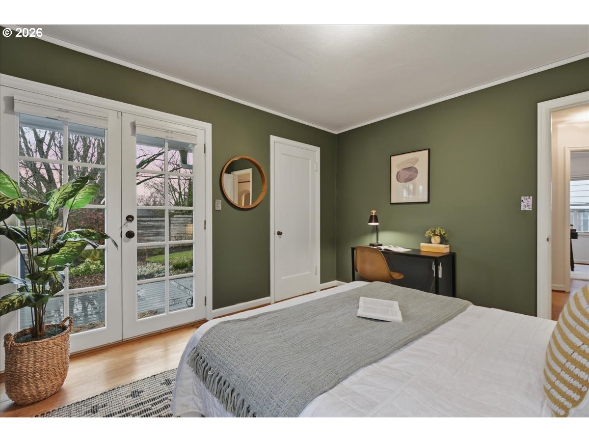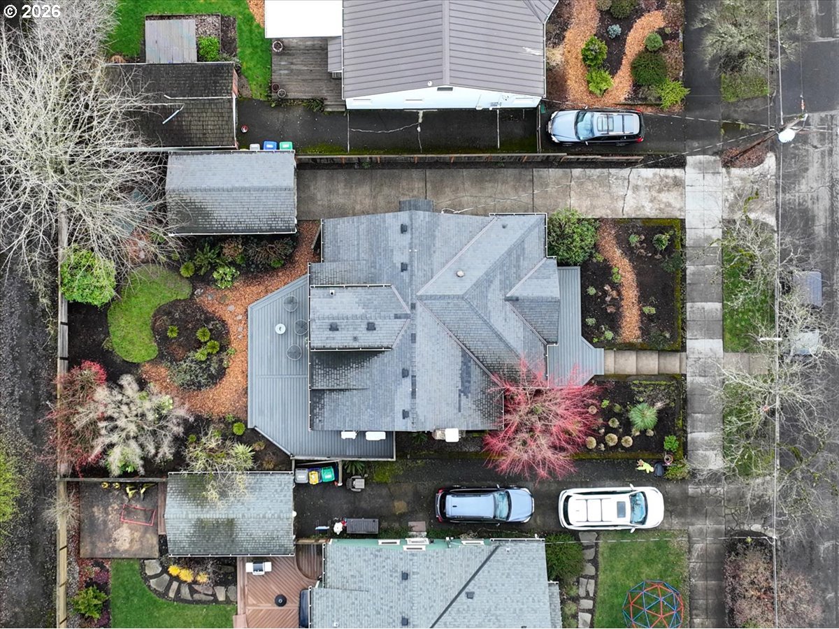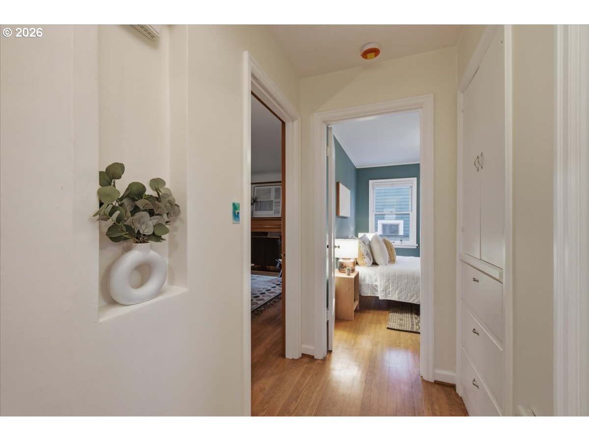On a quiet, tree-lined street where neighbors gather for summer block parties and evening dog walks, this darling bungalow feels like something out of a storybook. Garden paths guide you to a covered porch and a cheerful purple front door—an invitation into a home filled with warmth, light, and timeless charm. Inside, sunlight pours through lovingly restored windows, dancing across original hardwood floors. The living room fireplace anchors cozy evenings, while crown and picture molding whisper of the home’s history. The dining room built-ins are ready for dinner parties and holiday traditions beneath softly glowing designer lighting.The kitchen is bright and welcoming, with stainless appliances and a sweet eating nook made for morning coffee rituals. Two bedrooms on the main offer flexibility and comfort—one opening directly to the backyard deck for easy indoor-outdoor living. Upstairs, the private primary suite is a peaceful retreat with a walk-in closet and heated bathroom floors that make chilly Portland mornings feel luxurious. The backyard is beautifully landscaped and designed for connection—weekend barbecues, garden afternoons, or unwinding under the stars. A detached garage and long driveway provide easy parking. Thoughtful updates (newer AC/electrical panel/decks/exterior paint & gutters/appliances) throughout ensure comfort and peace of mind. Just blocks from Alberta’s cafés and galleries, Fernhill and Alberta Park’s open green space, and the beloved eateries of the Dekum Triangle and Killingsworth, this home offers not just a place to live — but a lifestyle to savor. [Home Energy Score = 3. HES Report at https://rpt.greenbuildingregistry.com/hes/OR10245135]