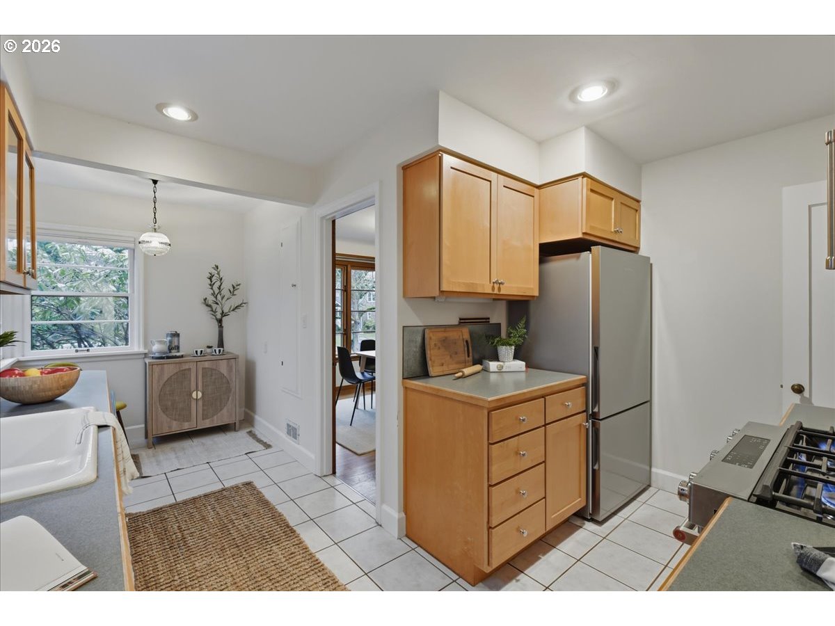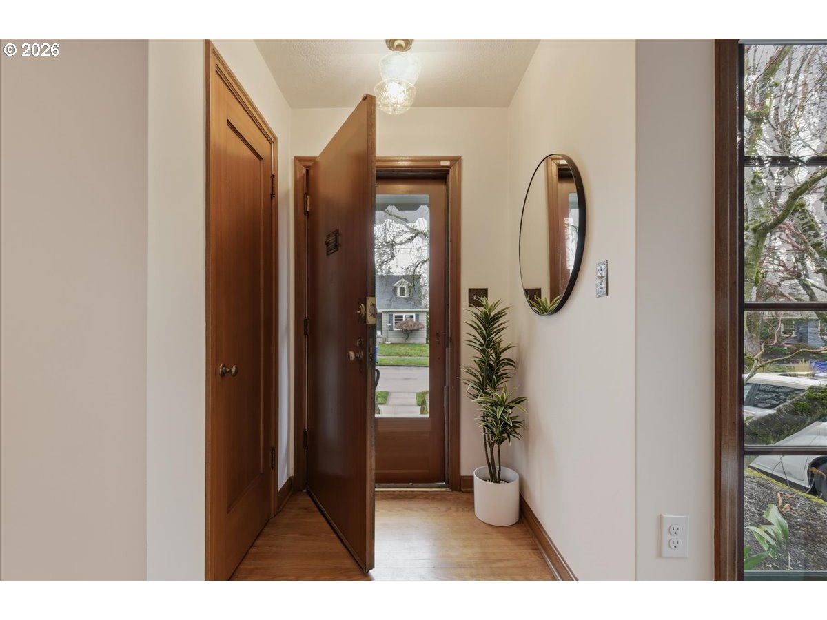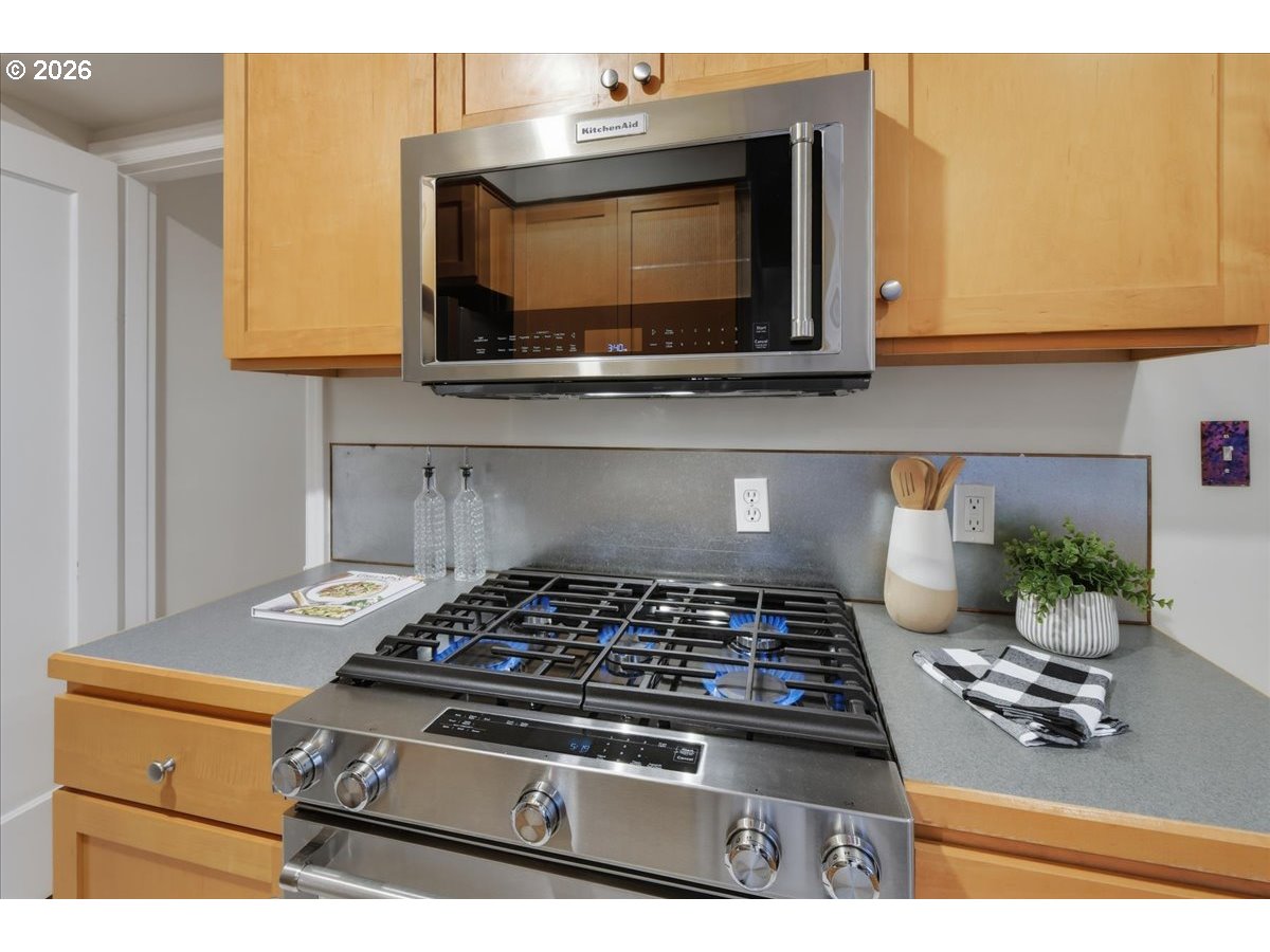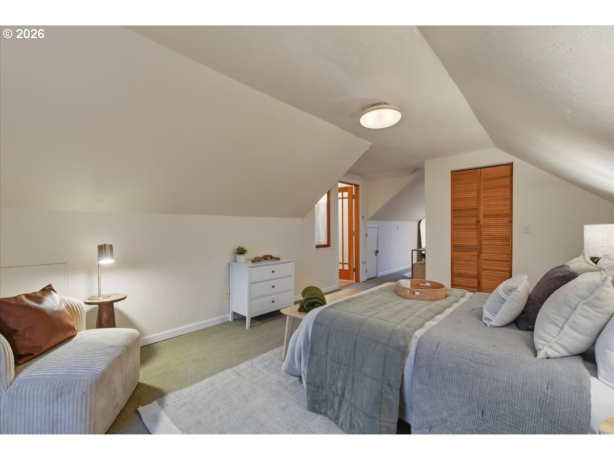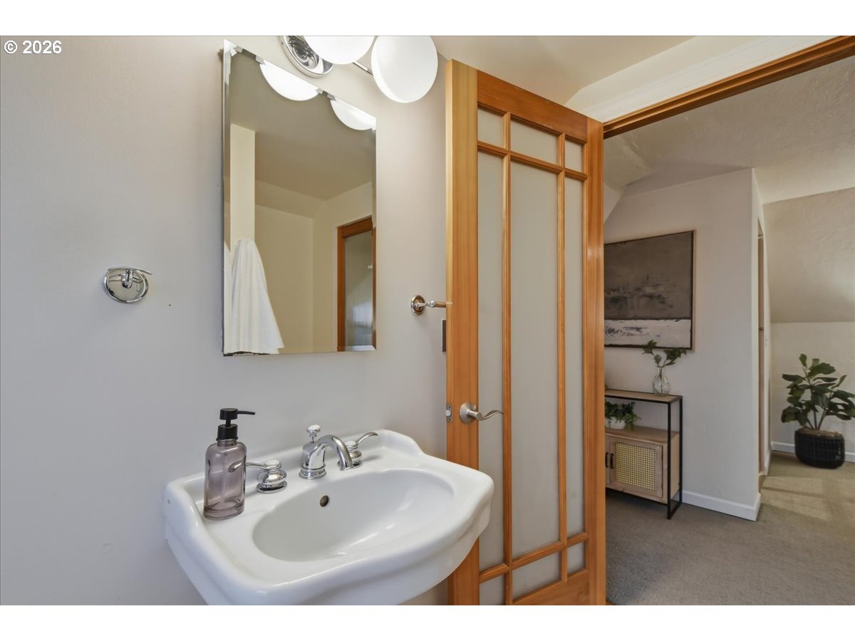 On a quiet, tree-lined street where neighbors gather for summer block parties and evening dog walks, this darling bungalow feels like something out of a storybook. Garden paths guide you to a covered porch and a cheerful purple front door—an invitation into a home filled with warmth, light, and timeless charm. Inside, sunlight pours through lovingly restored windows, dancing across original hardwood floors. The living room fireplace anchors cozy evenings, while crown and picture molding whisper of the home’s history. The dining room built-ins are ready for dinner parties and holiday traditions beneath softly glowing designer lighting.The kitchen is bright and welcoming, with stainless appliances and a sweet eating nook made for morning coffee rituals. Two bedrooms on the main offer flexibility and comfort—one opening directly to the backyard deck for easy indoor-outdoor living. Upstairs, the private primary suite is a peaceful retreat with a walk-in closet and heated bathroom floors that make chilly Portland mornings feel luxurious. The backyard is beautifully landscaped and designed for connection—weekend barbecues, garden afternoons, or unwinding under the stars. A detached garage and long driveway provide easy parking. Thoughtful updates (newer AC/electrical panel/decks/exterior paint & gutters/appliances) throughout ensure comfort and peace of mind. Just blocks from Alberta’s cafés and galleries, Fernhill and Alberta Park’s open green space, and the beloved eateries of the Dekum Triangle and Killingsworth, this home offers not just a place to live — but a lifestyle to savor. [Home Energy Score = 3. HES Report at https://rpt.greenbuildingregistry.com/hes/OR10245135]