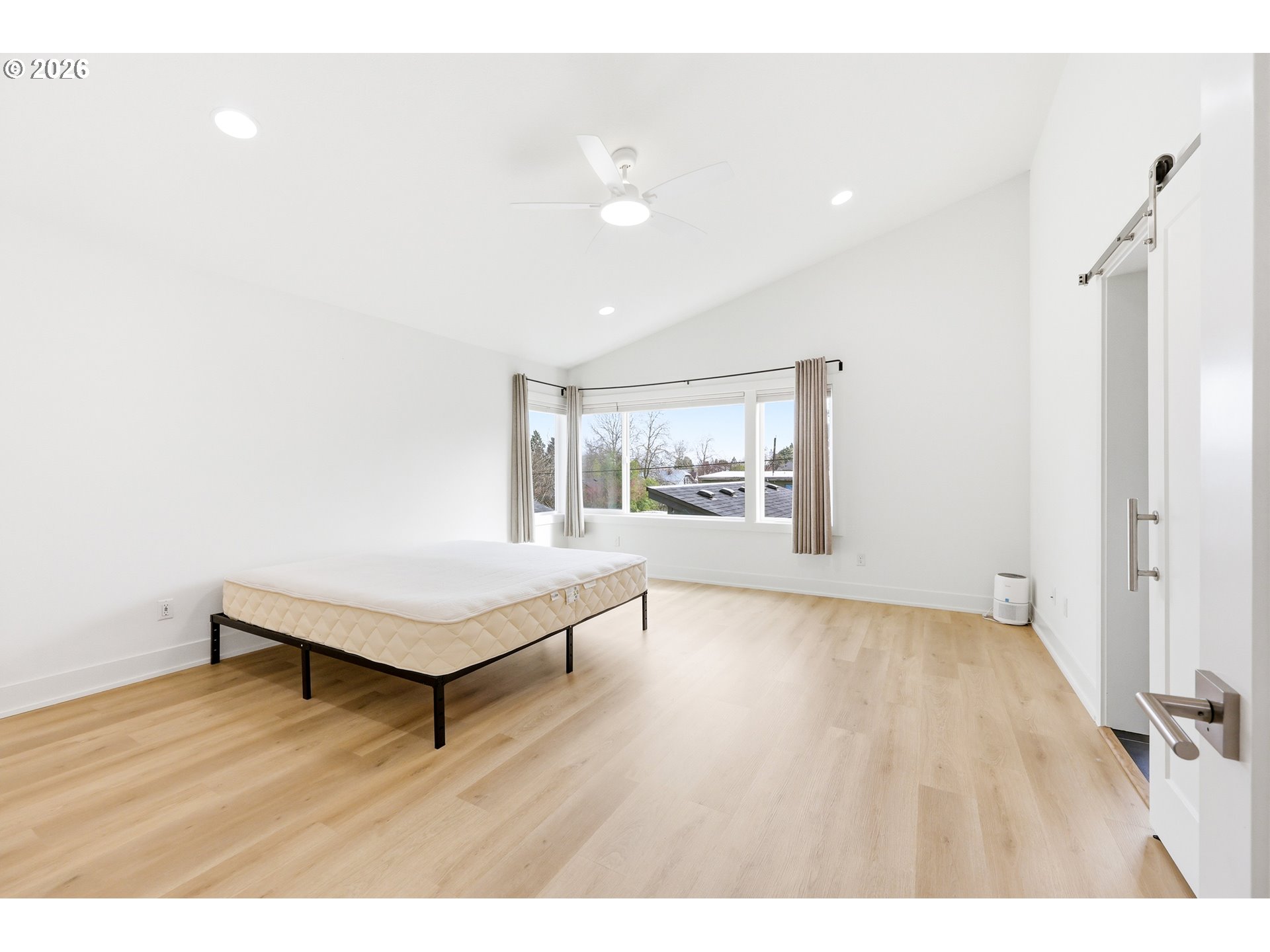 Built in 2020, this Earth Advantage certified home offers 4 bedrooms, 3 baths, and 2,267 square ft of modern design and energy-efficient living in one of Northeast Portland's most vibrant and convenient neighborhoods. Detached Garage with level 2 EV charger. Clean lines, rich hardwood floors, soaring ceilings, and custom built-ins carry throughout the open floor plan. The modern kitchen features stainless appliances, gas cooking, a center island, and slab quartz countertops. The spacious primary suite includes a double-sink vanity, soaking tub, tiled shower, and generous closet. High-efficiency systems and quality craftsmanship deliver lasting comfort and peace of mind. Ideally located short distance to parks, restaurants, shops, and schools, with easy access to everyday conveniences.
