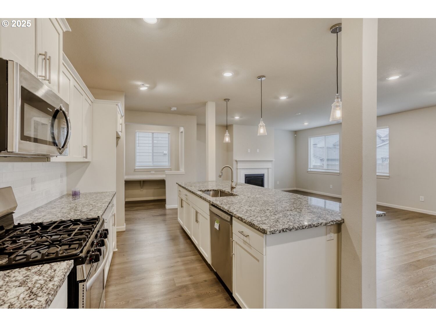 Well-located home in an established Gresham neighborhood with convenient access to shopping, dining, parks, schools, and major commuter routes. The functional floor plan offers comfortable living spaces with good natural light and flexible room configurations. The open-concept kitchen and living room create an inviting main level, featuring a beautiful kitchen with ample storage, a cozy fireplace for those chilly PNW nights, and a built-in desk just off the living area—perfect for work or study. A half bath is conveniently located on the main floor. Upstairs, the primary bedroom features an ensuite bath with soaking tub and separate shower. Two additional bedrooms share a Jack-and-Jill bathroom with hall access. Situated on a manageable lot with outdoor space, offering a comfortable setting close to schools and everyday conveniences.