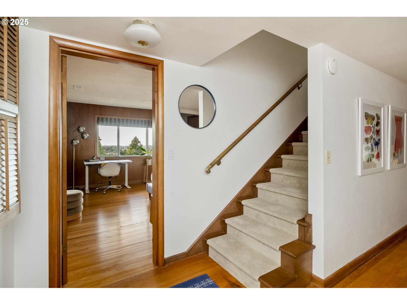(503) 893-8874Mid-Century Made Modern! With a view that transcends any era, spanning from Downtown Portland to Mt. St. Helens. All the right bits remain from this 1961 Mt. Tabor Classic, including rich hardwood floors, wood cabinetry, huge view windows, tongue & groove vaulted ceilings, 2 fireplaces, indoor grill and built-ins. Fast forward to 2025: The home now enjoys a new roof, gutters, furnace, air conditioning, insulation, interior/exterior paint, chimney work, new plumbing, electrical panel and wiring improvements. Both bathrooms have been remodeled with quartz counters, fresh tile, and high end fixtures. The kitchen remod has been brilliantly executed, maintaining the mid-century feel, while showing off its stunning quartz counters, tile flooring, backsplash, new appliances and Rejuvenation hardware. Multiple sliding doors from living & dining lead to a full length upper level deck with the knock your socks off view. Lower level brings versatility, with flex space suited to be a huge primary suite, bathed in those same territorial views, or the coolest of entertaining hang out spaces. Drop down to the oasis style backyard retreat, where the rest of the world melts away. Lots of off street parking, attached garage, and workshop space downstairs to boot. Max, close. Transit, close. Tabor, Montavilla, it's all right at hand. Glencoe Elementary and Tabor Middle feed into Franklin High School.
