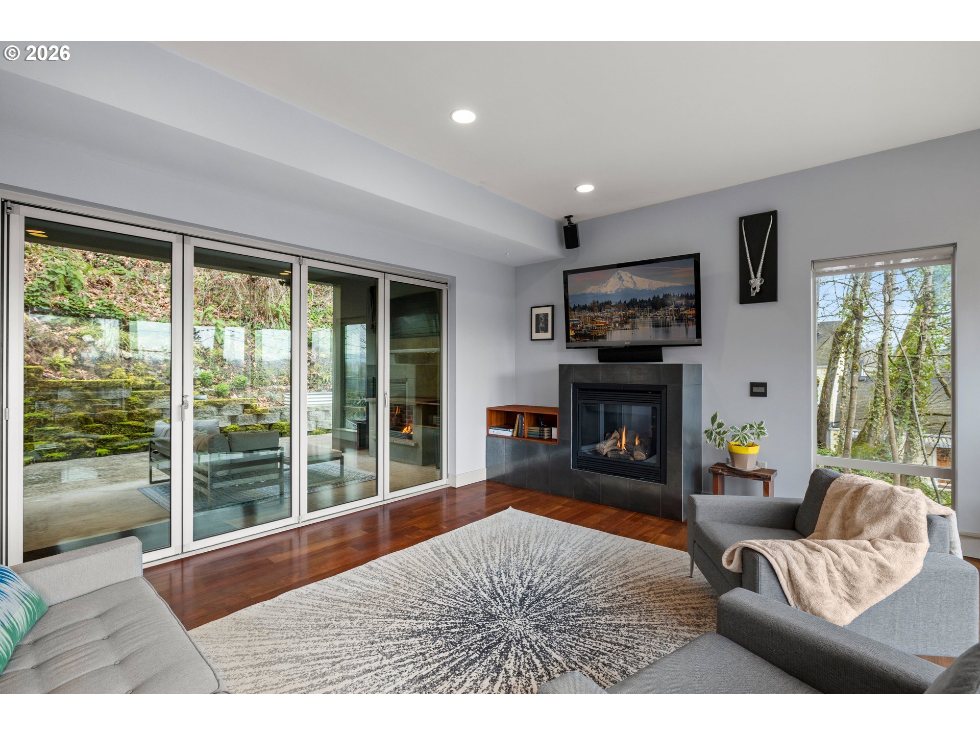 Wake up to the Sunrise over Mt Hood and enjoy all that John's Landing has to offer from this Modern Open-Concept jewel. 3 Level Elevator. New HVAC with top of the line Air Filtration System. Custom Built Loft in Over-Sized Garage serves as Studio/Work Space. Custom Glass "Nana-Wall" and Outdoor Gas Fireplace allow Covered Patio to be a year round feature. Indoor Sauna available, just needs to be re-equipped. Built-in Sound System. Viking Range, Stainless Steel Appliances and large Granite Island make a Gourmet Chef's Kitchen. All Bedrooms have their own full bathroom. Two Blocks to Willamette Park. Lutron Lighting System. Potential to add a Roof Top Patio. This home is absolutely dialed and needs nothing but your personal touches. Open House this weekend, stay tuned for day and time.