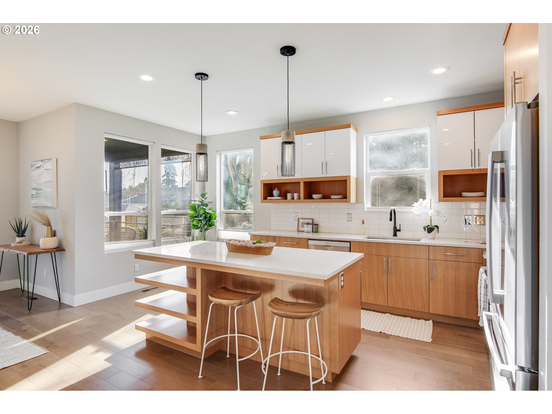 This thoughtfully designed contemporary townhome sits right in the heart of the Dekum neighborhood, where clean lines, natural light, and walkable city living come together. With restaurants, parks, shops, and public transportation just blocks away, this is an ideal home base for those who love being close to it all.Inside, the open floor plan is bright and inviting, with high ceilings, large windows, and spacious rooms throughout. The modern kitchen features sleek cabinetry, quartz counters, stainless appliances, and open shelving, along with a beautifully designed butler’s pantry complete with a wine cooler—perfect for entertaining.The layout offers flexibility for work-from-home, guests, or multi-generational living. The lower level includes a private bedroom and bath with separate garage access, making it an ideal guest suite or potential Airbnb setup. Walk-in closets and smart storage add to the home’s functionality.Outdoor living is easy here, with both patio and deck space for relaxing or hosting. Clean, modern design meets comfort and convenience in one of NE Portland’s most beloved neighborhoods.
