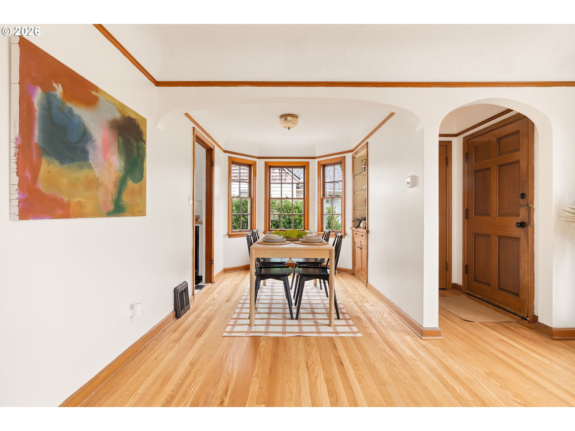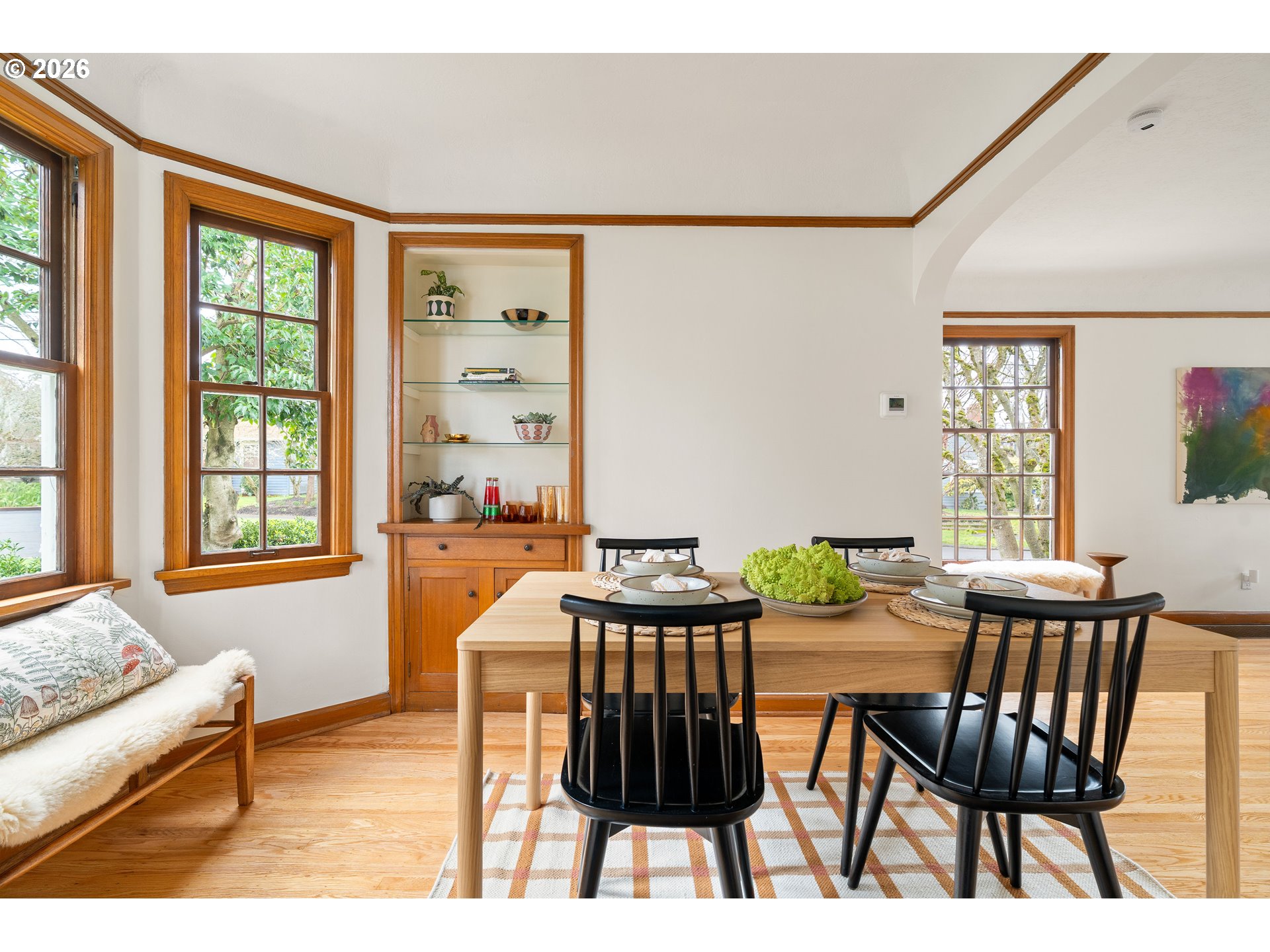 Concordia Charmer! Prepare to fall in love with this delightful 1941 Minimal Traditional nestled in the heart of the highly sought-after Concordia neighborhood. The spacious living room and dedicated dining room complete with charming built-ins and abundant natural light create an immediate sense of comfort and welcome. The main level offers easy living with a well-appointed bedroom and full bath. Upstairs, you’ll find two generously sized bedrooms and a versatile landing area perfect for a play nook, reading corner, or work-from-home setup. The finished basement expands your possibilities even further, ideal for a media room, home gym, creative studio, or additional workspace. Step outside to a covered back patio designed for year-round entertaining. A large two-car garage, accessible from the alley, provides excellent storage, hobby space, or parking. Nearby parks, restaurants, UO Concordia Campus and a Bike Score of 95, this location is a dream! [Home Energy Score = 2. HES Report at https://rpt.greenbuildingregistry.com/hes/OR10243784]