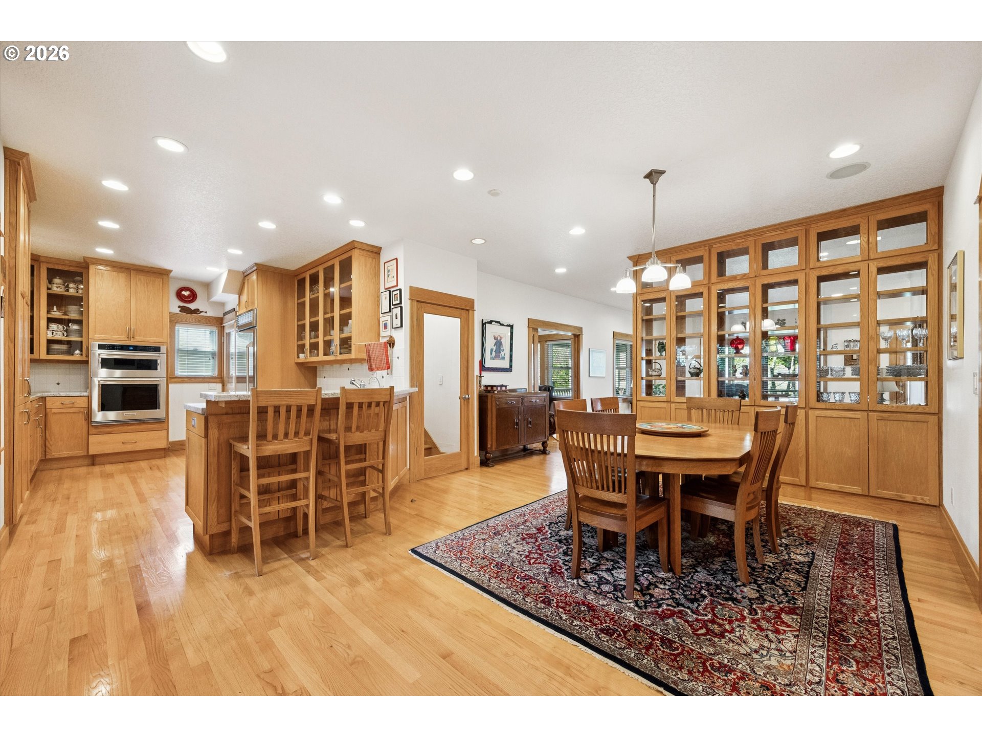 (503) 893-8874This home blends the best of 2000 construction with old world–inspired charm, set on a quiet, no-through-traffic street. Thoughtfully designed, it offers exceptional versatility, privacy, and high-end finishes throughout. A welcoming wraparound front porch and custom leaded glass entry door set the tone. The main level features hardwood floors, open living and dining spaces with floor-to-ceiling display cabinetry, and a den with glass pocket doors and a custom Ann Sacks fireplace hearth. True main-level living includes a primary suite, laundry room, and minimal-step access from the oversized garage. The kitchen offers abundant cabinetry and pantry space, slab granite countertops, high-end stainless appliances, and a concealed DishDrawer dishwasher. The primary suite is a private retreat with a screened porch, spacious walk-in closet, and bath featuring Pratt + Larson tile, heated floors, double vanity, and walk-in shower. A laundry chute connects directly to the main-level laundry room. Upstairs offers expansive living spaces, including a large media/playroom, office with territorial and OHSU views, an additional bedroom with full spa bath, and a beautifully finished suite with separate entrance for flexible use. The lower level, with interior and exterior access, provides additional private living space with a bedroom, full bath, kitchenette, and rec area—ideal for guests, extended living, or quiet retreat. Designed for flexibility, these spaces can live independently or seamlessly integrate into the home, with potential for income-producing use as well. Additional highlights include whole-home ethernet, integrated interior/exterior speakers, security system with Ring doorbells, and professionally designed, low-maintenance landscaping for privacy. Generous, usable space throughout—even the upper hallway offers room to live, work, or create. Minutes to Berkeley Park and close to Duniway. Truly one-of-a-kind.