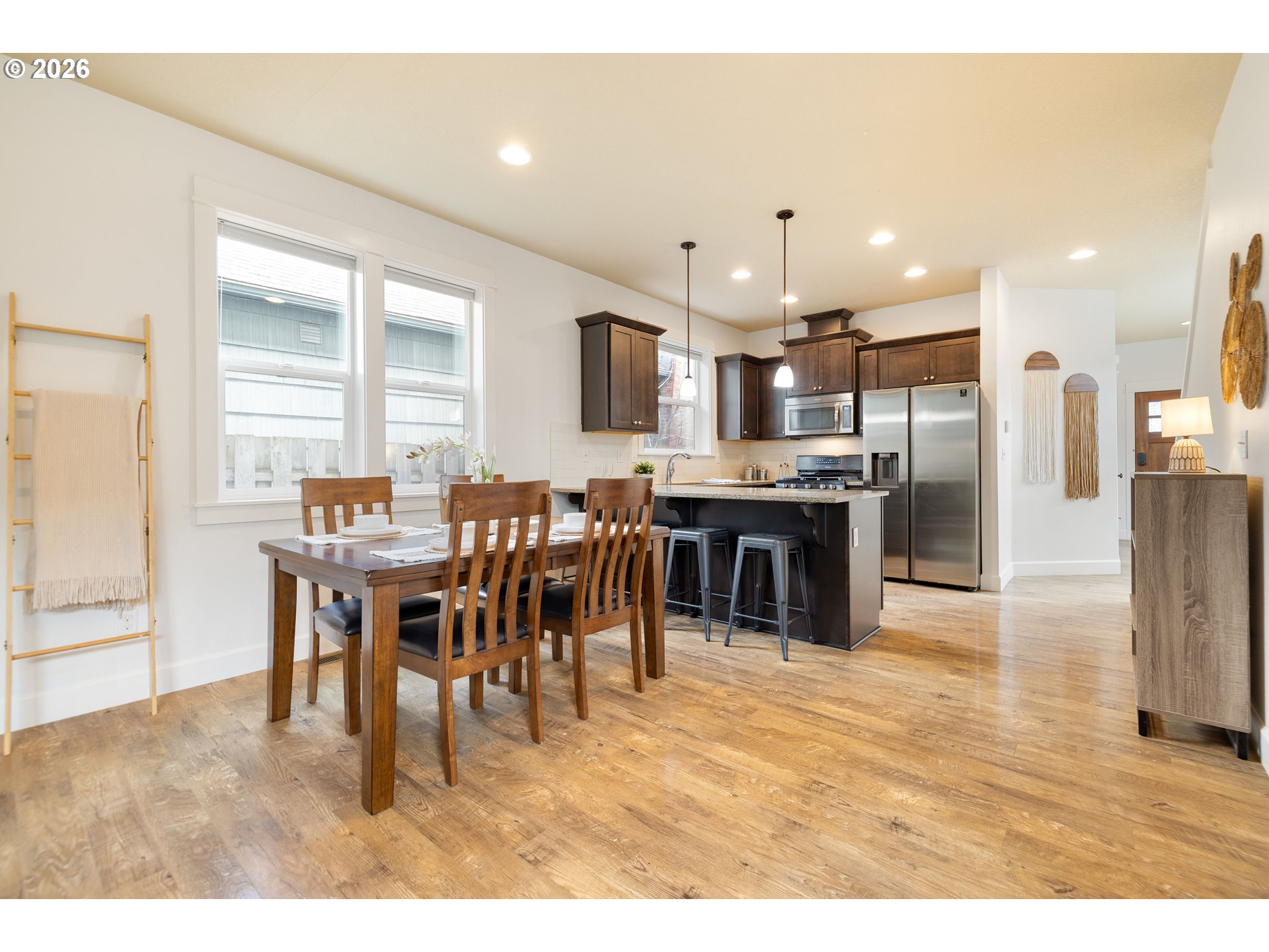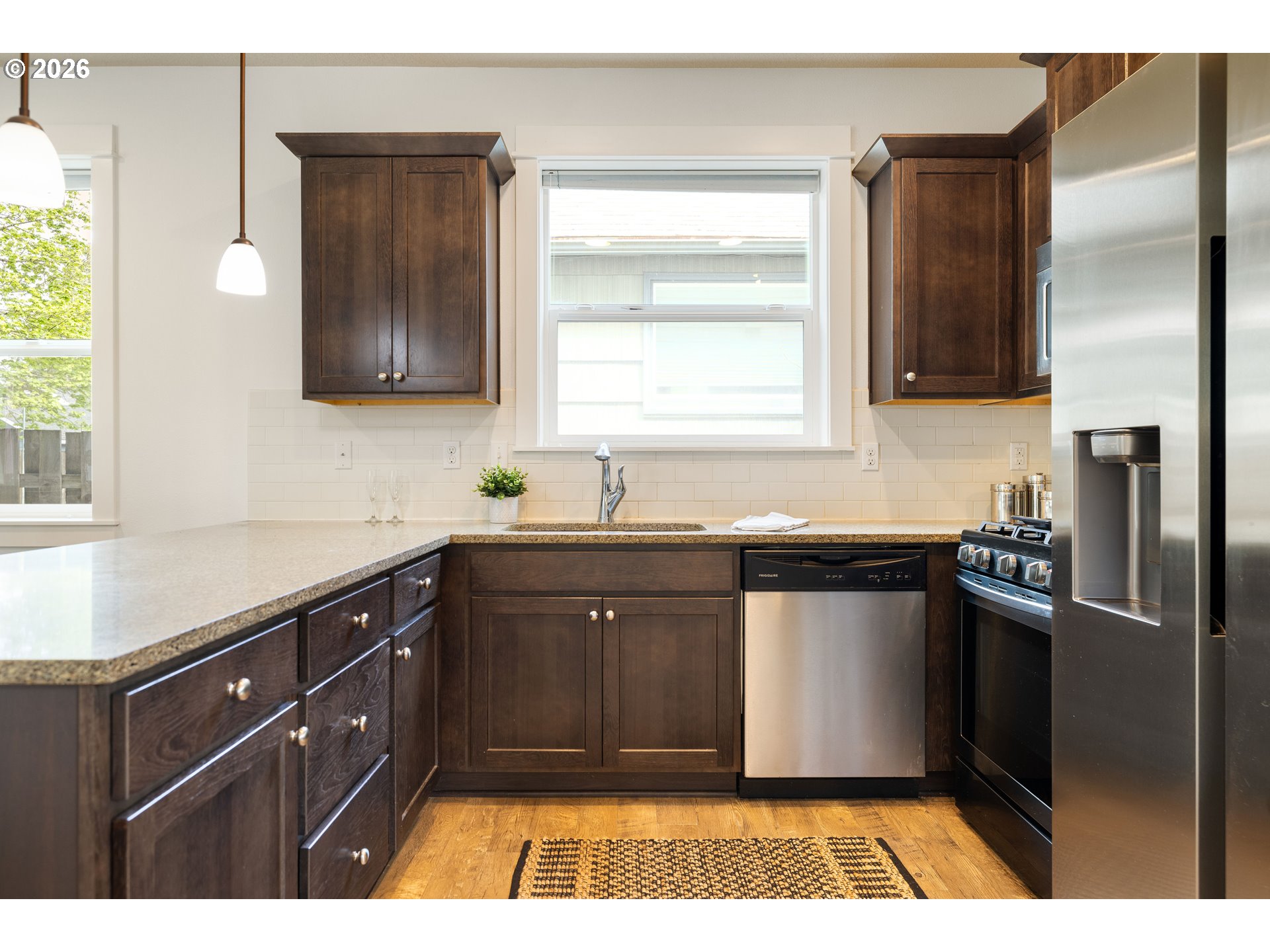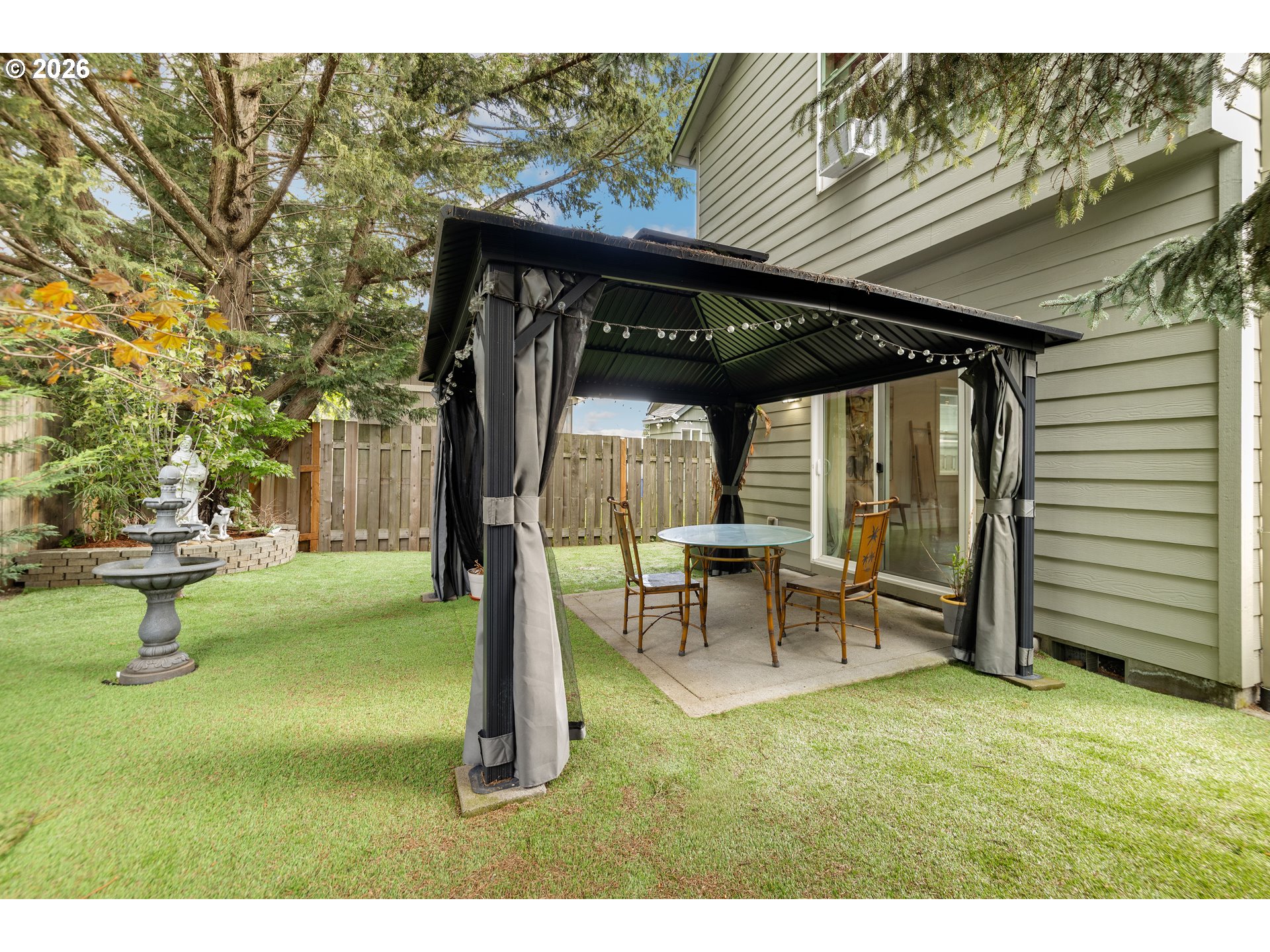 Tucked into the heart of the vibrant Lents neighborhood, this inviting two story home offers the perfect blend of comfort, functionality, and outdoor living. Freshly painted throughout the first floor and in two bedrooms, this 3 bedroom, 2.5 bathroom home is move in ready and waiting for its next owner.Step inside to a warm and welcoming layout featuring a cozy family room anchored by a gas fireplace, perfect for relaxing evenings at home. The kitchen is designed for both everyday living and entertaining with sleek appliances, generous countertop space, and a convenient breakfast bar that opens seamlessly to the living area.Upstairs, the spacious primary suite offers soft carpet underfoot, double closets, and an ensuite bathroom featuring dual vanity sinks and a walk in shower. The two additional bedrooms each include walk in closets, offering excellent storage and flexibility for guests, office space, or hobbies. Each bedroom also comes equipped with its own installed A/C window unit, helping keep everyone comfortable during warmer summer months.Outside, discover your own private backyard retreat. Sellers have thoughtfully enhanced the outdoor space with low maintenance turf, a charming gazebo, and a serene patio area ideal for morning coffee, summer dinners, or simply unwinding after a long day. The widened front driveway with newly poured concrete adds convenience and additional parking flexibility.Conveniently located near parks, schools, shopping, dining, and easy commuter access, this home combines peaceful living with city convenience. Don’t miss your opportunity to enjoy this thoughtfully updated Portland home.