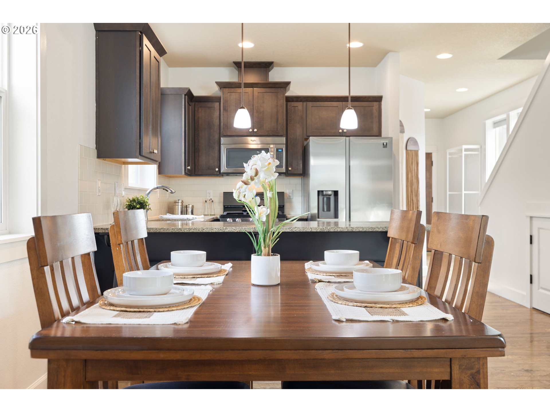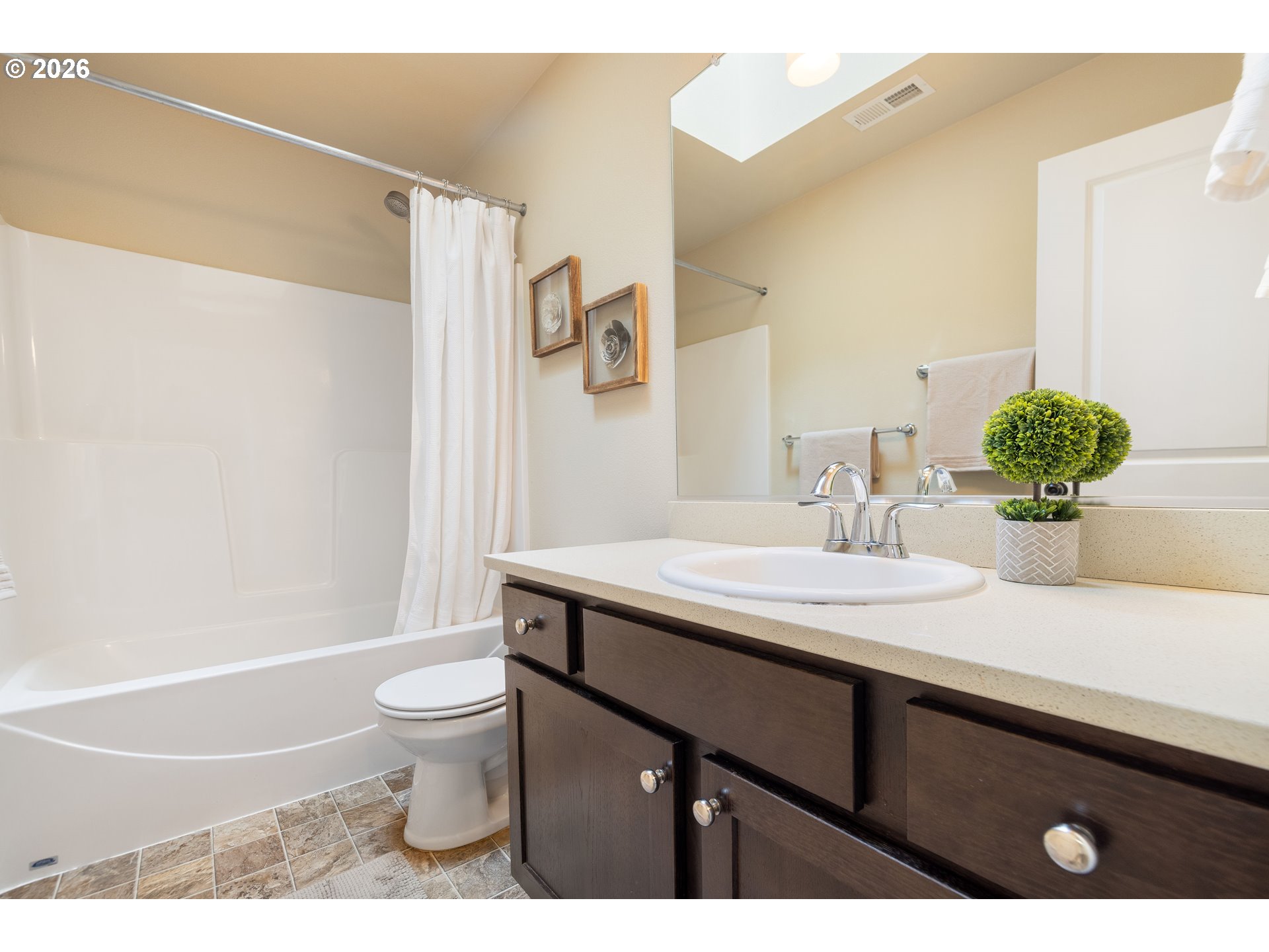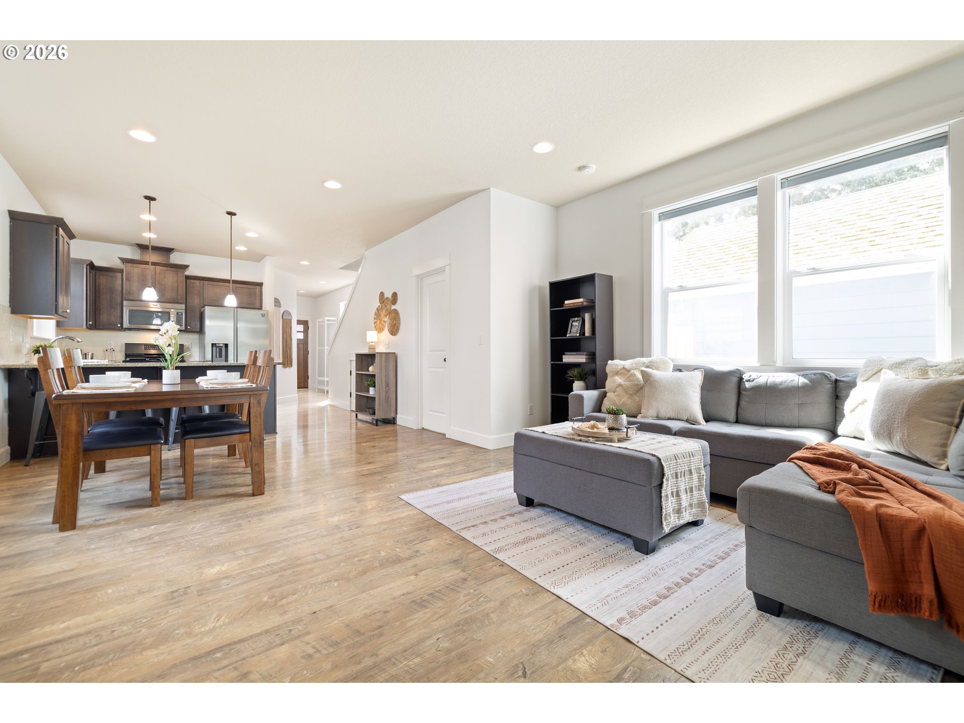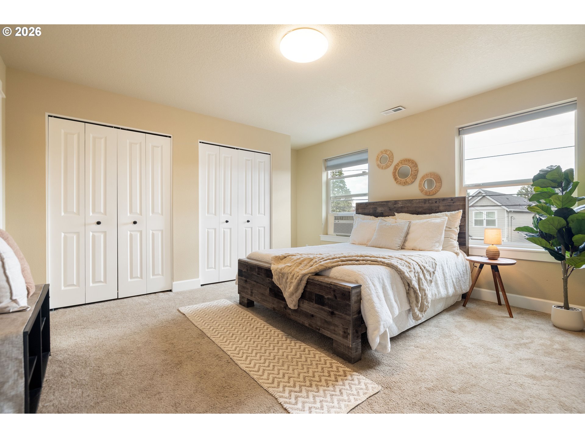 Tucked into the heart of the vibrant Lents neighborhood, this inviting two story home offers the perfect blend of comfort, functionality, and outdoor living. Freshly painted throughout the first floor and in two bedrooms, this 3 bedroom, 2.5 bathroom home is move in ready and waiting for its next owner.Step inside to a warm and welcoming layout featuring a cozy family room anchored by a gas fireplace, perfect for relaxing evenings at home. The kitchen is designed for both everyday living and entertaining with sleek appliances, generous countertop space, and a convenient breakfast bar that opens seamlessly to the living area.Upstairs, the spacious primary suite offers soft carpet underfoot, double closets, and an ensuite bathroom featuring dual vanity sinks and a walk in shower. The two additional bedrooms each include walk in closets, offering excellent storage and flexibility for guests, office space, or hobbies. Each bedroom also comes equipped with its own installed A/C window unit, helping keep everyone comfortable during warmer summer months.Outside, discover your own private backyard retreat. Sellers have thoughtfully enhanced the outdoor space with low maintenance turf, a charming gazebo, and a serene patio area ideal for morning coffee, summer dinners, or simply unwinding after a long day. The widened front driveway with newly poured concrete adds convenience and additional parking flexibility.Conveniently located near parks, schools, shopping, dining, and easy commuter access, this home combines peaceful living with city convenience. Don’t miss your opportunity to enjoy this thoughtfully updated Portland home.