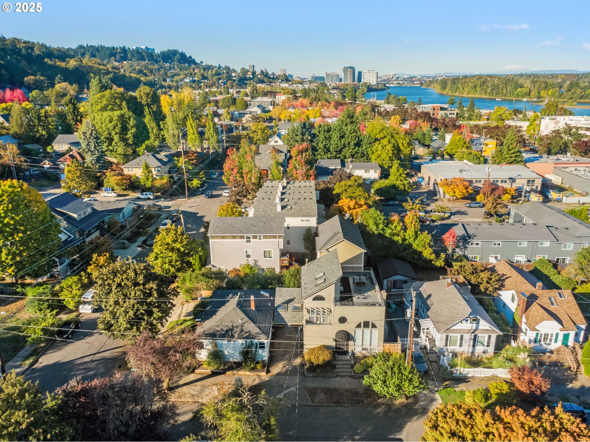 Rare opportunity in John’s Landing. Two homes on one tax lot offering flexibility for multigenerational living, income potential, or future Multi-Family Development. The main residence on SW Vermont St is a showcase of modern light and space with soaring 20+ ft ceilings, floor-to-ceiling windows, and an open kitchen featuring a center island and sleek white cabinetry. The main level primary suite provides comfort and privacy. Upstairs, two spacious bedrooms each enjoy ensuite baths, while the top floor offers a versatile bonus room and seating area that opens to a spectacular east-facing rooftop terrace with sweeping views of Mt. Hood. The second home, set on the corner of the lot, is approx. 1,100 SF with 2 bedrooms and 1 bath. Ideal for a guest house, rental, or creative studio. Both homes are sold as is, with seller to make no repairs. All of this in one of Portland’s most desirable neighborhoods, just blocks from coffee shops, restaurants, groceries, and the Willamette Park waterfront, and only 5 minutes to downtown Portland. This is your chance to make an investment in lifestyle, location, and opportunity. Schedule your showing today.