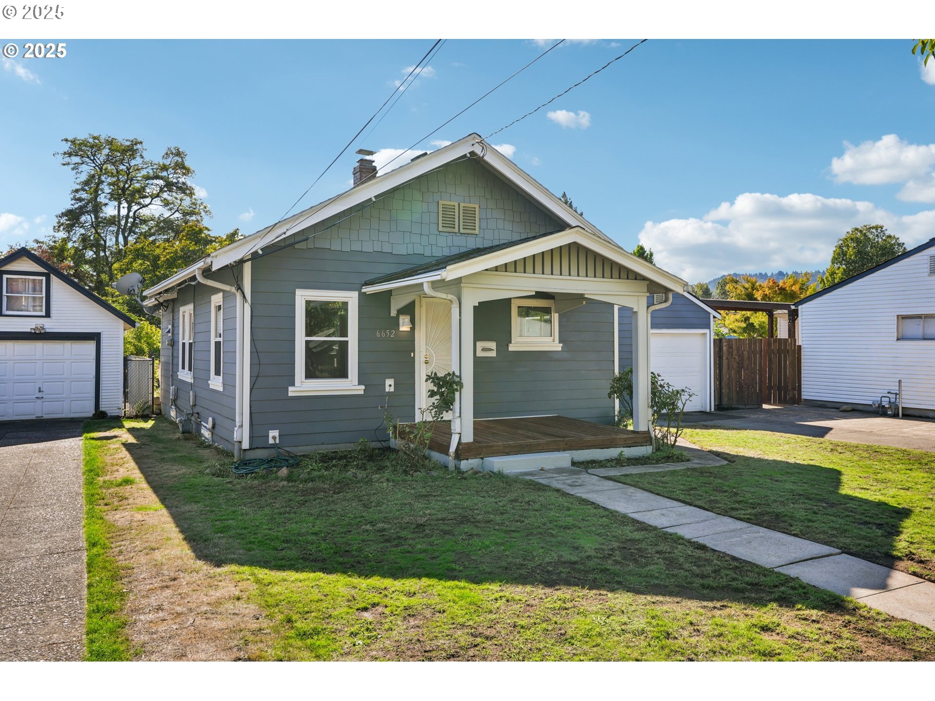 The House is NOT for RENT. A beautifully remodeled early-century Craftsman cottage offering a perfect blend of vintage charm and modern functionality in Portland’s vibrant University Park community. Originally built in 1909, this thoughtfully updated home features two bedrooms, one bathroom, a detached garage, and off-street parking—creating an ideal balance of comfort and convenience. Step inside to discover a bright, inviting interior filled with natural light. Fresh paint, new flooring, and an efficient layout highlight the craftsmanship of the era while embracing today’s design standards. The kitchen showcases newer cabinetry, modern countertops, stainless-steel appliances, and updated fixtures. The full bath has been refreshed with stylish finishes. Recent upgrades include a roof, siding, windows, HVAC system, plumbing, and interior and exterior paint, ensuring move-in-ready peace of mind. The fenced backyard offers a private outdoor escape with fruit-bearing trees—perfect for gardening, pets, or gatherings with friends. Situated between N Amherst Street and N Willamette Boulevard, the home provides easy access to the University of Portland, McKenna Park, Columbia Park, and the shops and cafés of downtown St. Johns. It’s also conveniently located minutes from transit, bike routes, and major commuter corridors, offering an effortless connection to city life while maintaining a neighborhood feel. With timeless architecture, thoughtful updates, and an unbeatable location, 6652 N Princeton Street embodies the best of Portland living—classic, comfortable, and ready to make your own.