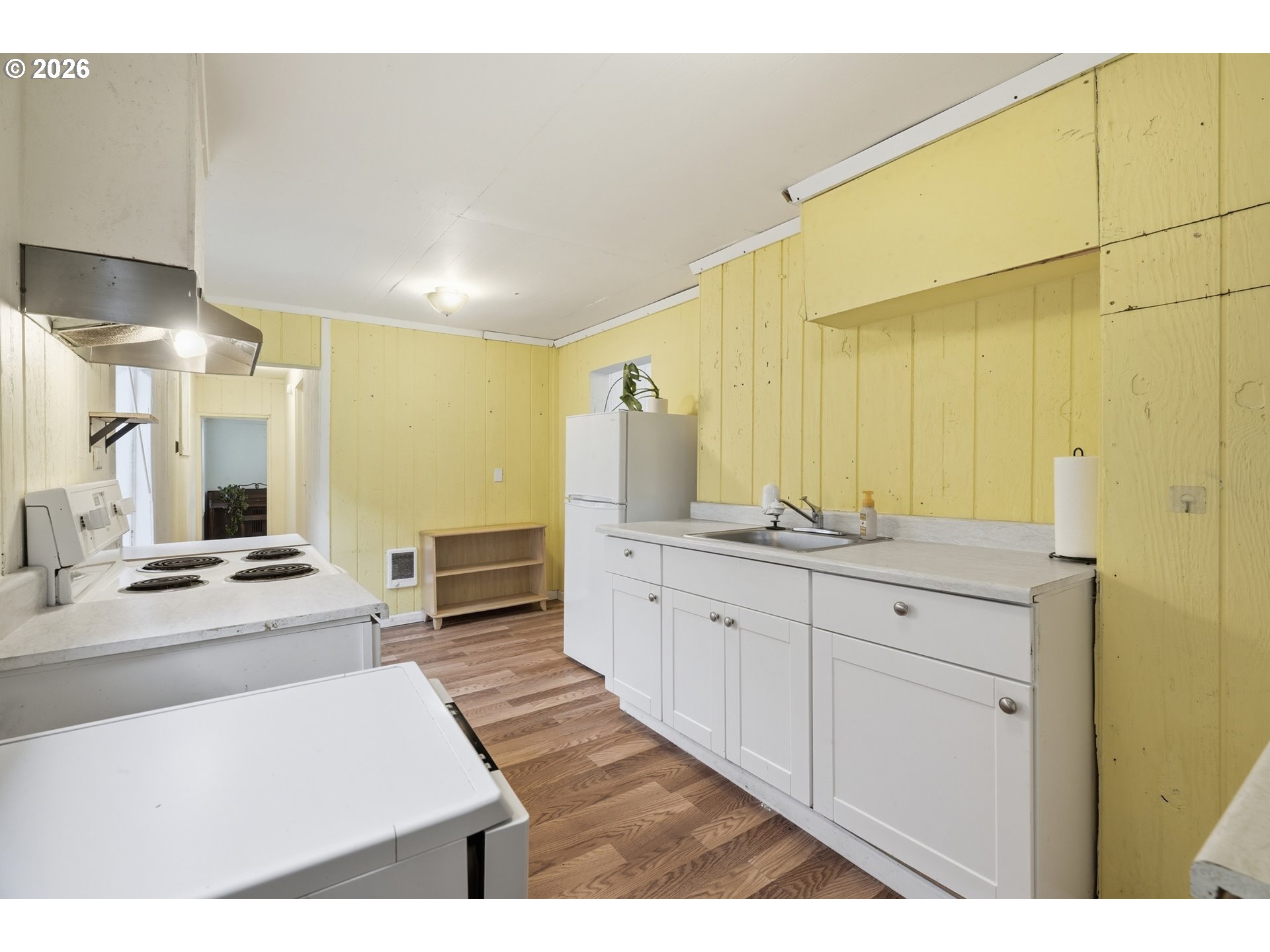 Opportunity awaits in this unique Foster-Powell two-story home, tucked away on a private alley with minimal foot traffic for added privacy. The home offers 2 spacious primary bedrooms, an office, plus a versatile flex room that can serve as another bedroom, home office, guest space, creative studio, or additional living area. The full kitchen leads to the spacious utility room with ample storage. Several key improvements have already been completed, including a newer roof, exterior paint, flooring, and carpet upstairs. Out back, you’ll find a fenced area ideal for pets or a convenient dog run, adding functionality to the outdoor space. Located in a highly convenient Southeast Portland location with quick access to shops, restaurants, coffee spots, and major highways, this property presents a great opportunity for those ready to bring their vision and build equity. Come see it for yourself! [Home Energy Score = 1. HES Report at https://rpt.greenbuildingregistry.com/hes/OR10101917]