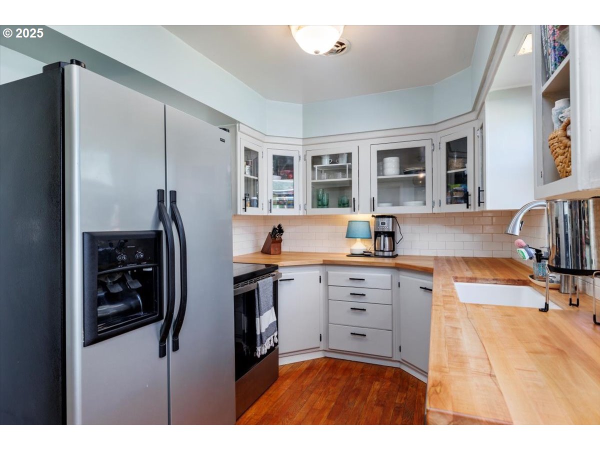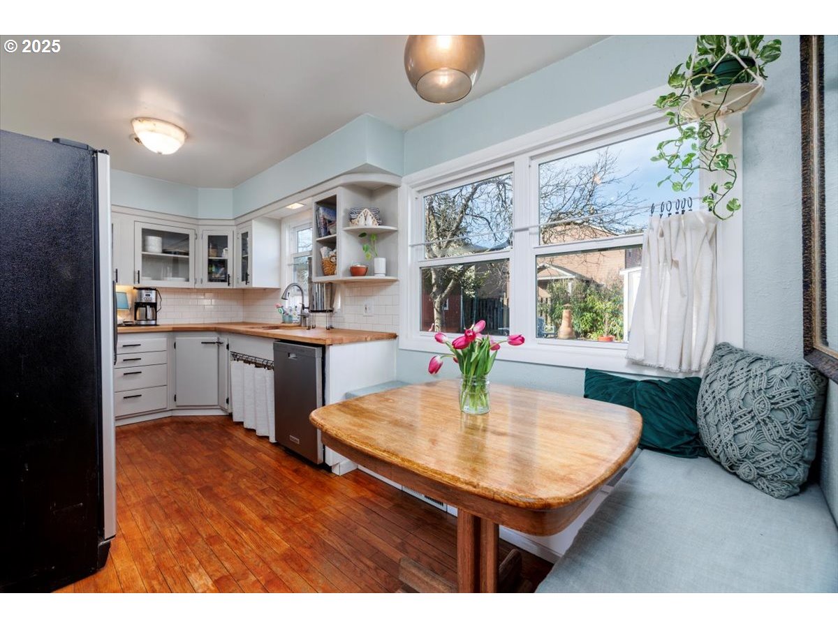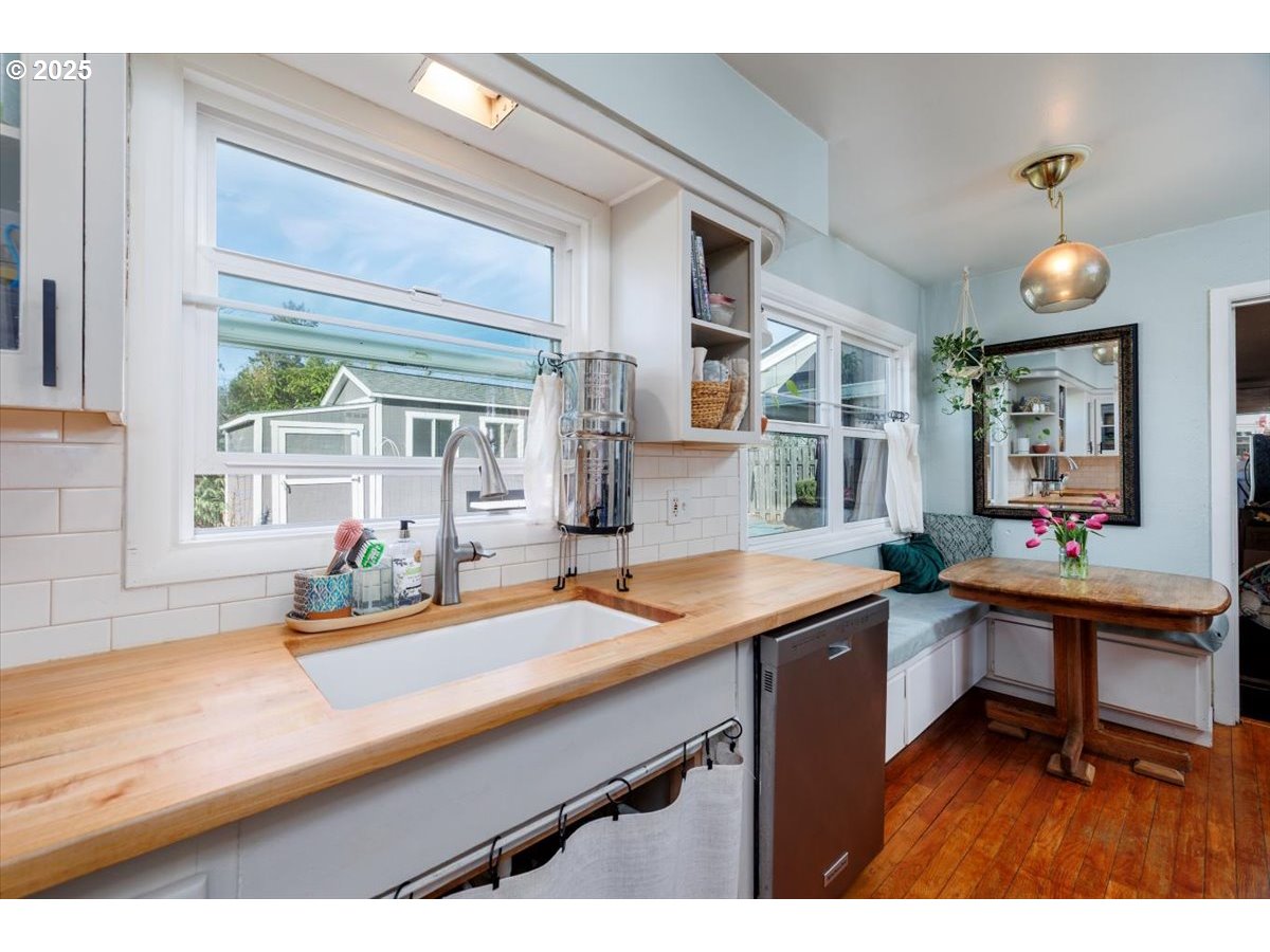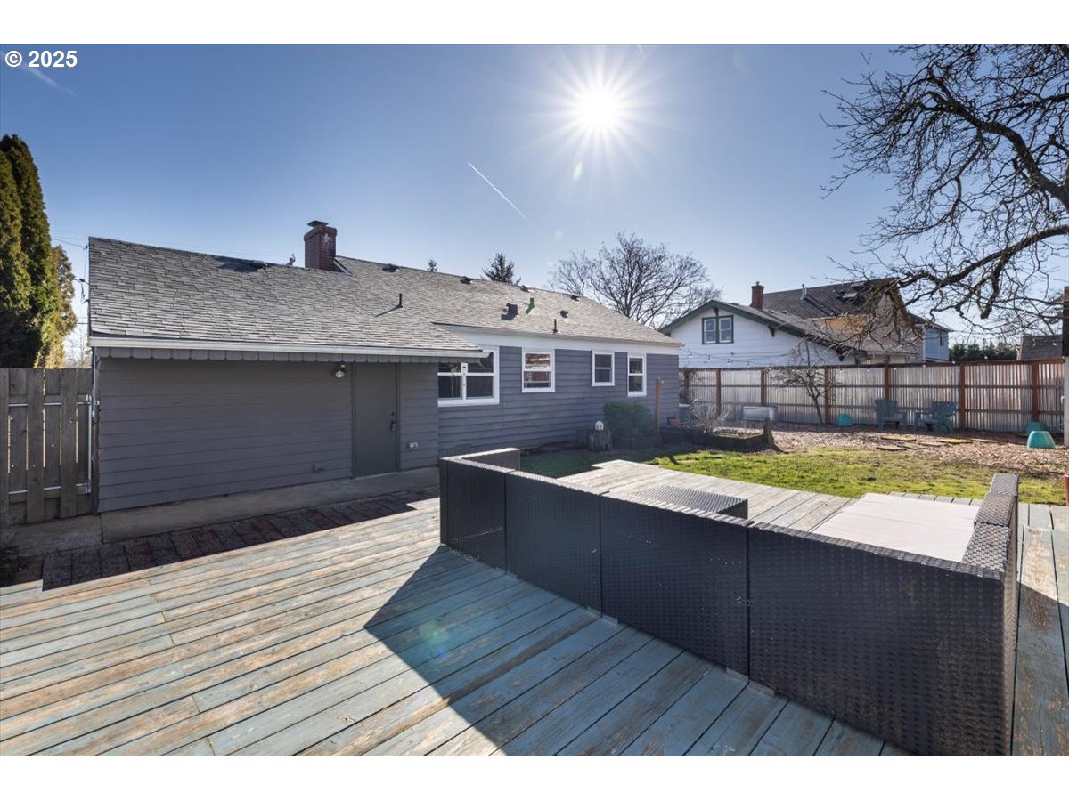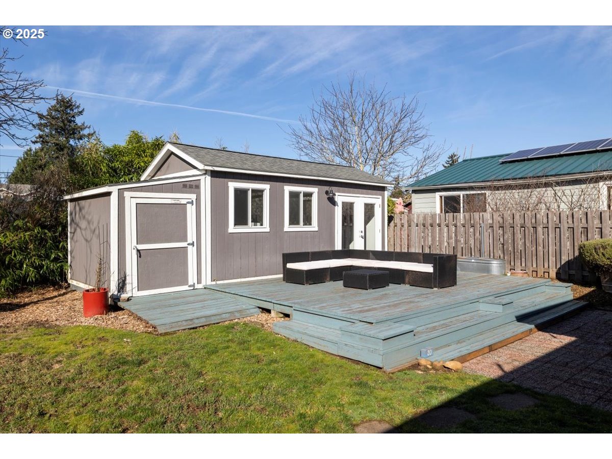 Welcome to this charming home, just blocks from Glenwood Park, Kelly Elementary School, and the vibrant Lents Town Center, where you’ll find fantastic restaurants, a gym, the Lents International Farmer’s Market and convenient grocery options. This home seamlessly blends character with modern touches, offering both comfort and functionality. Inside, you’ll find original hardwood floors, unique Art Deco details, and an updated bathroom featuring a smart mirror. The kitchen features Boos Block countertops installed in 2023 and a brand-new WiFi-enabled stove, perfect for convenience while away from home. Step outside to enjoy the incredible outdoor living space, complete with a spacious deck, two storage sheds, and a versatile 200 sq. ft. studio—ideal for a home office, creative space, or workout area.