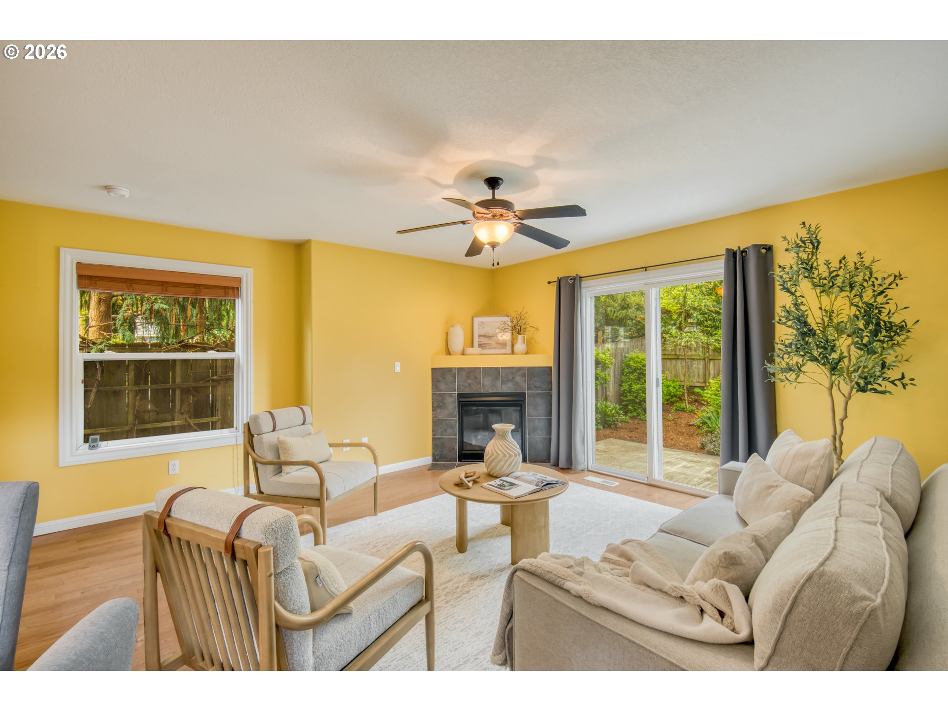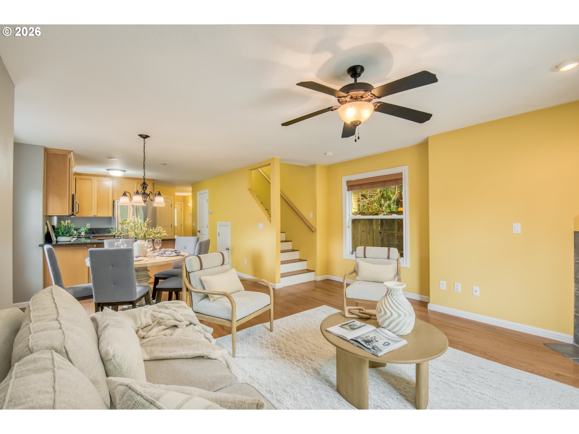 Charming traditional-style home built in 2009, located in the East St. Johns neighborhood. This well-maintained home offers 3 bedrooms, 2.5 bathrooms, and a convenient one-car attached garage. The main floor welcomes you with a warm foyer and a stylish half bath featuring a pedestal sink. Enjoy an open-concept layout with a great room–style kitchen with granite countertops, bar seating, and a seamless flow into the dining and living areas. The living room features a cozy gas fireplace, perfect for relaxing evenings. Hardwood floors run throughout the main level, and a sliding glass door opens to a beautifully landscaped backyard.Step outside to your private outdoor retreat—a gold-certified backyard habitat complete with a patio and an electric-powered retractable awning, ideal for entertaining or unwinding year-round. Upstairs, the vaulted primary suite offers a peaceful escape with its own private bathroom. Two additional bedrooms are also located on the upper level, along with convenient washer and dryer hookups (W & D included) and a second full bathroom. Multiple skylights throughout the home bring in abundant natural light, enhancing the bright and airy feel. Additional updates include central air conditioning and more, making this home as comfortable as it is charming.