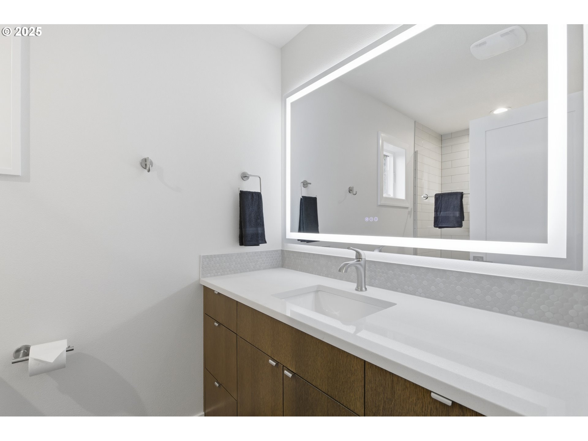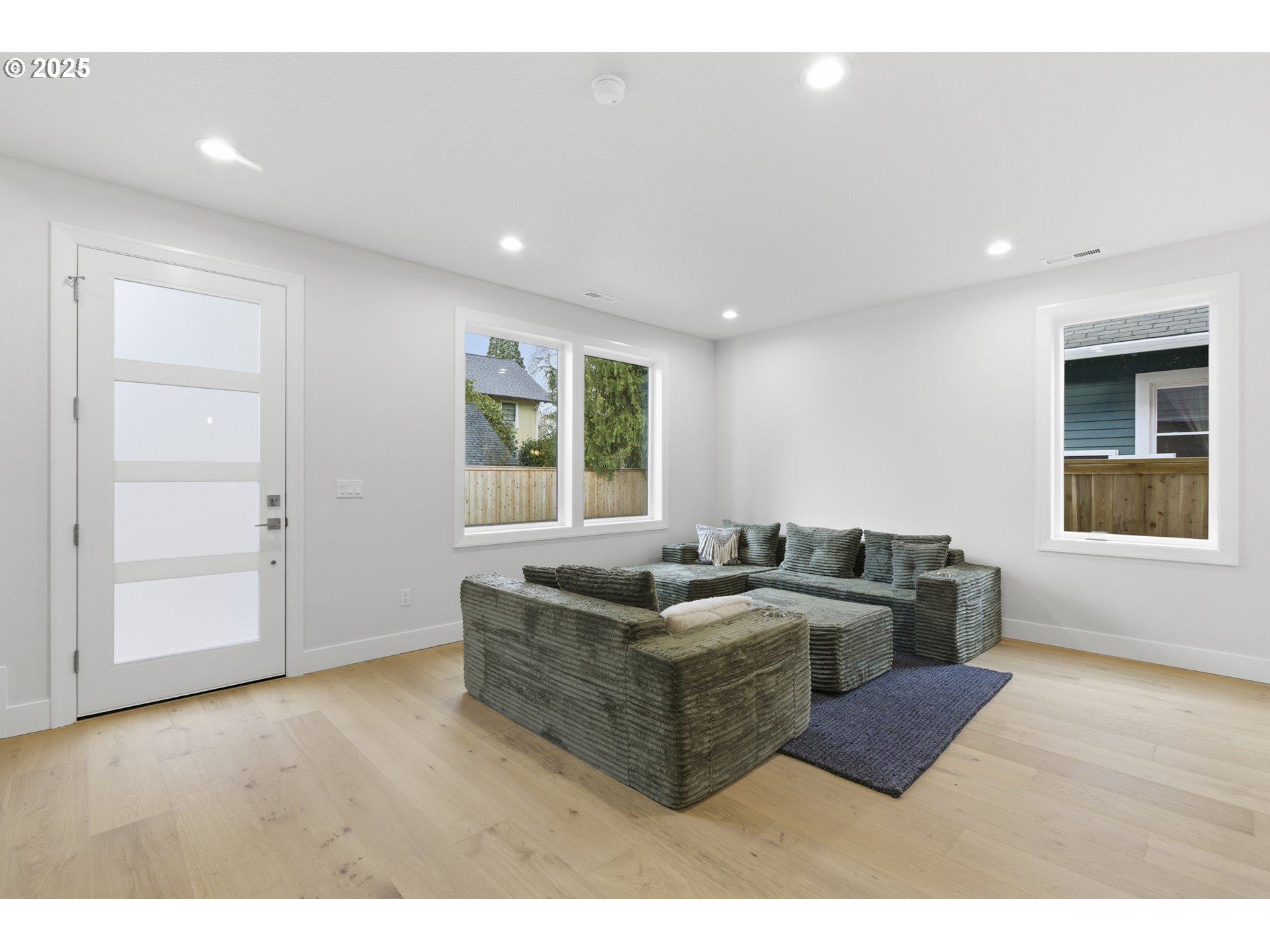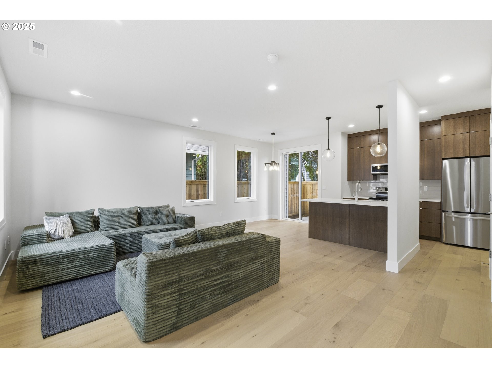 This 2025 constructed home welcomes you with soaring 9-foot ceilings and an open-concept main floor that flows effortlessly from the living area to the dining space and contemporary kitchen. The kitchen showcases dark oak veneer cabinetry with soft-close drawers, elegant quartz countertops, and modern finishes throughout. A convenient half bath on the main level enhances both comfort and functionality, making this home ideal for everyday living and effortless entertaining. Upstairs, there are three bedrooms and two full baths. The primary suite features a walk-in closet, en suite bath with tile floor and private deck. Laundry is thoughtfully placed upstairs for everyday ease, while two additional bedrooms offer space for family, guests, or a home office. Every detail has been chosen with care: Engineered hardwood flooring, heated tile floors upstairs, window casings, trim throughout, sound insulation in interior walls, ring doorbell and a fully insulated garage with textured sheetrock. With a walk score of 67, enjoy hiking, shopping, and dining just minutes away, with quick access to I-205. Whether you’re starting fresh or searching for your forever low-maintenance home, this modern floor plan with high quality upgrades is a true showstopper.