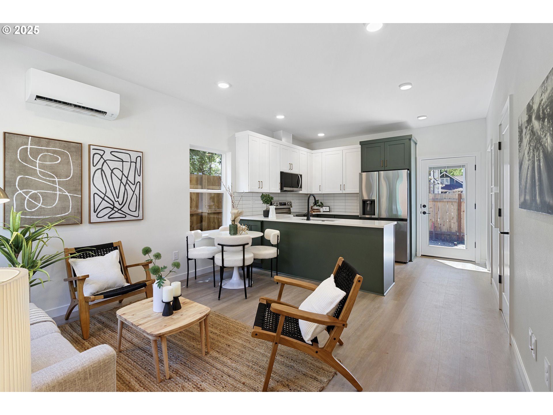 Welcome to this beautifully crafted new construction home in Portland’s vibrant St. Johns neighborhood. This thoughtfully designed two-story modern residence delivers 745 square feet of efficient, high-quality living with 2 bedrooms and 1.5 baths. Clean lines, smart layout, and elevated finishes make every inch feel intentional. The main level features durable luxury vinyl plank flooring and an open-concept living and kitchen space designed for everyday comfort and effortless entertaining. The kitchen is finished with quartz countertops, custom-painted cabinetry, and a full suite of stainless steel appliances, including the refrigerator that is usually not provided in new construction homes, offering both style and functionality from day one. Upstairs, you’ll find two bedrooms with wall-to-wall carpeting and dedicated closets. The full bathroom showcases a builder-upgrade custom tile surround shower with double glass doors, complemented by a quartz vanity for a refined, cohesive aesthetic. Mini-split heating and air conditioning provide efficient year-round climate control, ensuring comfort in every season. Located in St. Johns community, you’ll enjoy proximity to local shops, parks, dining, and the unique character that makes this neighborhood one of the city’s beloved enclaves. Modern design. Smart footprint. Exceptional value. Welcome home. The sales price is subject to buyer SDC approval. If a buyer is not eligible for the SDC waiver, the price will increase by $30,000 from the advertised listing price. SDC waiver eligibility is primarily based on the buyer's income being equal to or less than the Median Family Income (MFI) of $124,100 per year for a family of 1-4 members.