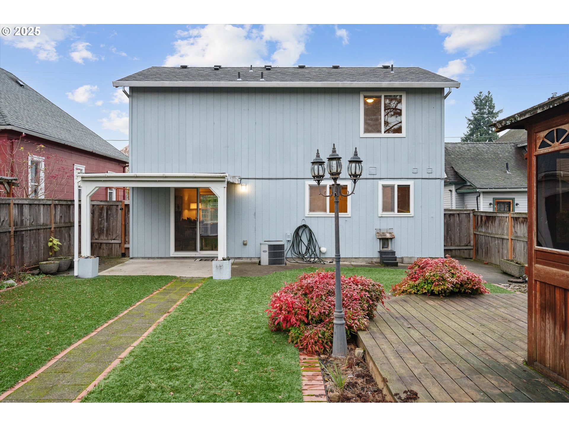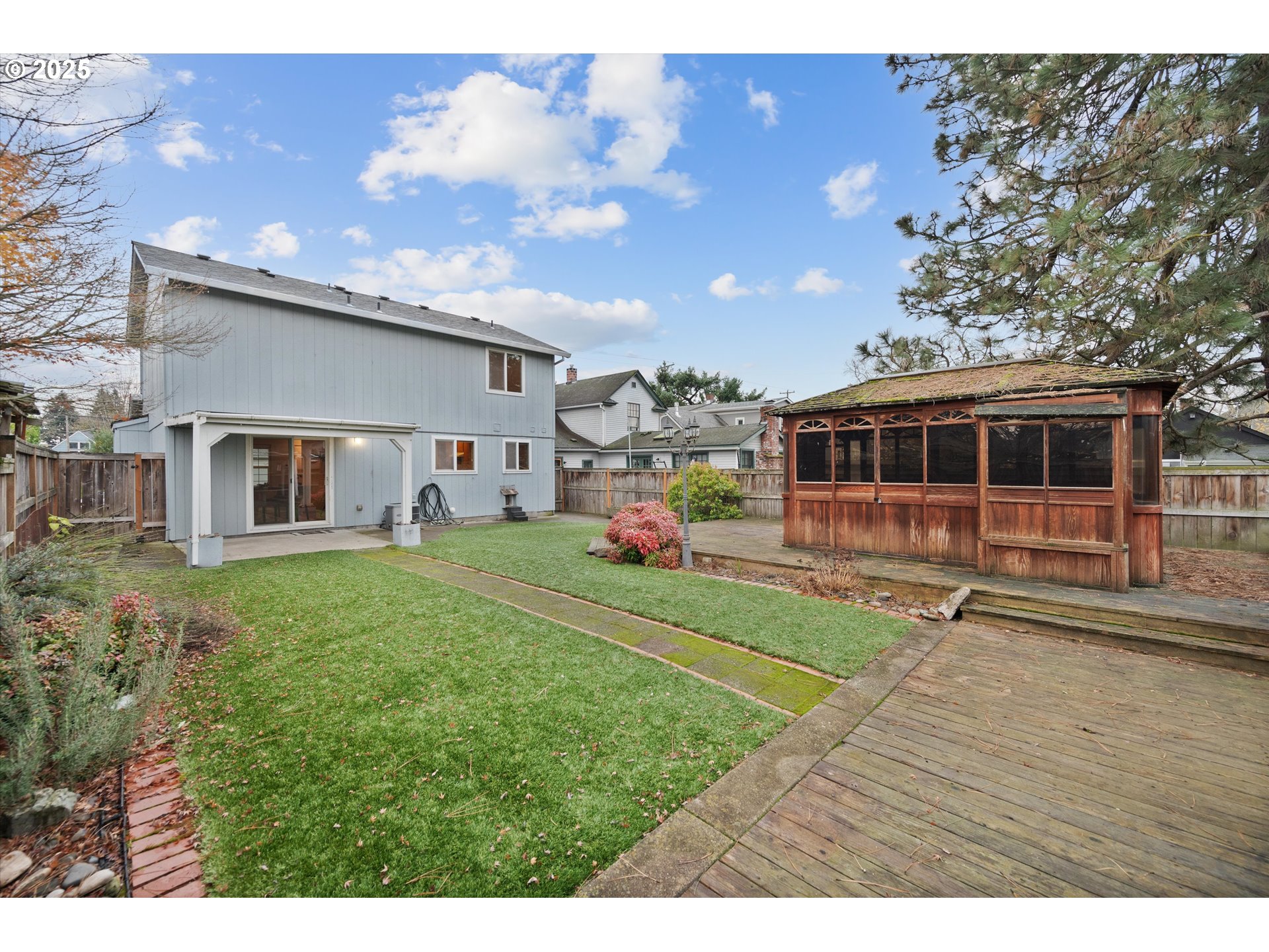 Situated right off Willamette Blvd, this home offers quick access to the scenic bluff, nearby parks, and the vibrant energy of both St Johns and the University of Portland campus. Enjoy a peaceful residential setting with the convenience of beloved shops, restaurants, and community amenities just minutes away. Inside, the home features a classic and functional floorplan with freshly painted interiors that feel bright, clean, and welcoming. All three bedrooms are located upstairs, including the nice sized Primary Bedroom with an on-suite bathroom and walk-in closet. Key system updates provide peace of mind, including a roof approximately 5 years old and a water heater about 3 years old. The washer and dryer, also around 3 years old, are included. The property sits on a nice-sized lot that has been thoughtfully designed for low-maintenance enjoyment and is perfect for outdoor gatherings. Both the front and backyard feature high-quality artificial turf, offering year-round greenery without the upkeep. The fully fenced backyard includes a gazebo, multiple entertaining spaces, along with a garden shed for additional storage. The one car garage adds even more convenience in this sought-after area. With its ideal location, smart updates, and beautifully upgraded outdoor spaces, this home offers a wonderful opportunity for first-time buyers, downsizers, or anyone looking to enjoy the best of North Portland living. [Home Energy Score = 7. HES Report at https://rpt.greenbuildingregistry.com/hes/OR10200479]