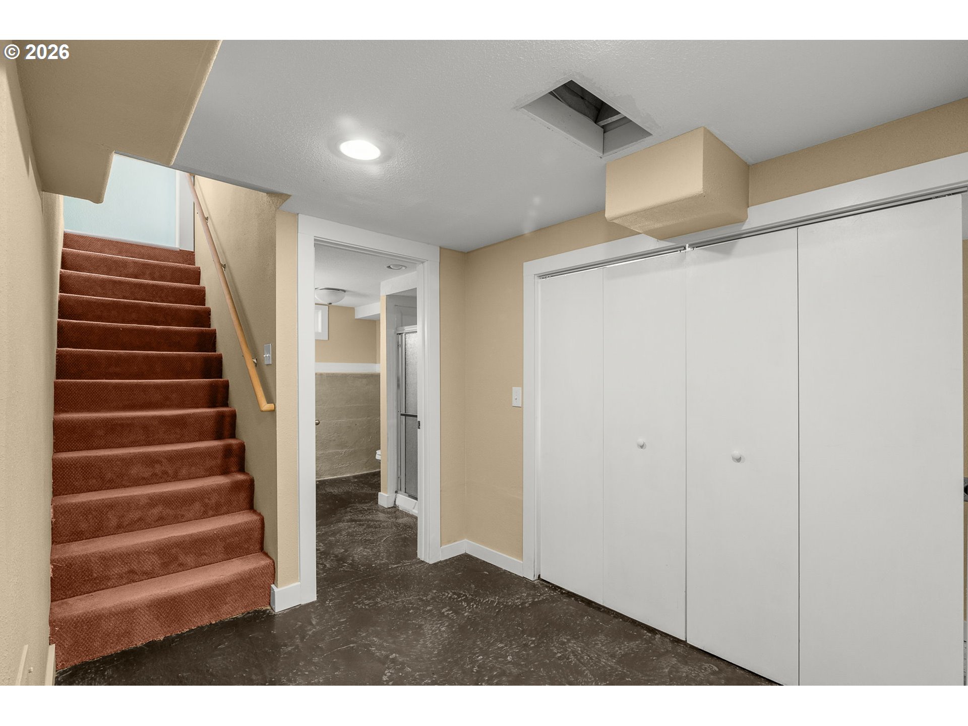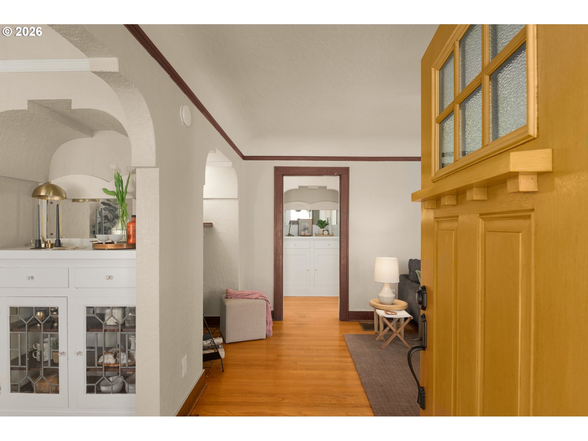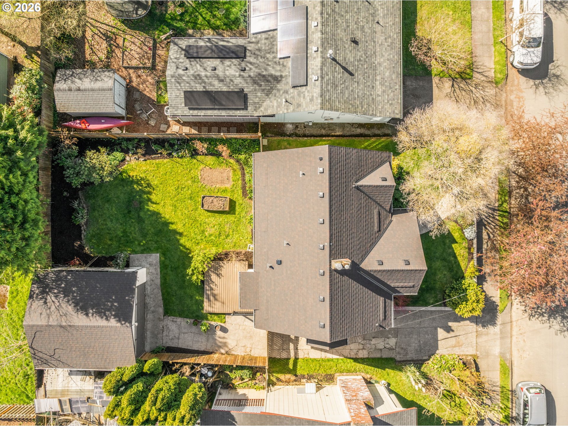 Charming home with standout curb appeal, featuring lovely landscaping, custom concrete work, and a welcoming covered front entry. Inside, you’ll find oak hardwood floors, classic built-ins, rich wood trim, a gas fireplace, leaded windows, and coved ceilings that add timeless character throughout. The beautifully updated kitchen offers enduring style with granite countertops, tile backsplash, cherry cabinetry, stainless steel appliances, and a convenient pantry. The main level also includes two bedrooms and a full bath with a tiled tub surround. Upstairs, the primary suite features a versatile loft space—well-suited for a seating area or a home office—along with an updated bathroom showcasing a tiled shower, dual sinks, and granite counters. The finished basement expands your living space with two additional bedrooms, a third full bath, laundry, storage room, and sleek sealed concrete floors. Enjoy the fully fenced backyard complete with a new Trex deck and an array of plantings including roses, blueberries, hops, and even a guava tree. A detached two-car garage offers excellent flexibility for storage, a workshop, or a potential ADU. Major updates include a new roof and sewer line, plus newer A/C. Ideally located with easy access to restaurants, bars, coffee shops, parks, schools, and shopping.