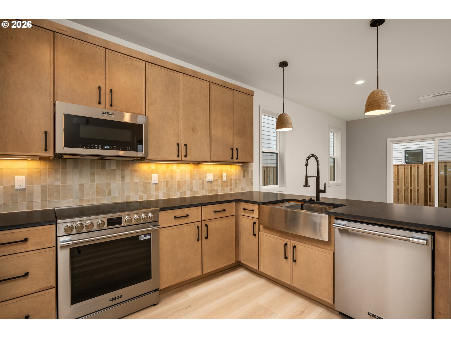 Welcome to the ‘Commons’ – Seven exquisitely crafted, new detached single-family homes that are part of the Willamette Cottage Cluster community. The three, two bedroom, two and a half bath homes face into the long-established N Burr Avenue neighborhood. Just a couple blocks from revered gathering spots, the St John’s Beer and Food Porch and the eclectic Cathedral Coffeeshop, these thoughtfully created homes, integrate exceptional materials and finishes throughout. The open-concept living and kitchen space with a main floor half-bath invites comfortable living and entertaining. The kitchen is finished with maple cabinetry, high-end quartz countertops, a wine cooler, all stainless-steel appliances Frigidaire professional package, and a bonus private patio with a custom swing. Upstairs, two bedrooms with vaulted ceilings, and large double-hung and transom windows create a light and airy private sanctuaries. A stacked stainless washer and dryer, personal safe, and in-wall ready vacuum system help to simplify daily living. Minisplit heating and cooling units ensure year-long climate control and two full bathrooms with decorator floor tile; undermount sinks and quartz countertops provide plenty of personal space. High regard for livable details makes a difference. This is not just a house, it’s your home! Amenities Galore! Just four blocks eastward, Fred Meyer can fulfil most all your shopping needs and New Seasons Market is nearby. Downtown St John’s, offering a plethora of independent food choices and services, is less than a mile from your doorstep. Cathedral Park and the St John’s Bridge gateway invite you to Forest Park, river views and open spaces. What are you waiting for? Interior pictures are from another unit with the same floor plan