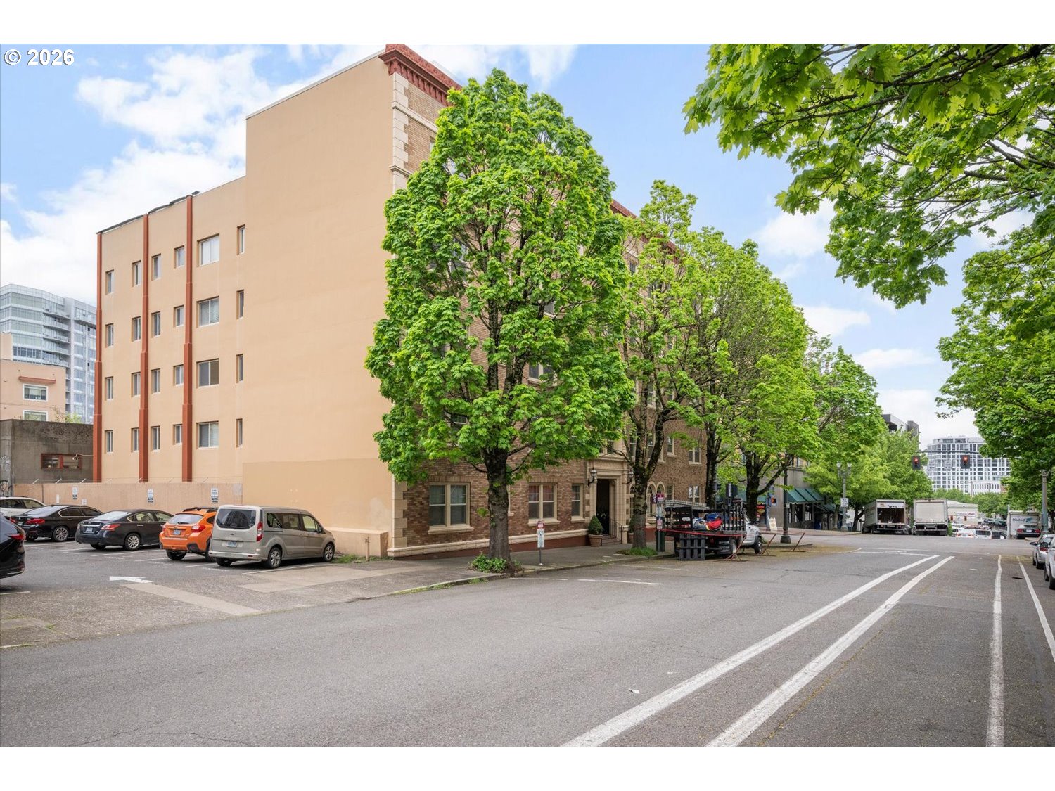 Phenomenal historic Hamilton Arms located in Goose Hollow! Charming 1928 architectural detail. Secured front entrance door and beautiful lobby area. Top floor 1 bedroom with West Hill view, abundant natural light, and ample vintage finishes, high ceilings, hardwood floors throughout, built-in feature, 3 large closets, gas stove. Well-maintained units" with "very light use.” Newer windows, the entire building has been recently re-piped with PEX plumbing. Basement laundry room with 4 complimentary washers and dryers and bike storage. All other utilities are included in the HOA except electricity and internet. Storage is available, but on a waitlist. No rental cap and no short-term rentals allowed. HOA allows 2 pets that weigh no more than 50 lbs total. Great close-in location! Bus lines at your doorstep, near Max, theaters and museums, shopping, restaurants, Providence Park, Pearl District and downtown. Amazing residence or investment. Urban life is yours!