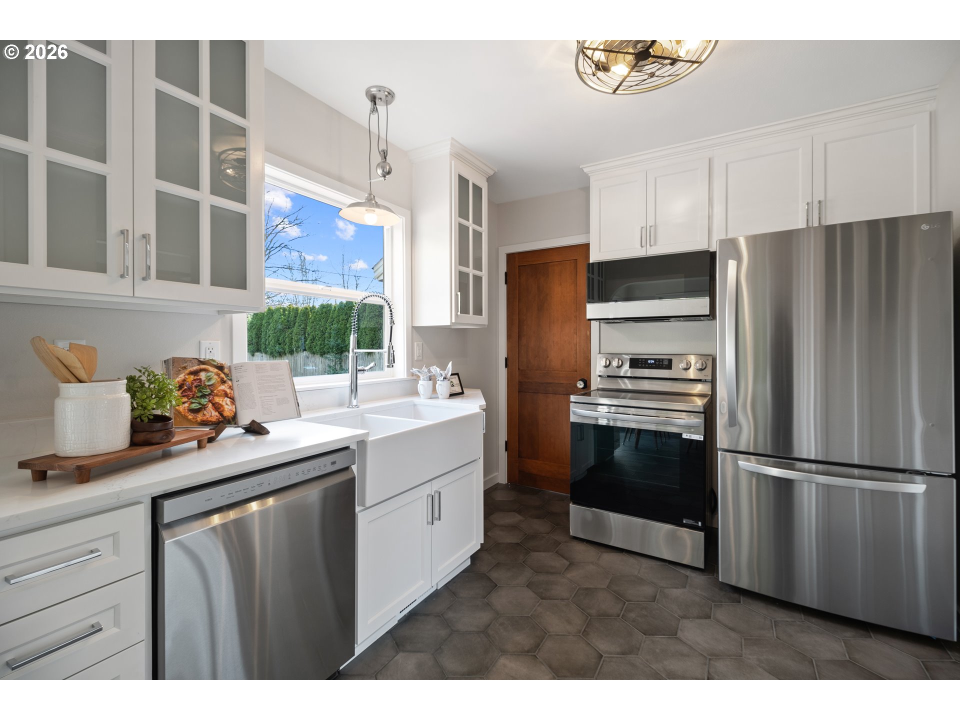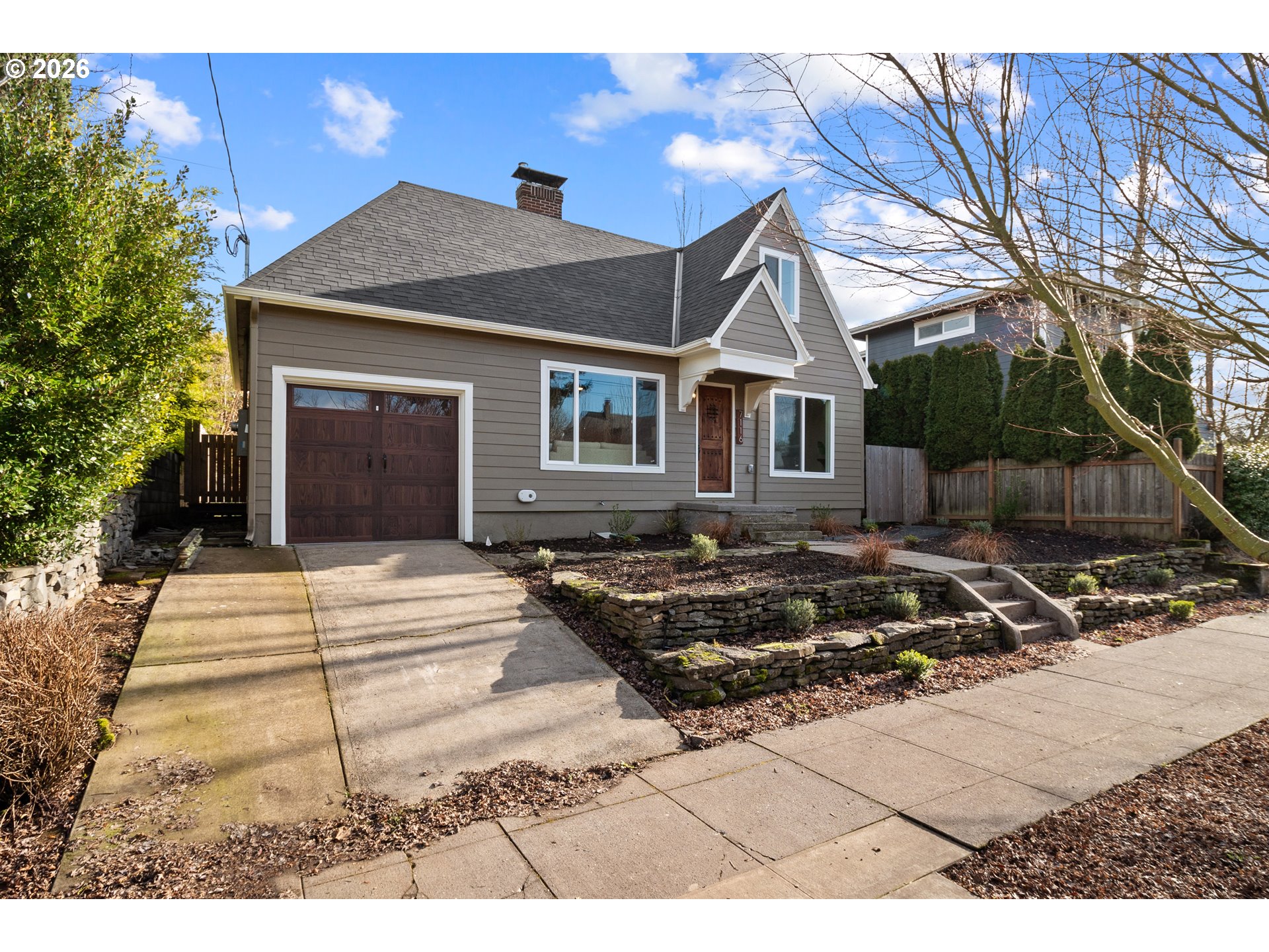 Beautifully remodeled top-to-bottom 1930s English Tudor in the heart of Arbor Lodge. Classic charm meets high-end modern updates, plus rare potential for an ADU or lot split with separate street access on N Villard Ave. The main level features newly installed hardwood floors, solid core doors with crystal knobs, and a brand-new kitchen with tiled flooring, farmhouse sink, granite countertops, stainless steel appliances, and an open layout to the dining room. Step out to the expansive back deck—ideal for gatherings or quiet evenings. Two bedrooms and a fully updated bathroom complete the main floor. Upstairs offers a bright family room with skylight and a spacious primary suite with en-suite bath and closet storage. The super-clean basement provides abundant storage and a dedicated laundry area, with room to expand if desired. A one-car garage with tall ceilings and a quiet-open door adds convenience and extra storage options. Located in a fantastic neighborhood just about a mile from New Seasons, four blocks to Arbor Lodge Park, and roughly 12 minutes to downtown Portland, this home delivers charm, comfort, and opportunity in one of North Portland’s most desirable communities. See our virtual tour links for more information! [Home Energy Score = 3. HES Report at https://rpt.greenbuildingregistry.com/hes/OR10243721]