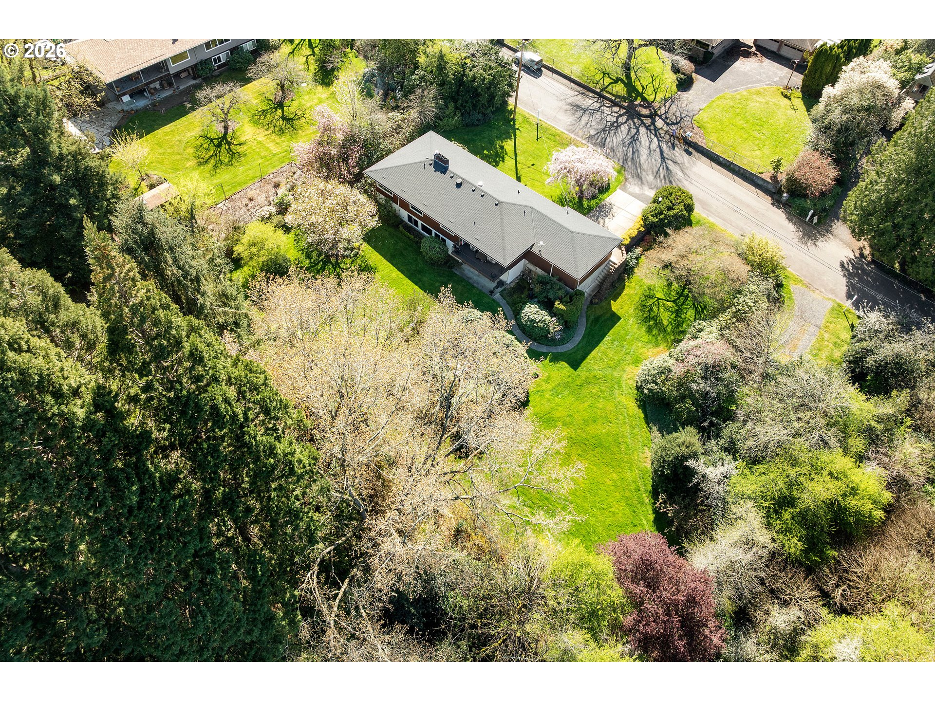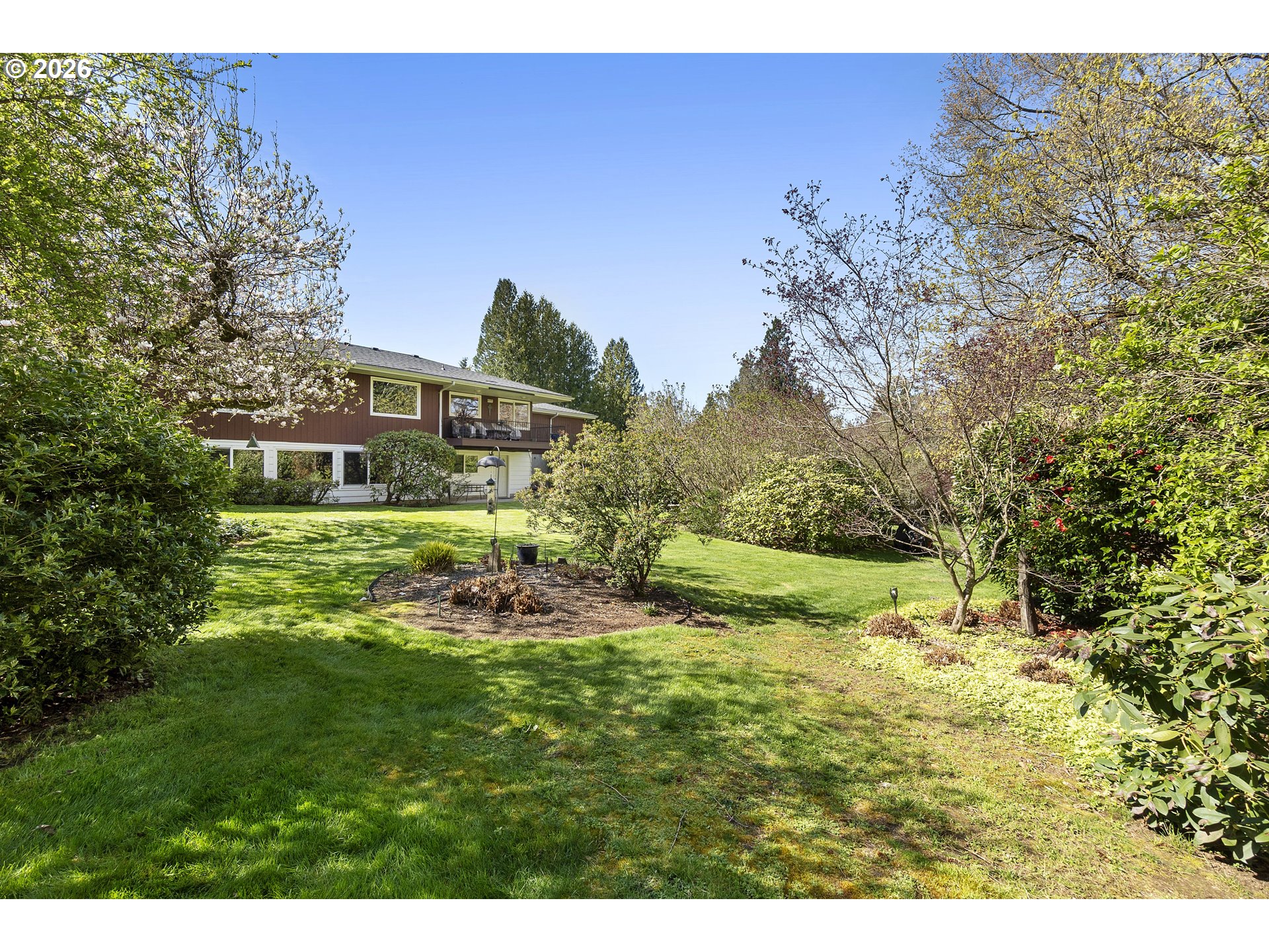 WOW.. What an amazing, spacious, tranquil private oasis. You'll discover an abundance of living space in this beautifully maintained home. Retreat-like setting—perfect for multi-generational living or buyers exploring income-producing possibilities. The main level boasts 3 bedrooms and 2 full bathrooms, with a spacious living room that flows effortlessly into the dining area overlooking a gorgeous yard. Great balcony deck off the dining area for evening relaxation. The updated kitchen blends style and function, featuring an inviting eating nook. The primary suite includes a walk-in shower and double closets, plus a main-level laundry, which adds convenience. The garden-level features its own private entrance and offers exceptional flexibility, complete with a full kitchen (range & refrigerator included), cozy fireplace, expansive living area and bursting with natural light from all the windows, oversized bedroom, full bathroom, ideal for extended family, guests, or rental use. Set on approximately ½ acre (20,473 sqft), this home offers serene views through large windows and has been lovingly cared for by the same owners for 31 years. Key updates include: Roof (11 years old), Exterior paint (3 years ago) Updated windowsTwo water heaters. Bonus Opportunity: If you want to purchase a separate 13,939 sqft lot to the north of the property. Offering potential for building a shop, additional home, ADU, cottage cluster, or simply expanding your private space. (See RMLS #667155001 for lot information) Combined package price: $825,000. Enjoy the perfect balance of peaceful, nature-filled surroundings with convenient access to city amenities. This is truly a must-see property! [Home Energy Score = 2. HES Report at https://rpt.greenbuildingregistry.com/hes/OR10240777]